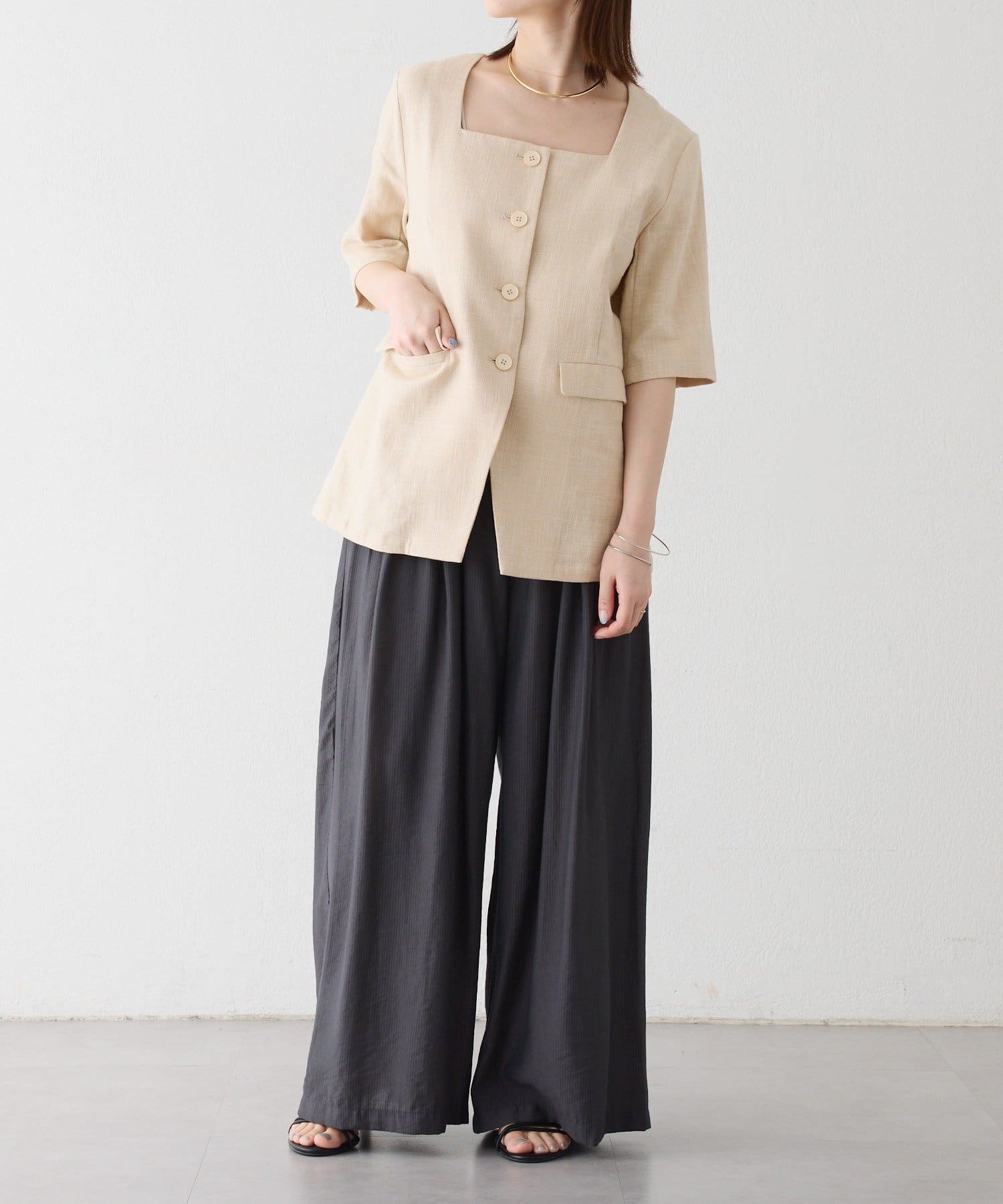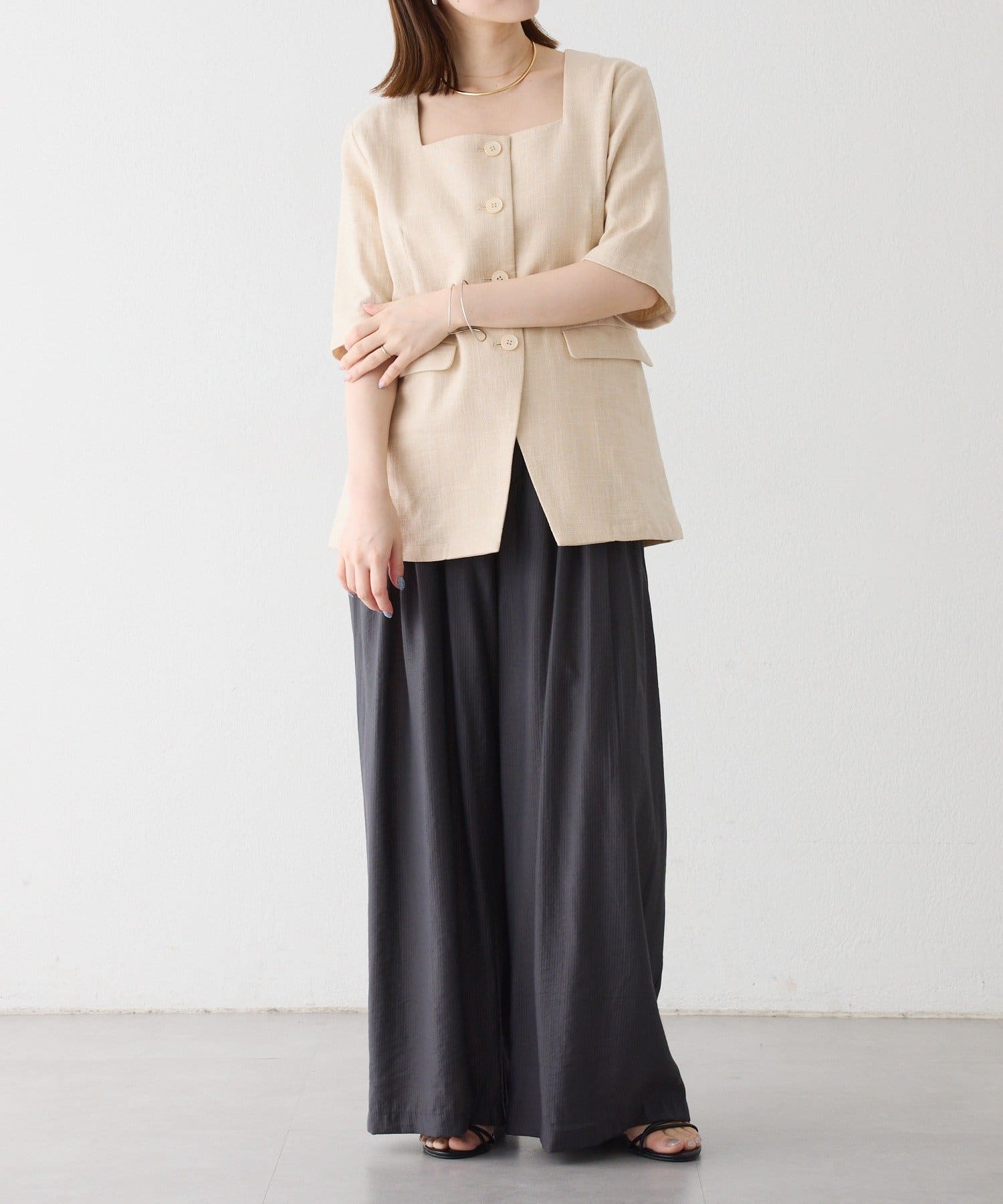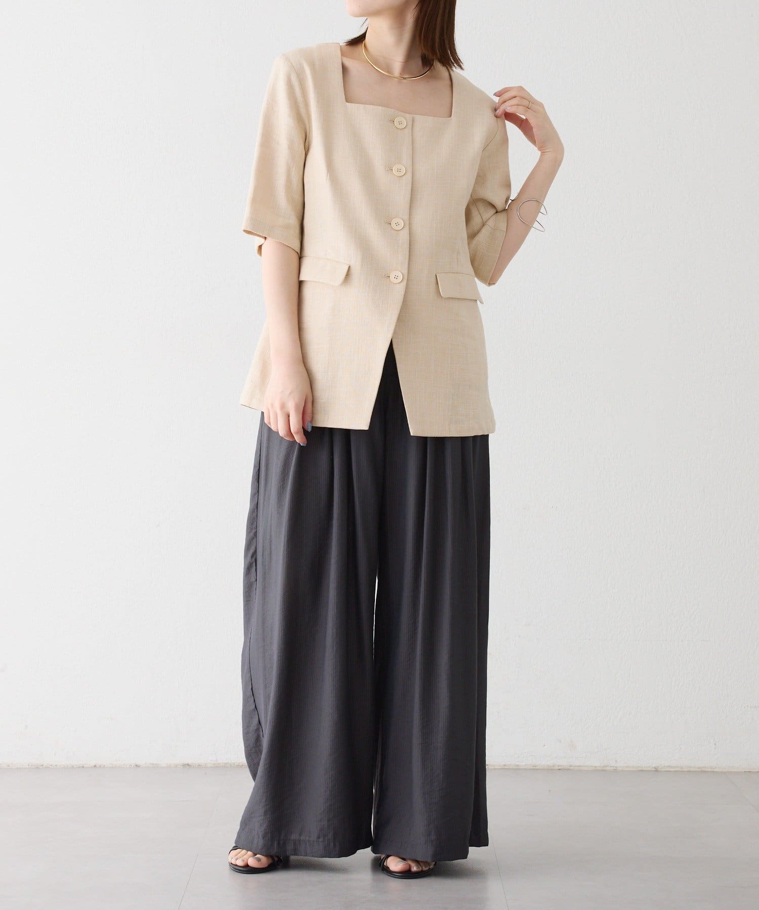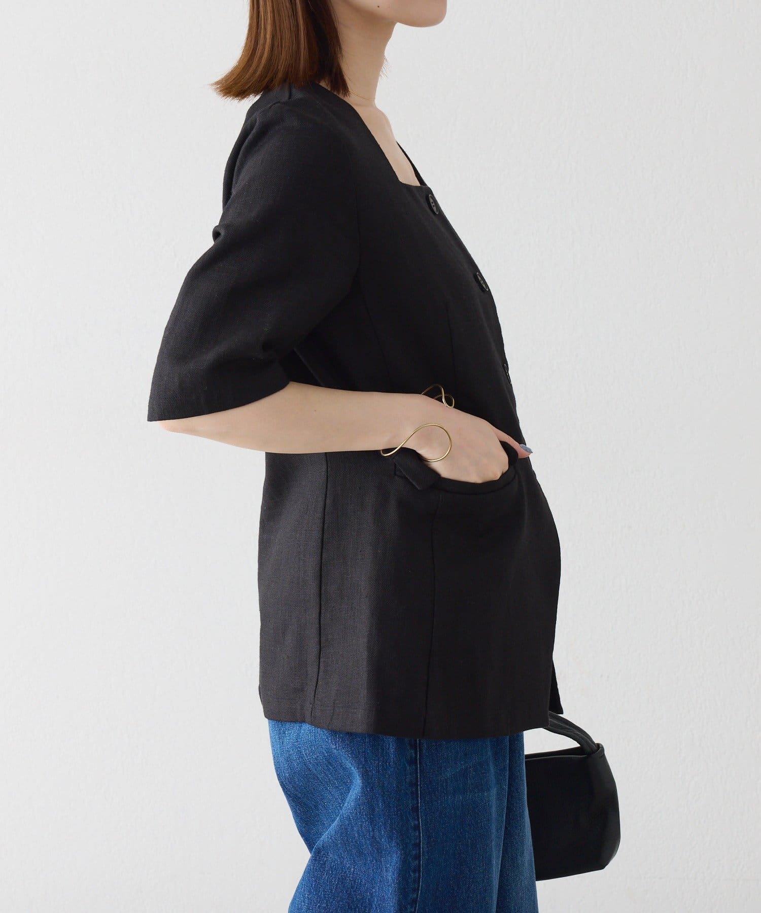 ・ハーフスリーブにスクエアカラーデザインで女性らしさにこだわったサマージャケット