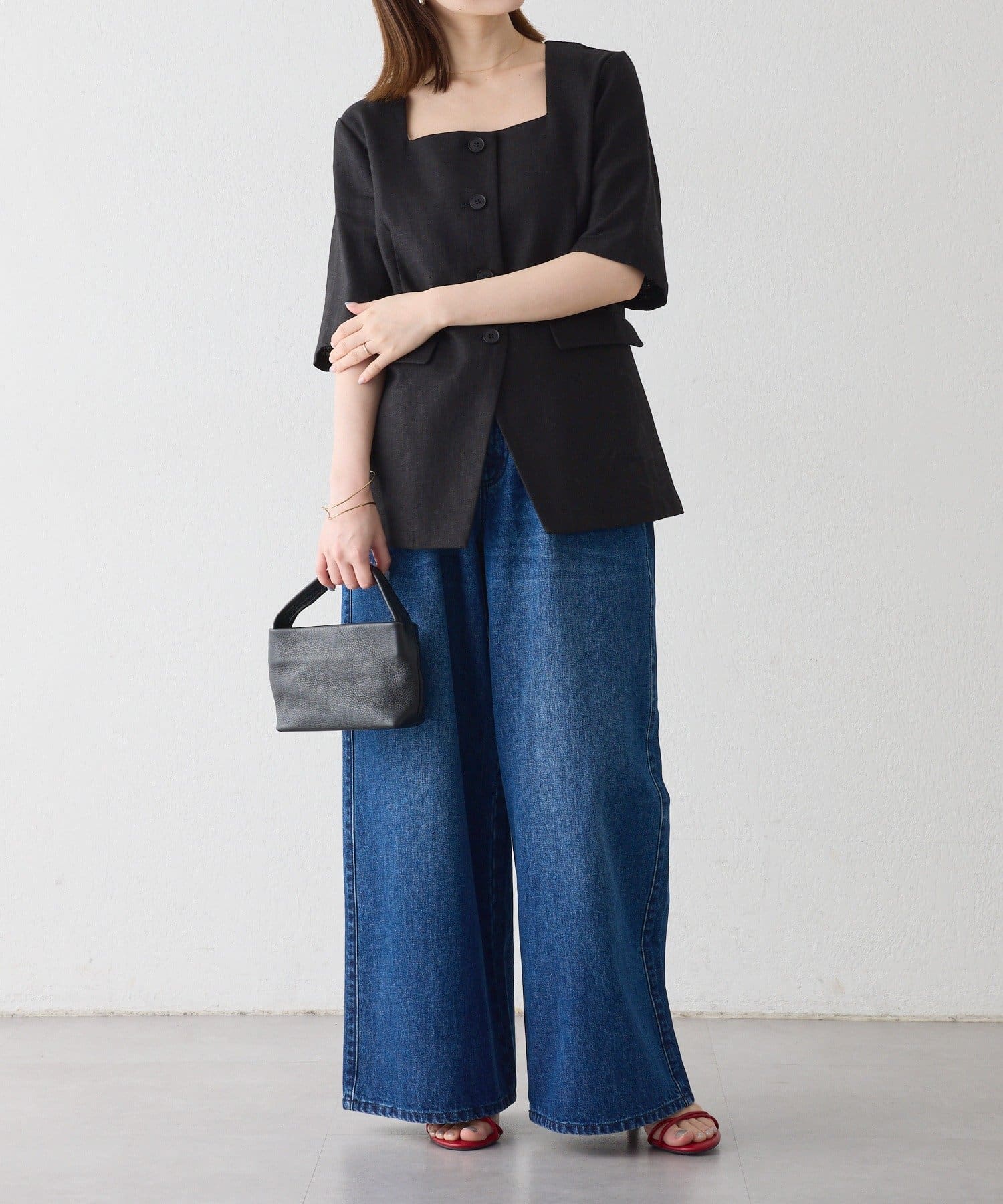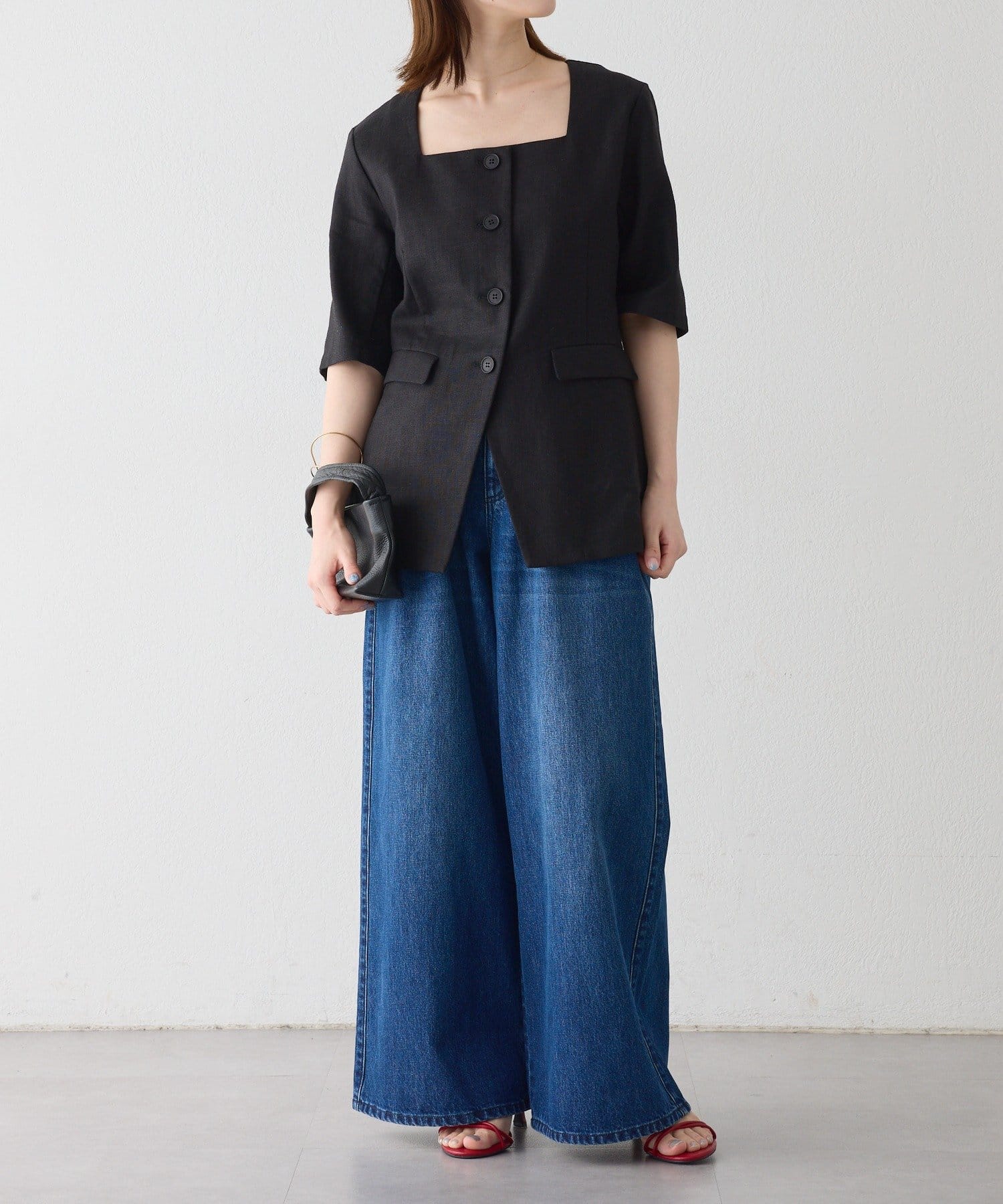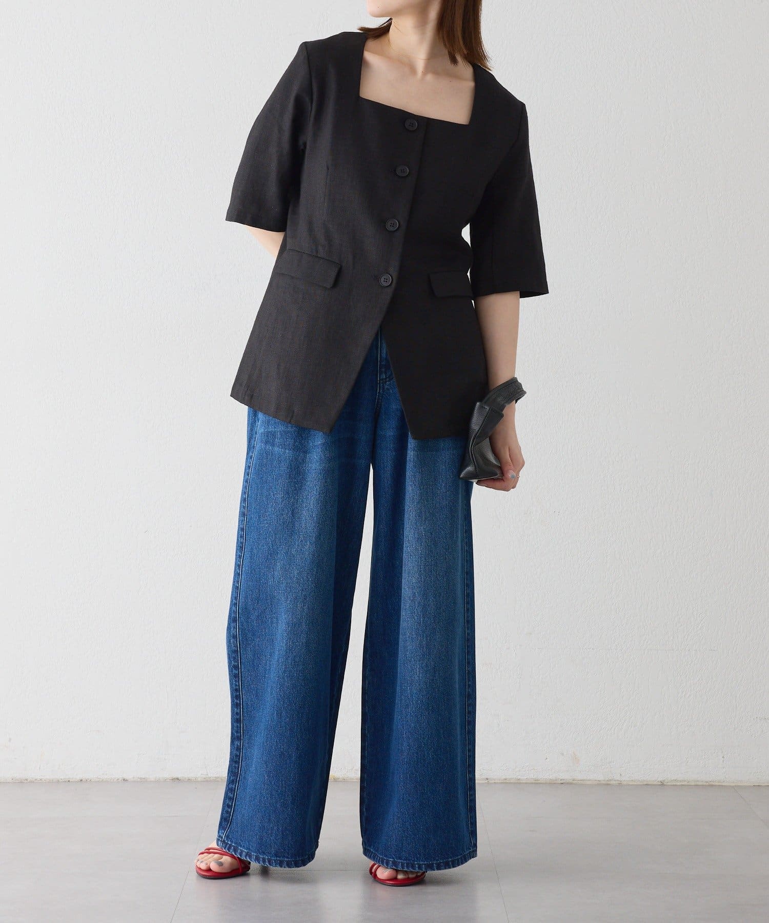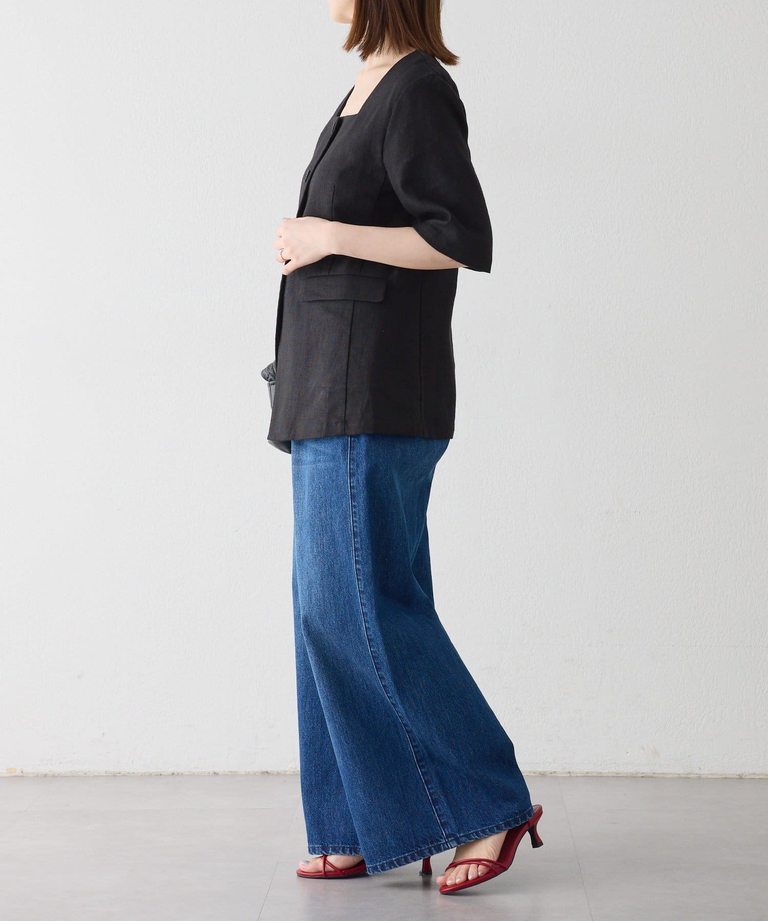 ・ハーフスリーブにスクエアカラーデザインで女性らしさにこだわったサマージャケット