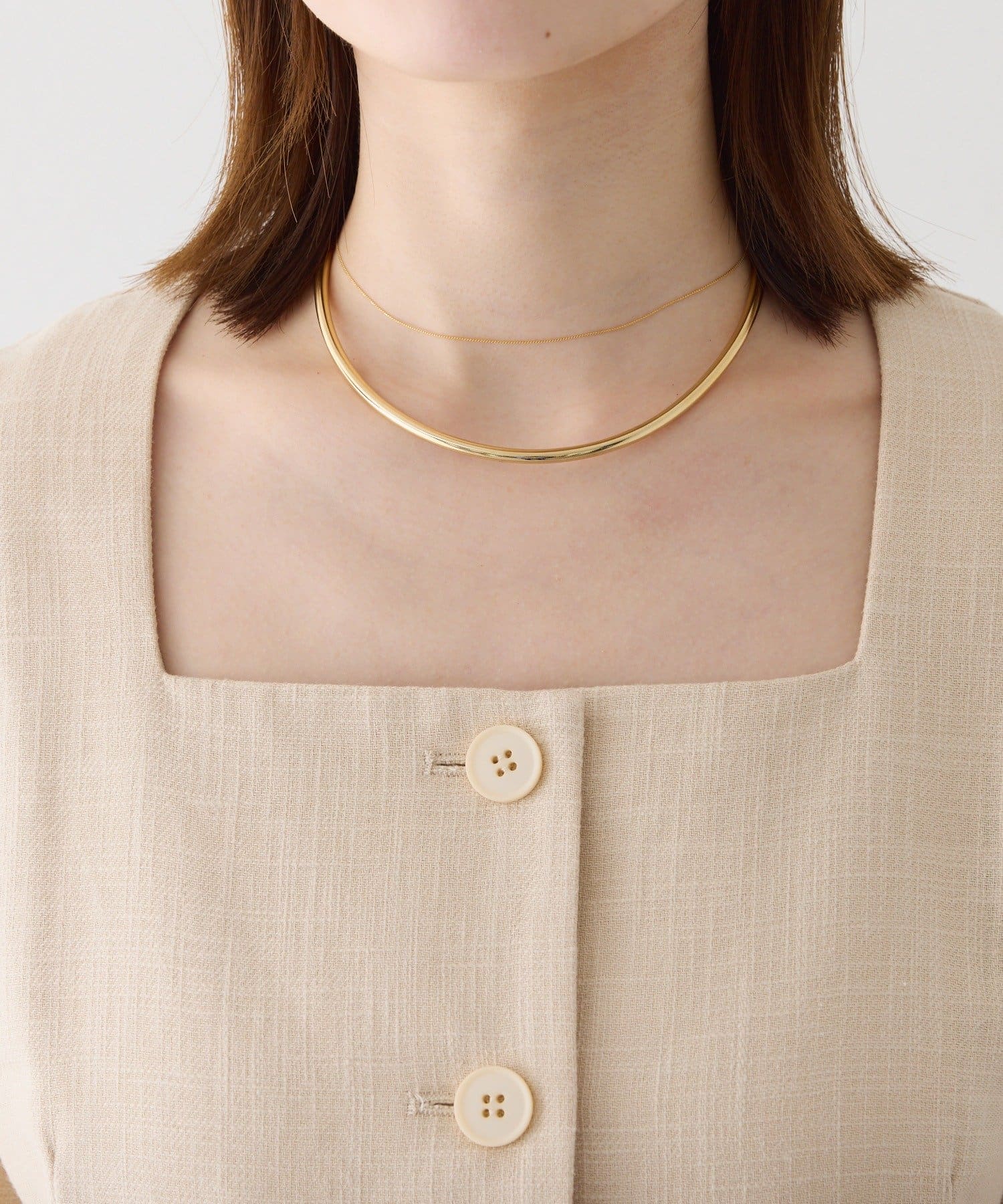 ・スクエアカラーはデコルテをきれいに見せてくれて、ネックレスやチョーカーとの相性も◎