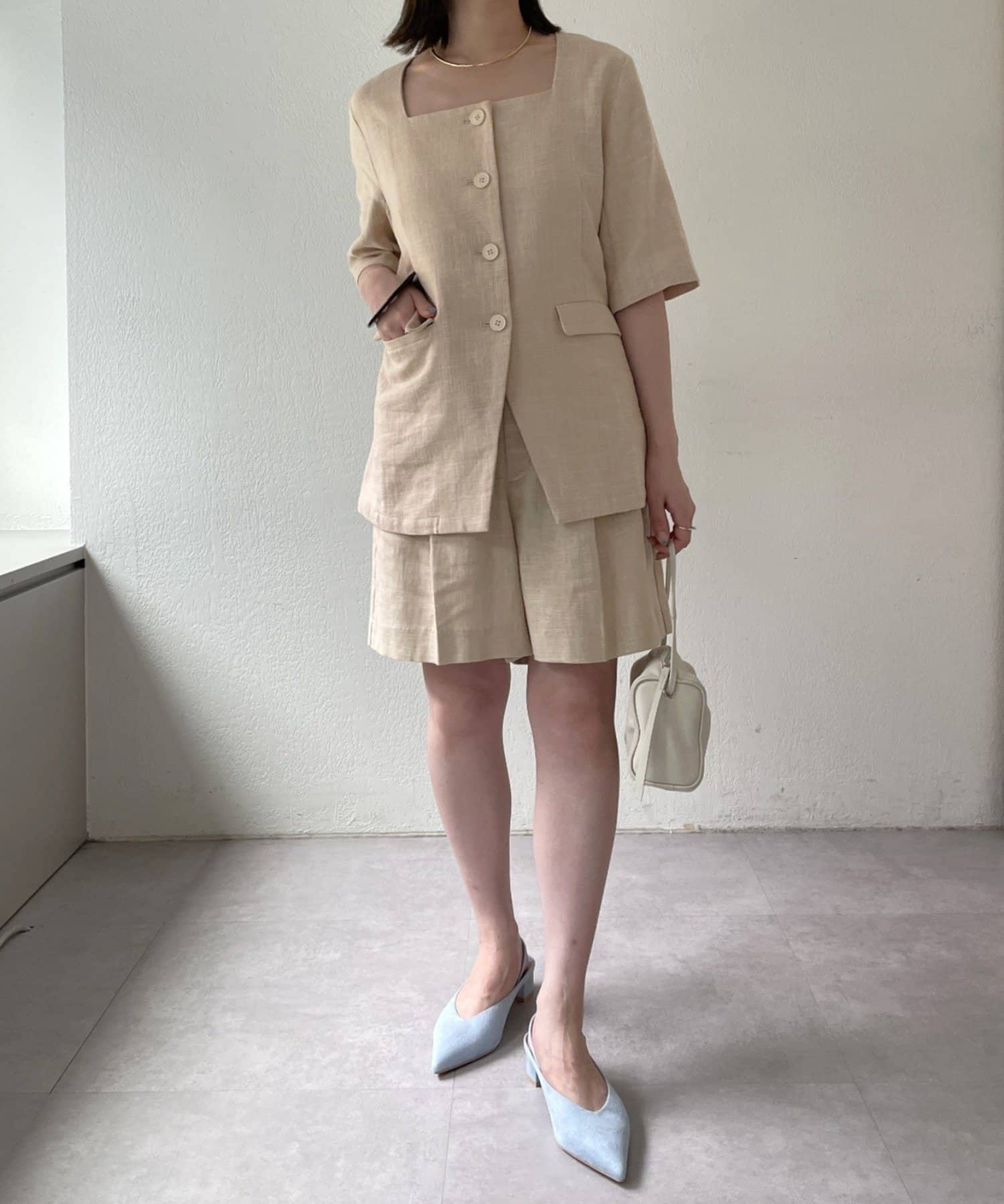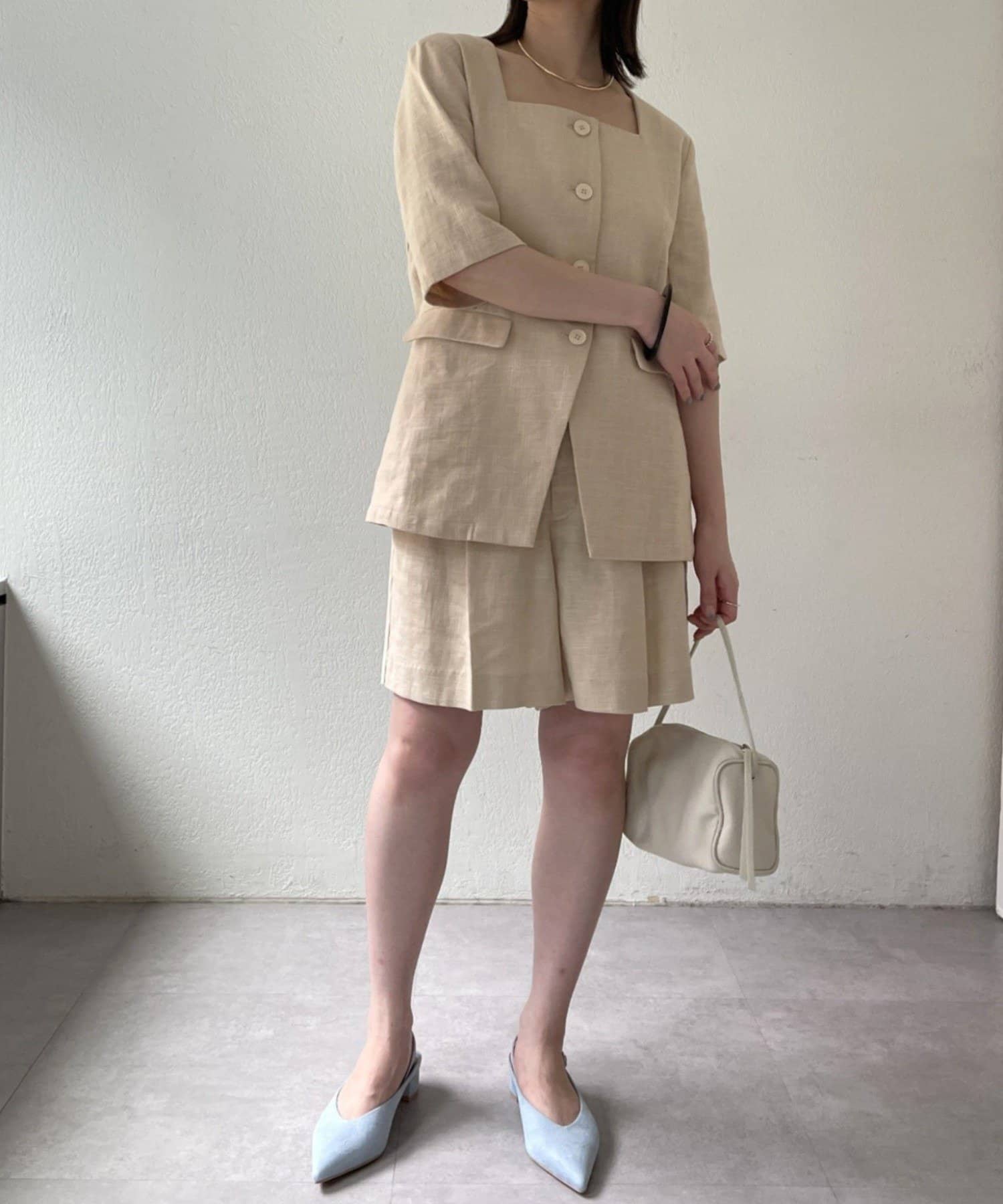 ・同素材のリネンショートパンツとのセットアップでの着用もおすすめ◎