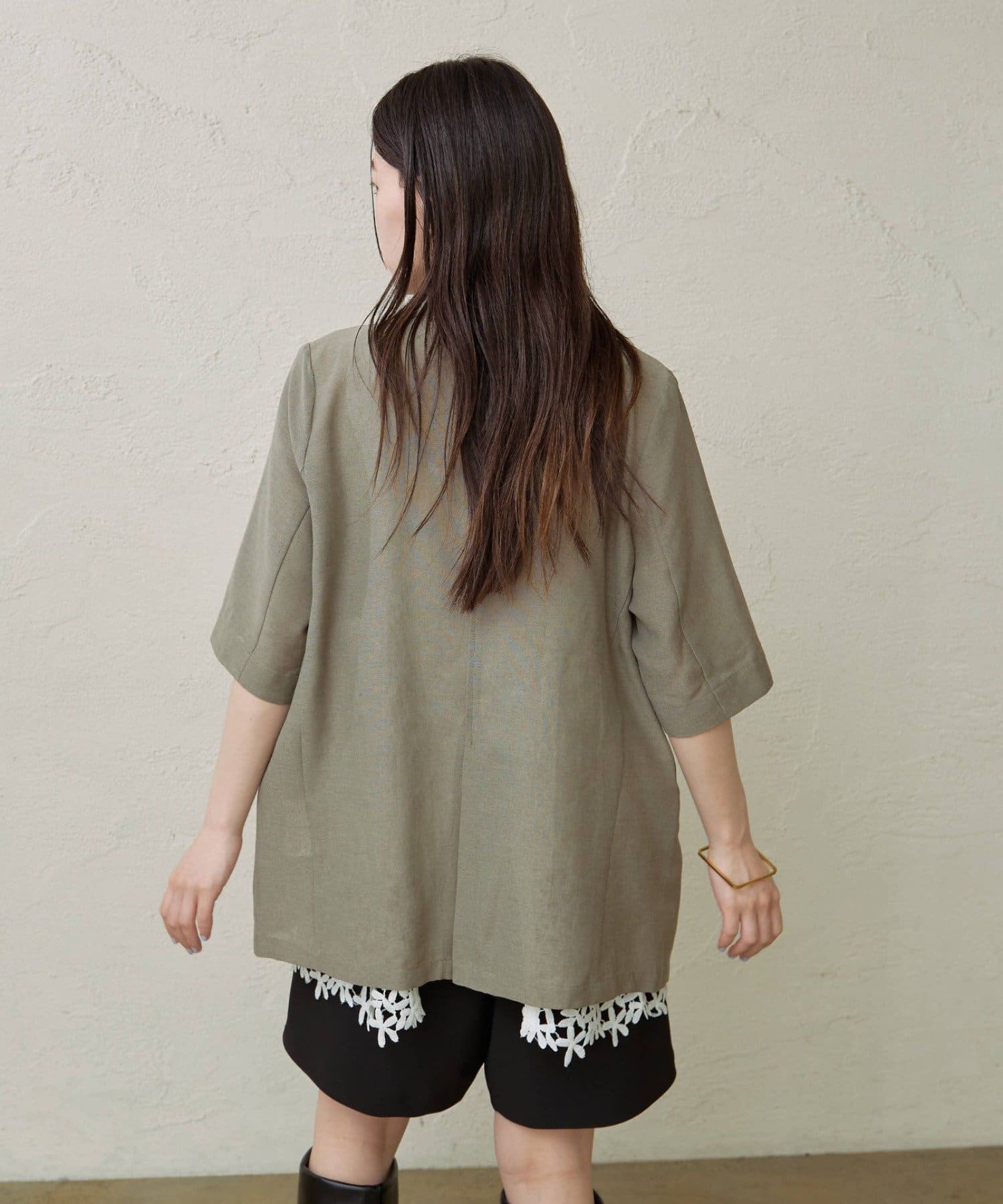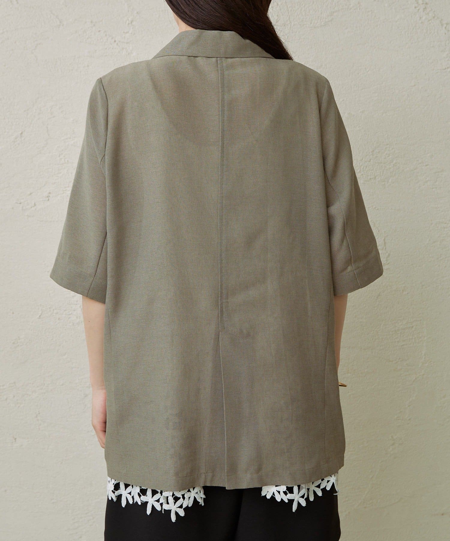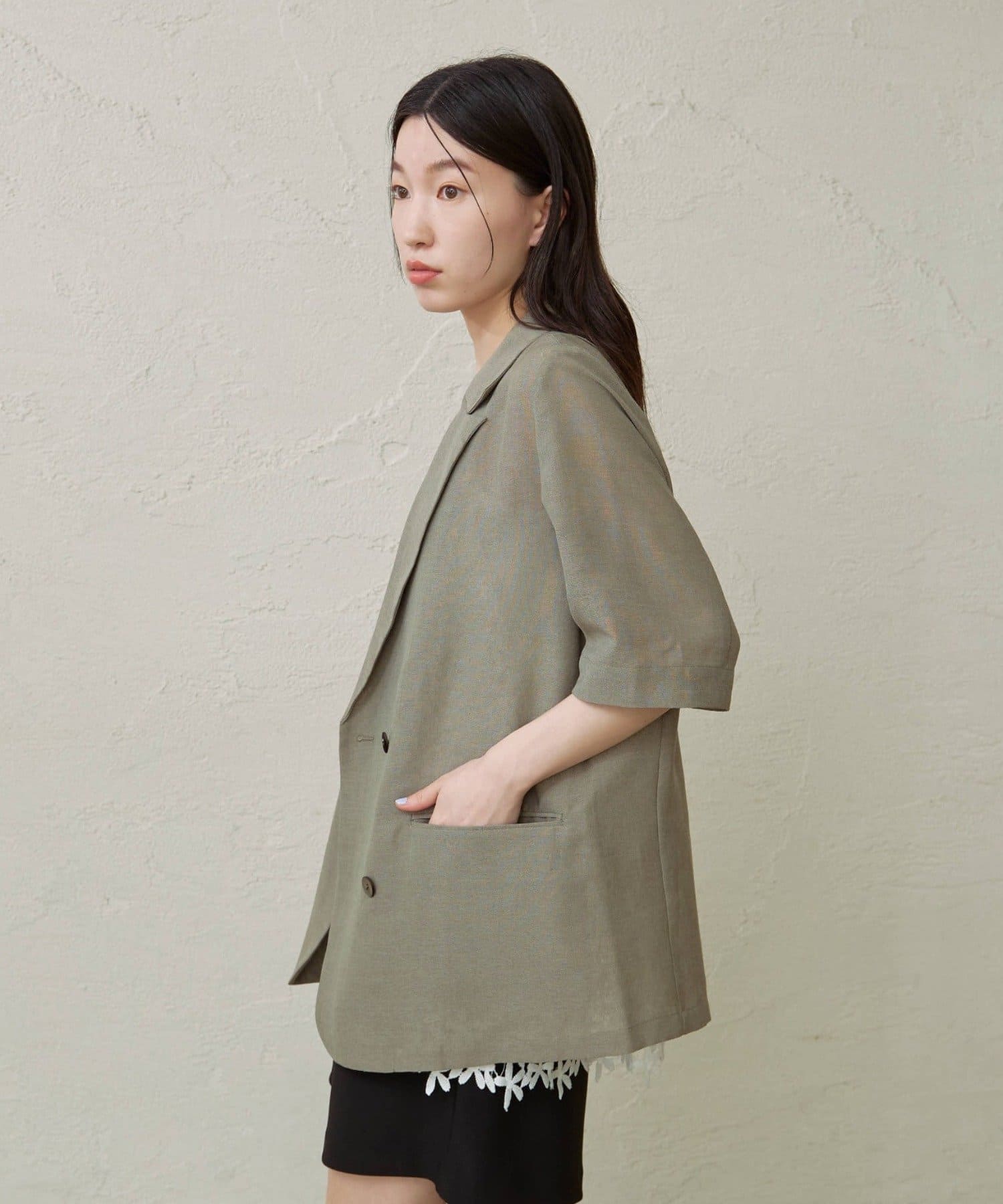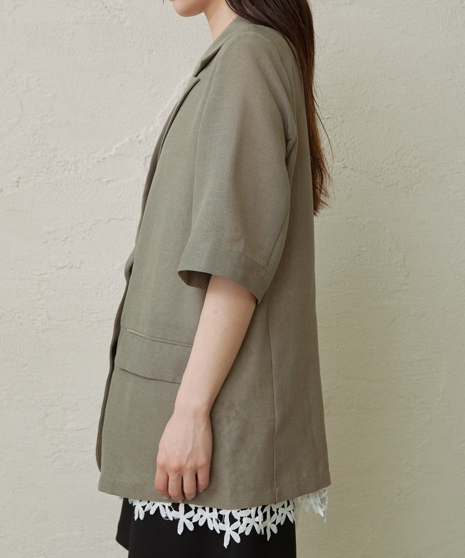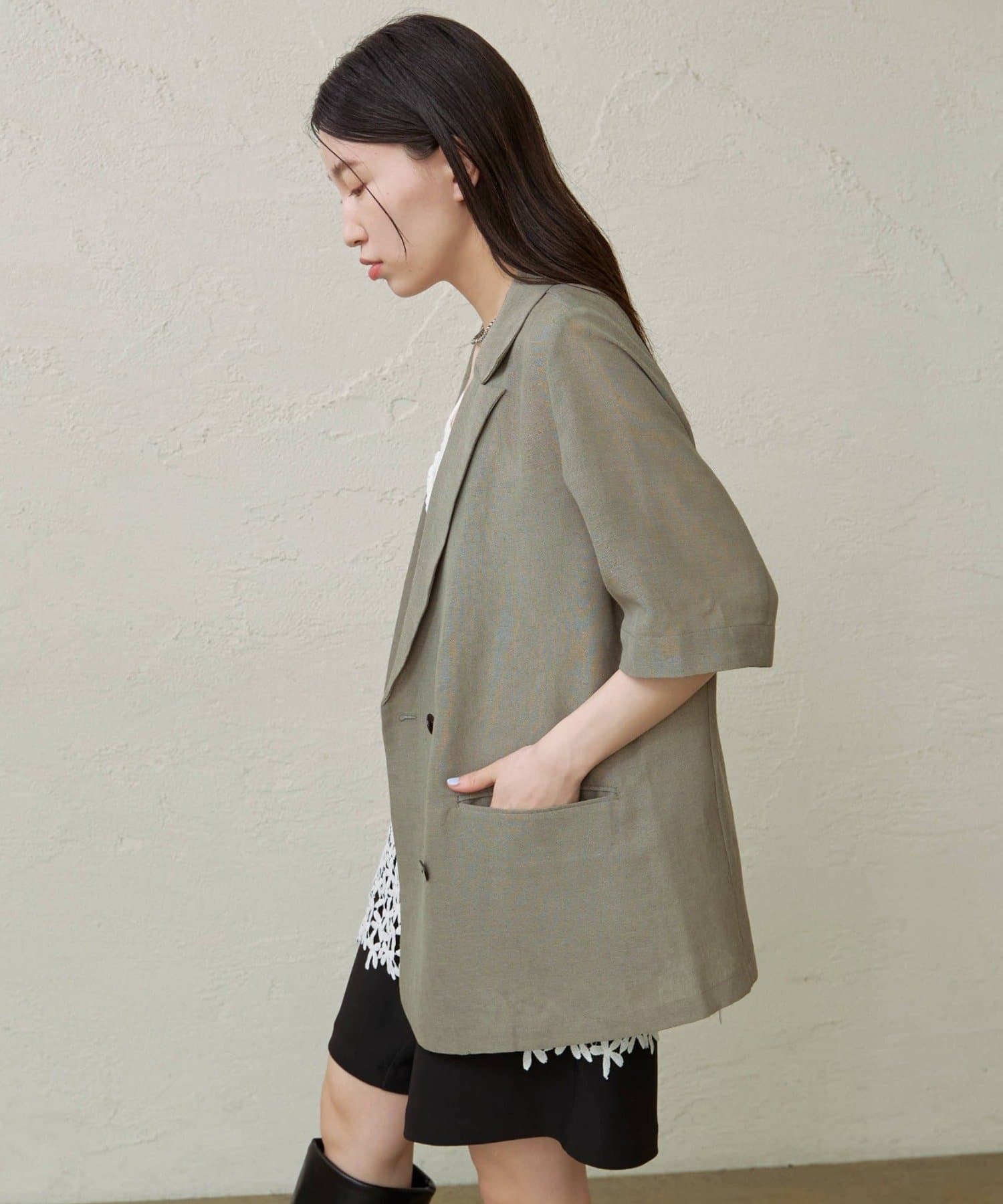 ・涼し気なシアー素材で仕立てたメッシュジャケット。5分袖なので、これからの暑い時期にもピッタリです。