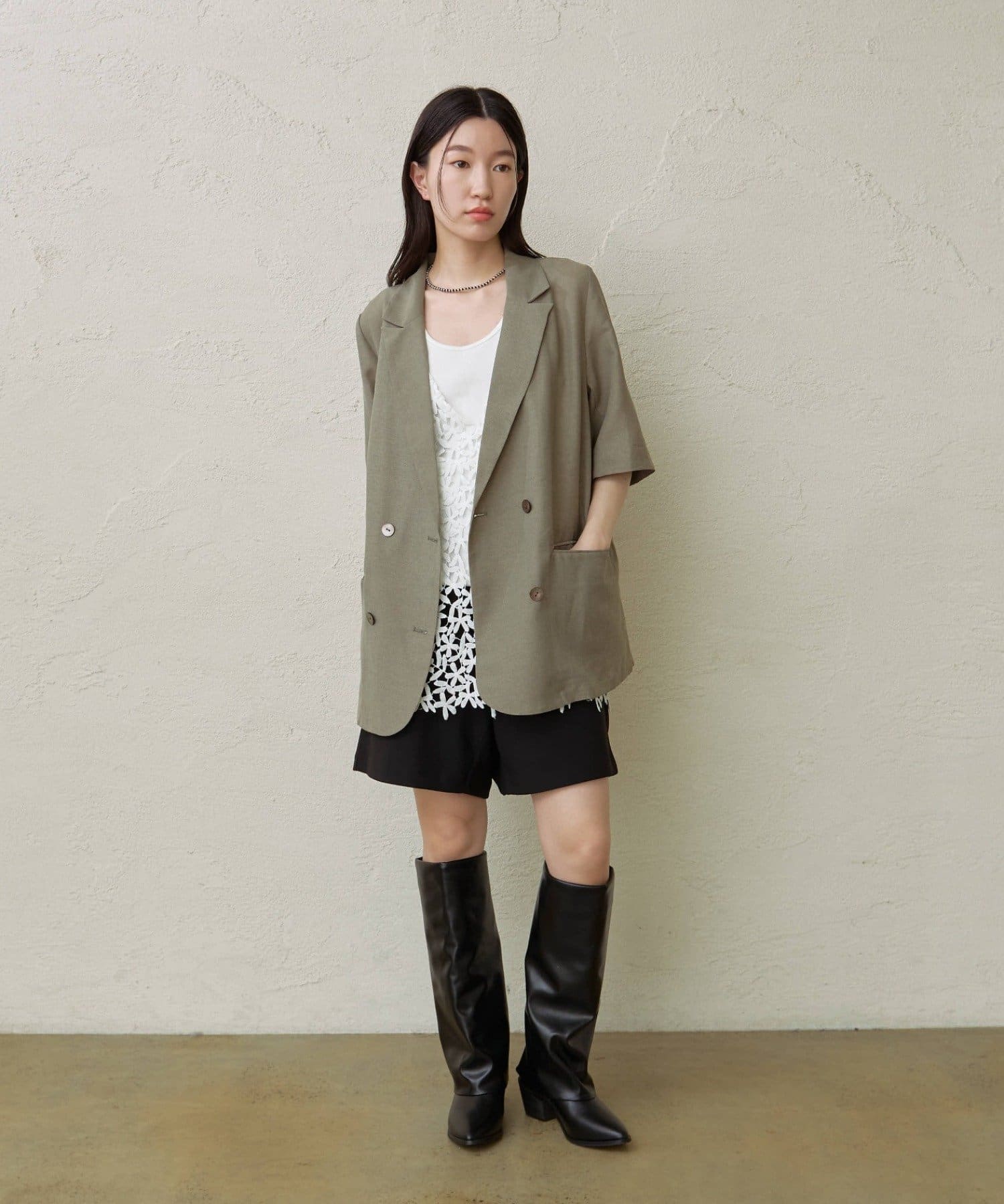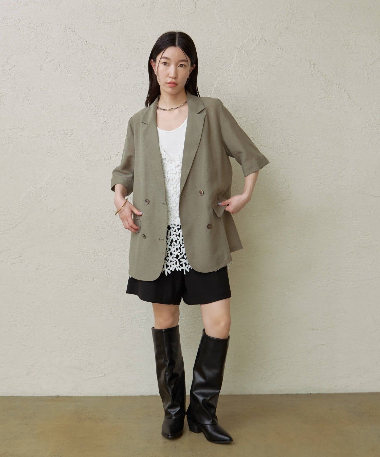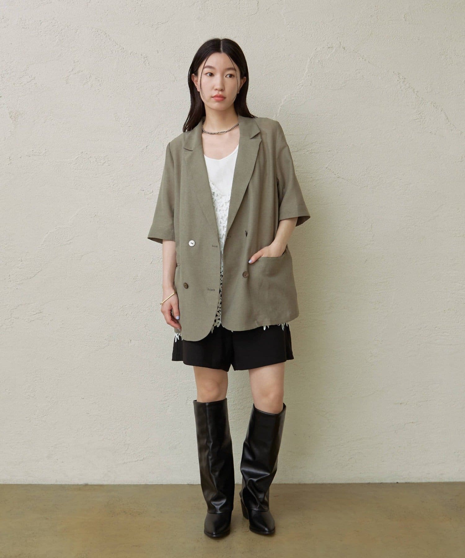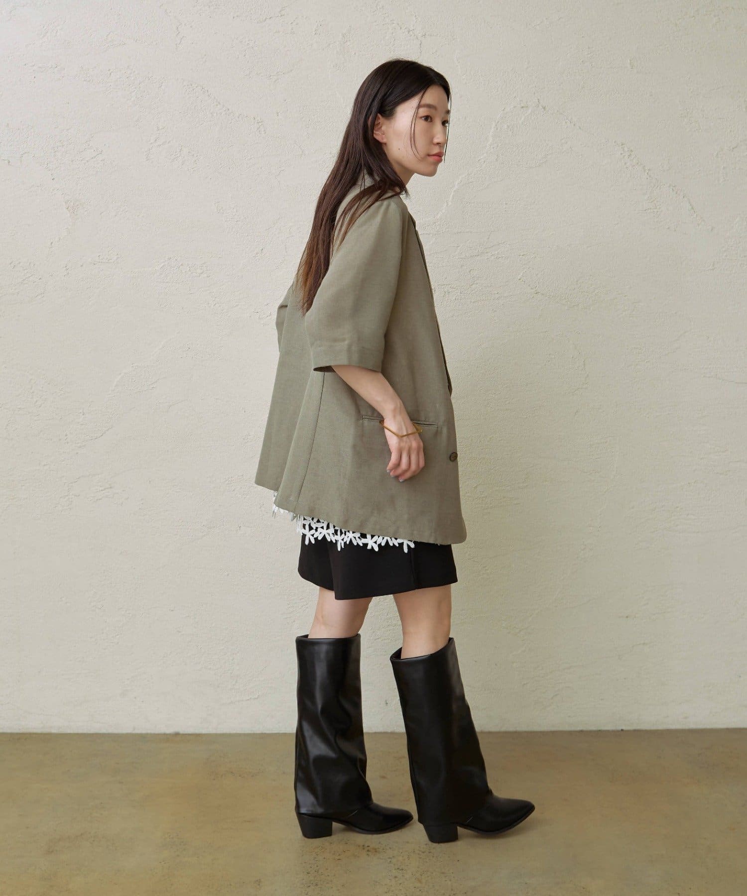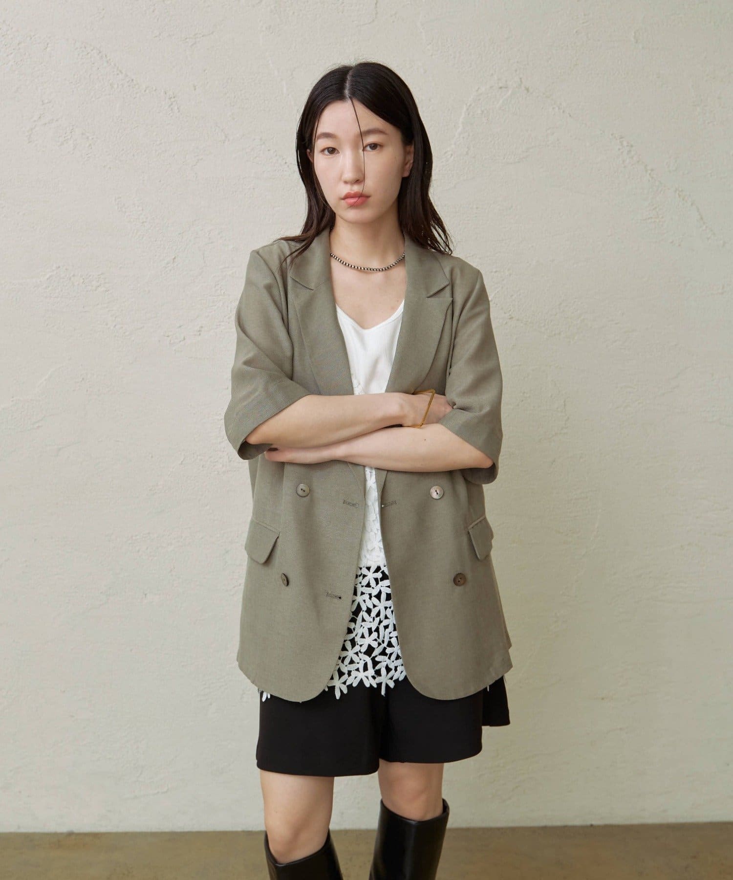 ・涼し気なシアー素材で仕立てたメッシュジャケット。5分袖なので、これからの暑い時期にもピッタリです。