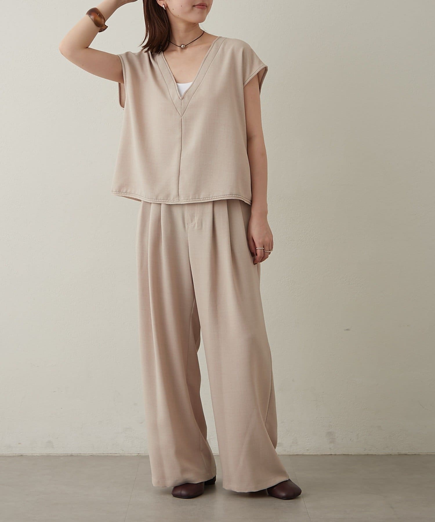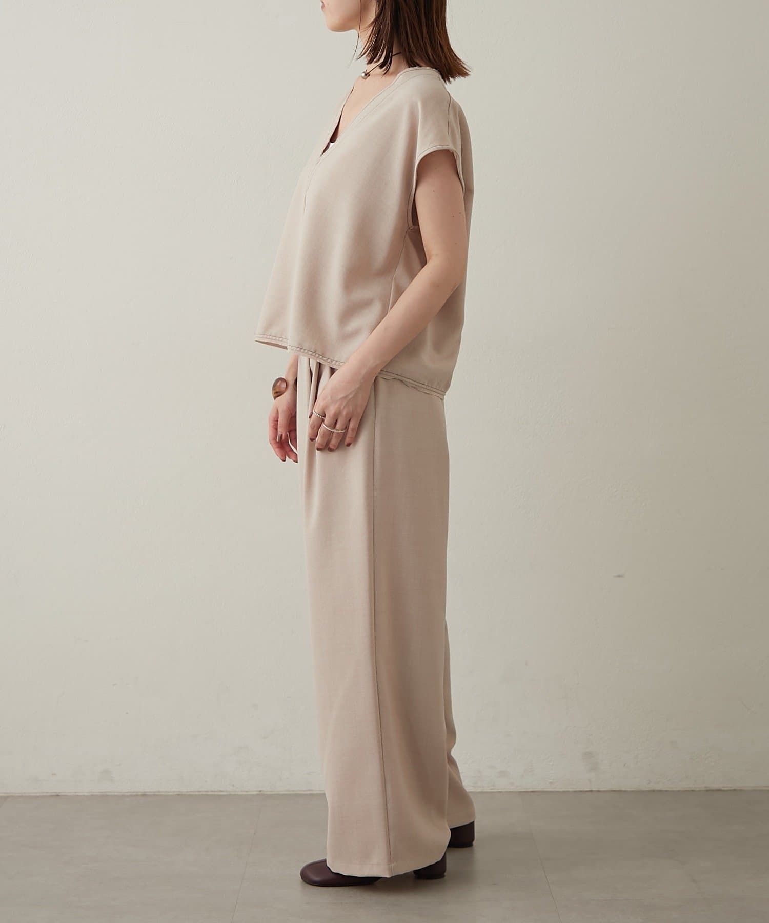 ・同素材のタンブラーオックスタックパンツとセットアップで着用いただけます。