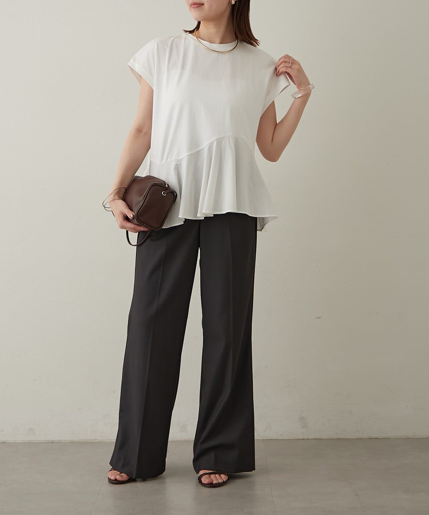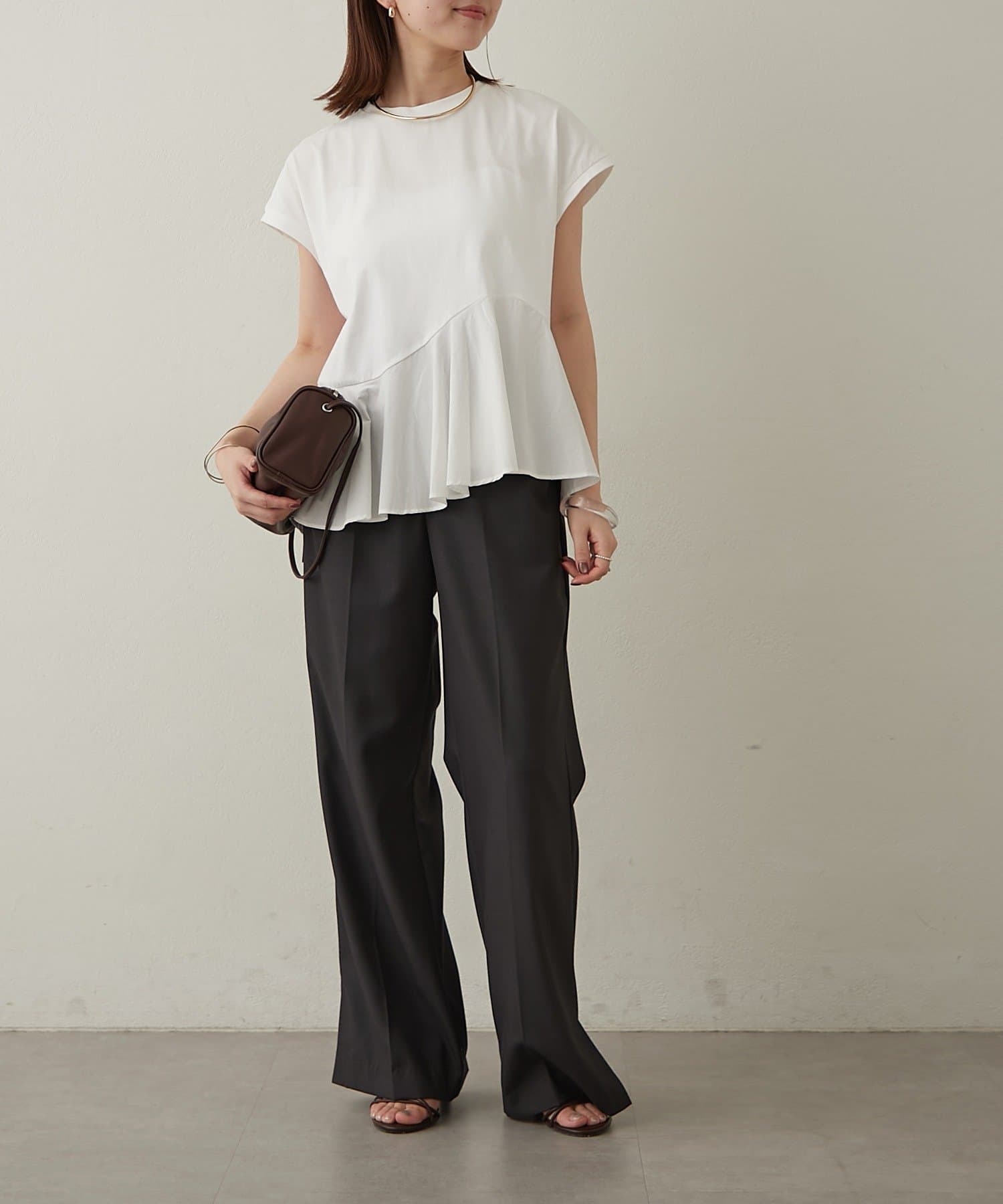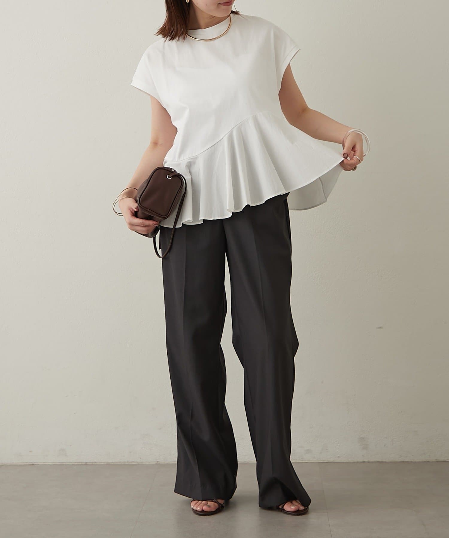 ・フリルが斜めに入っていることで、デザイン性がありスタイリングのアクセントになります。
