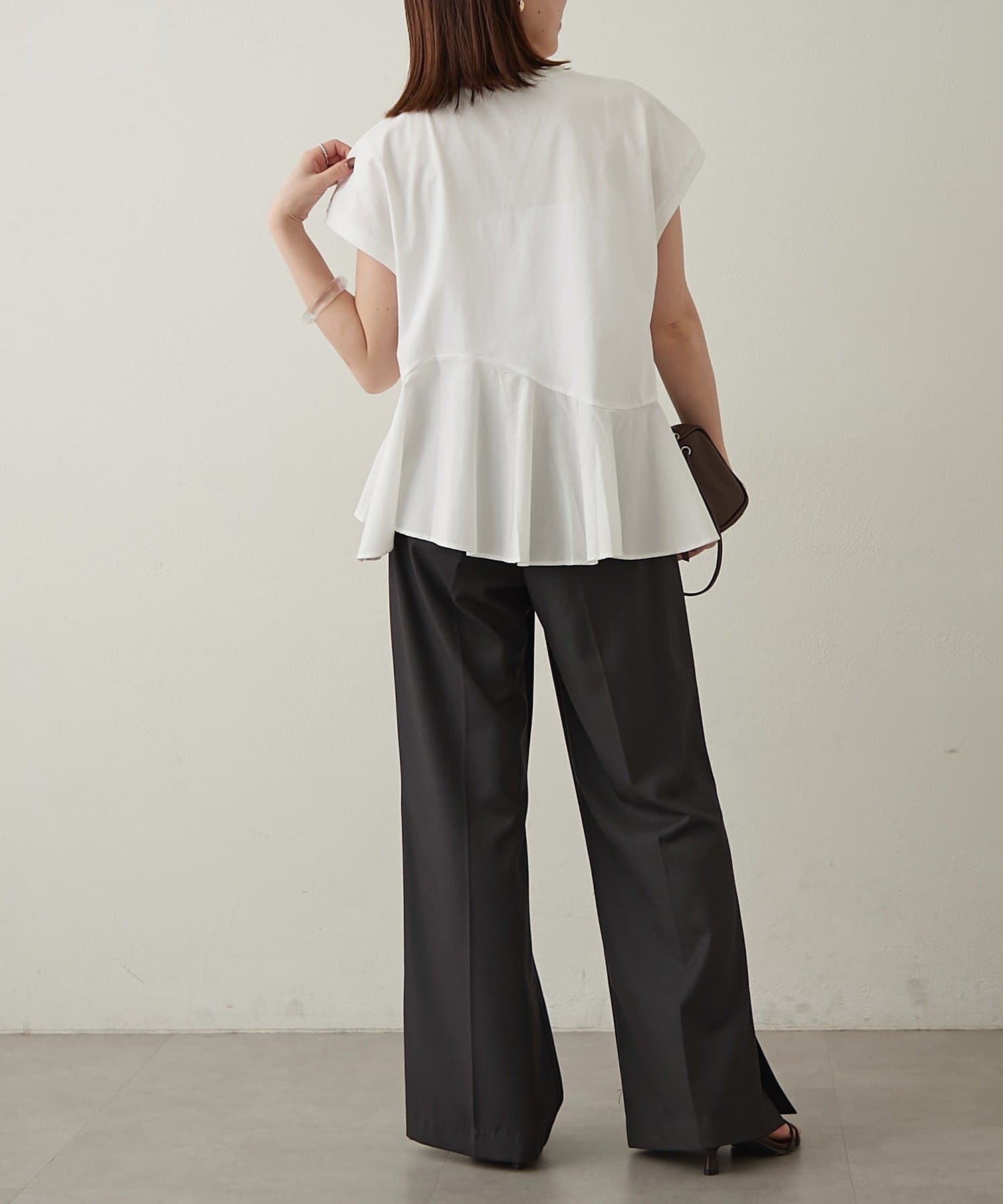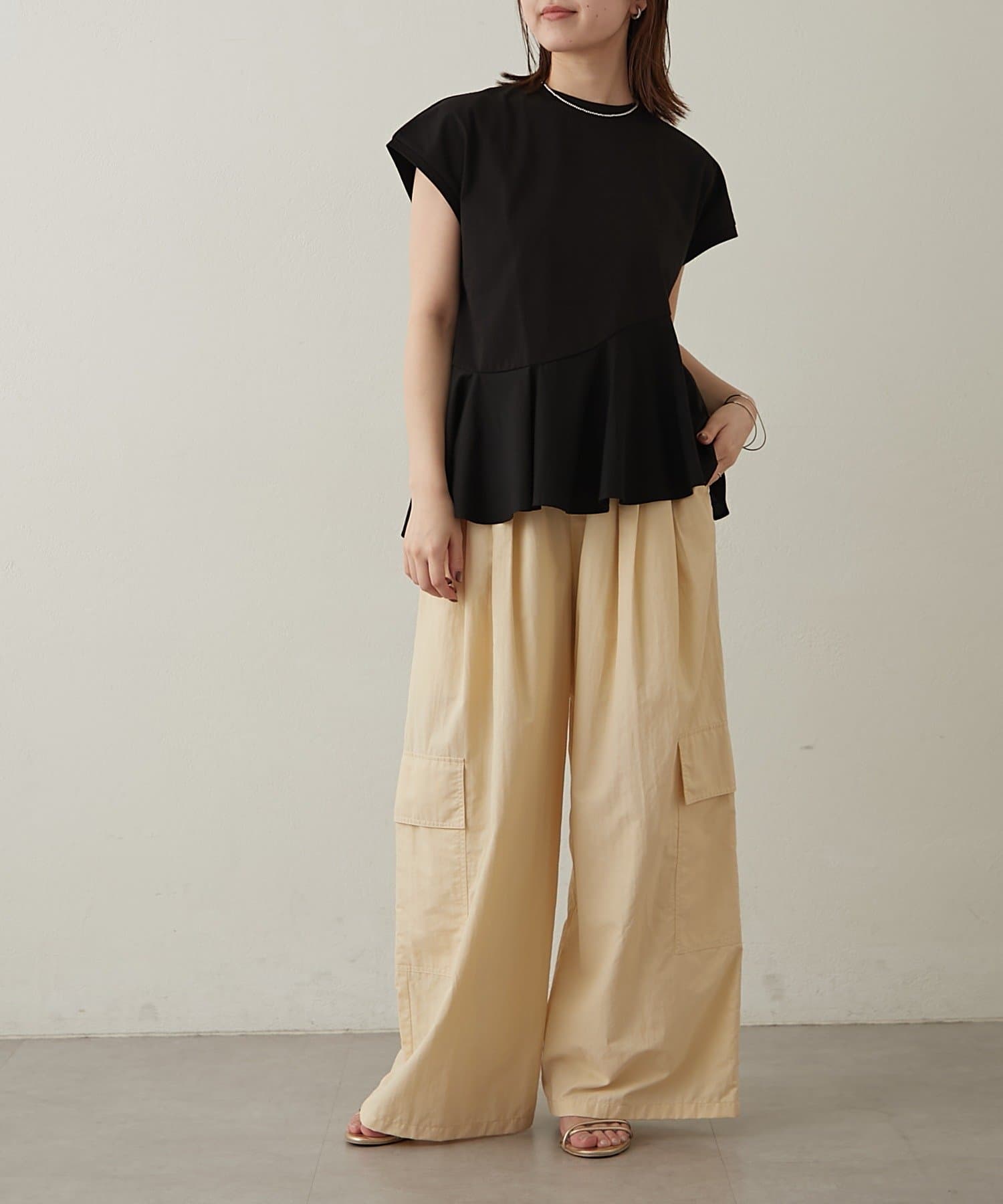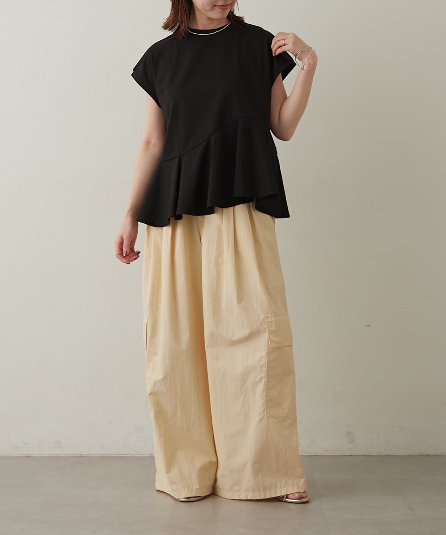 ・フリルが斜めに入っていることで、デザイン性がありスタイリングのアクセントになります。