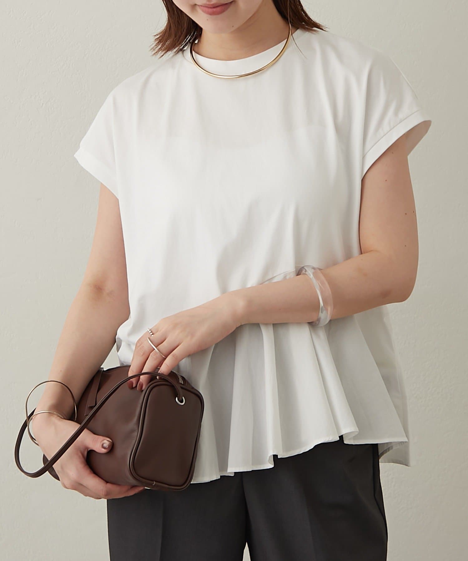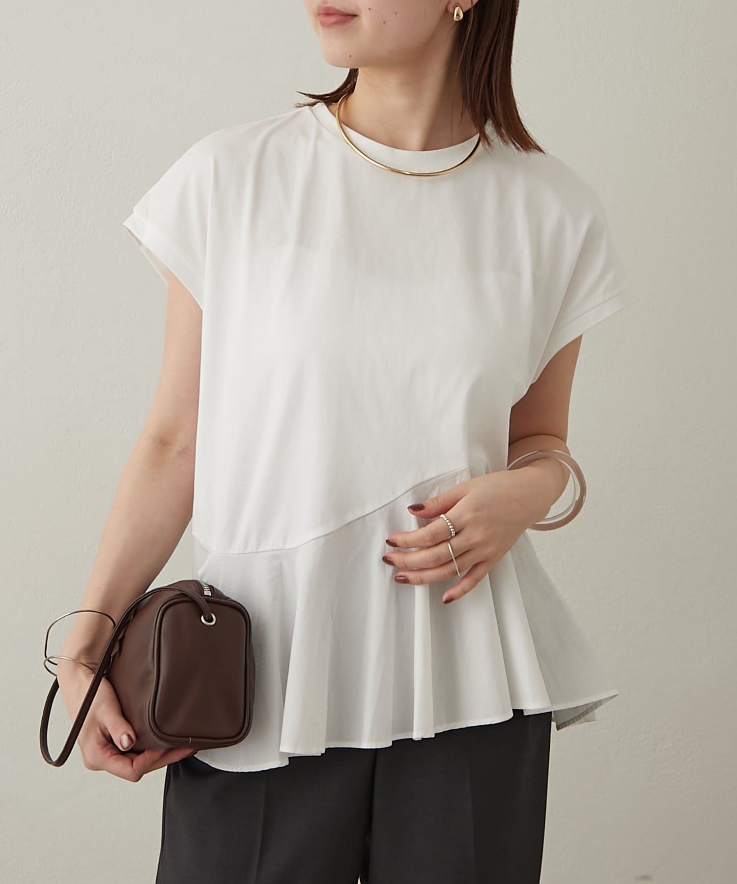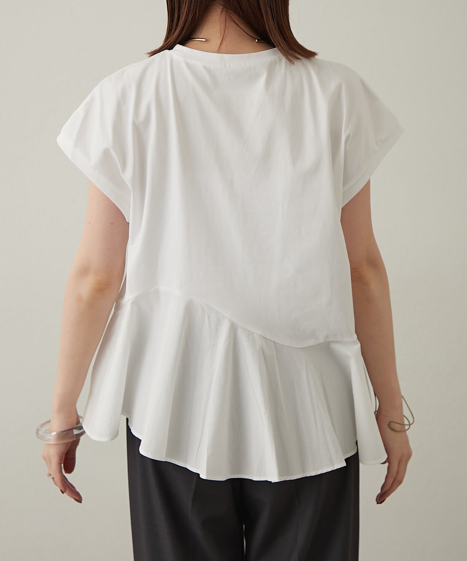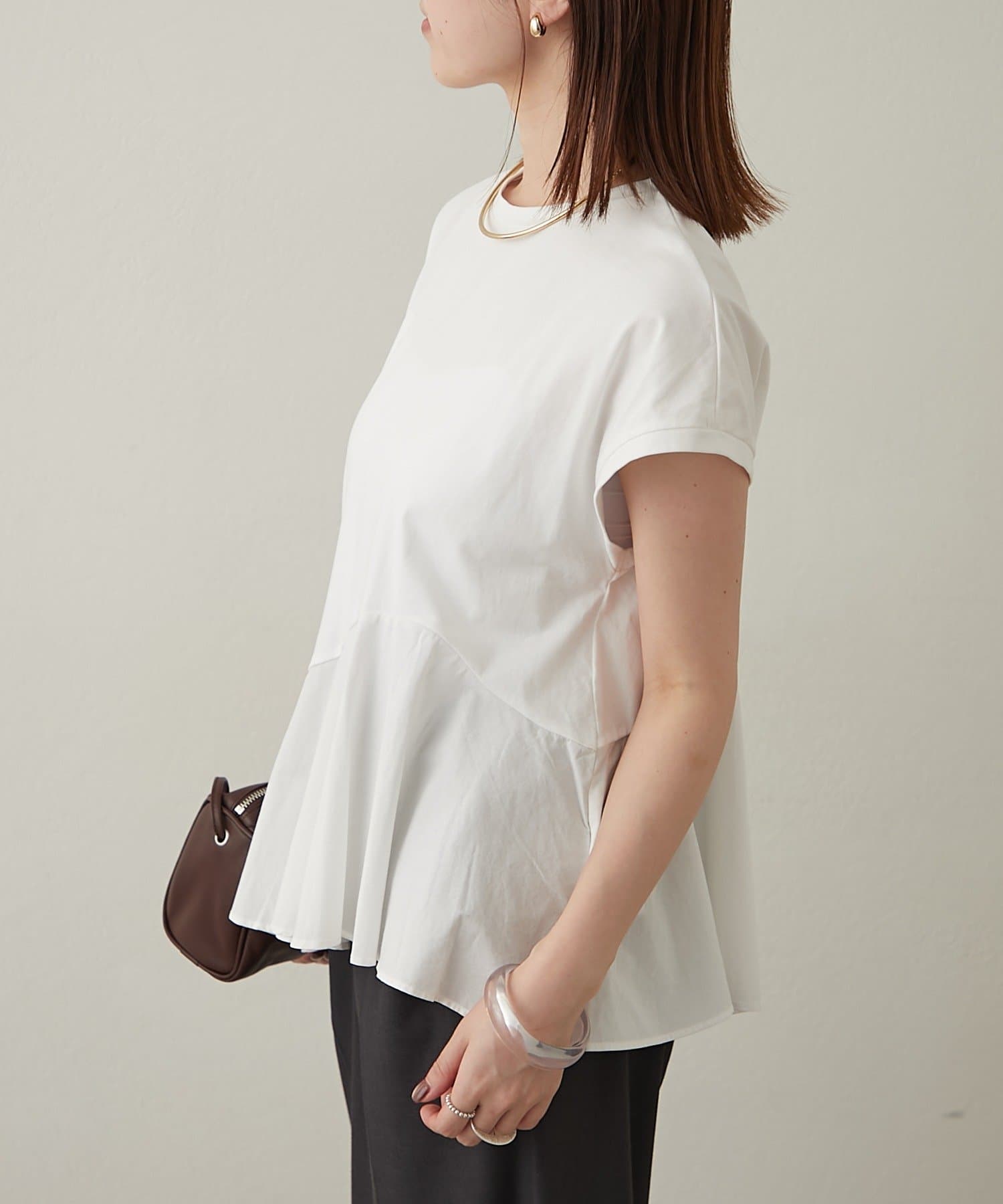 ・カジュアルなTシャツにフリルがドッキングされた、女性らしいフリルドッキングTシャツ。