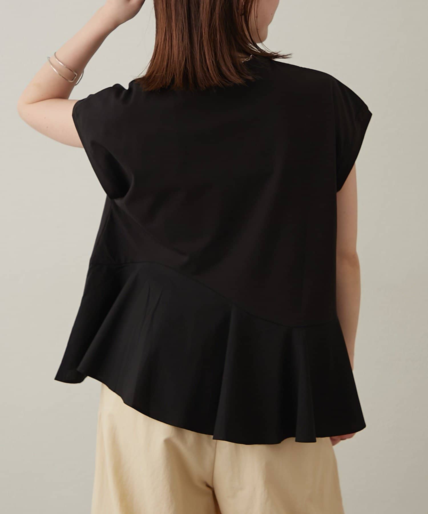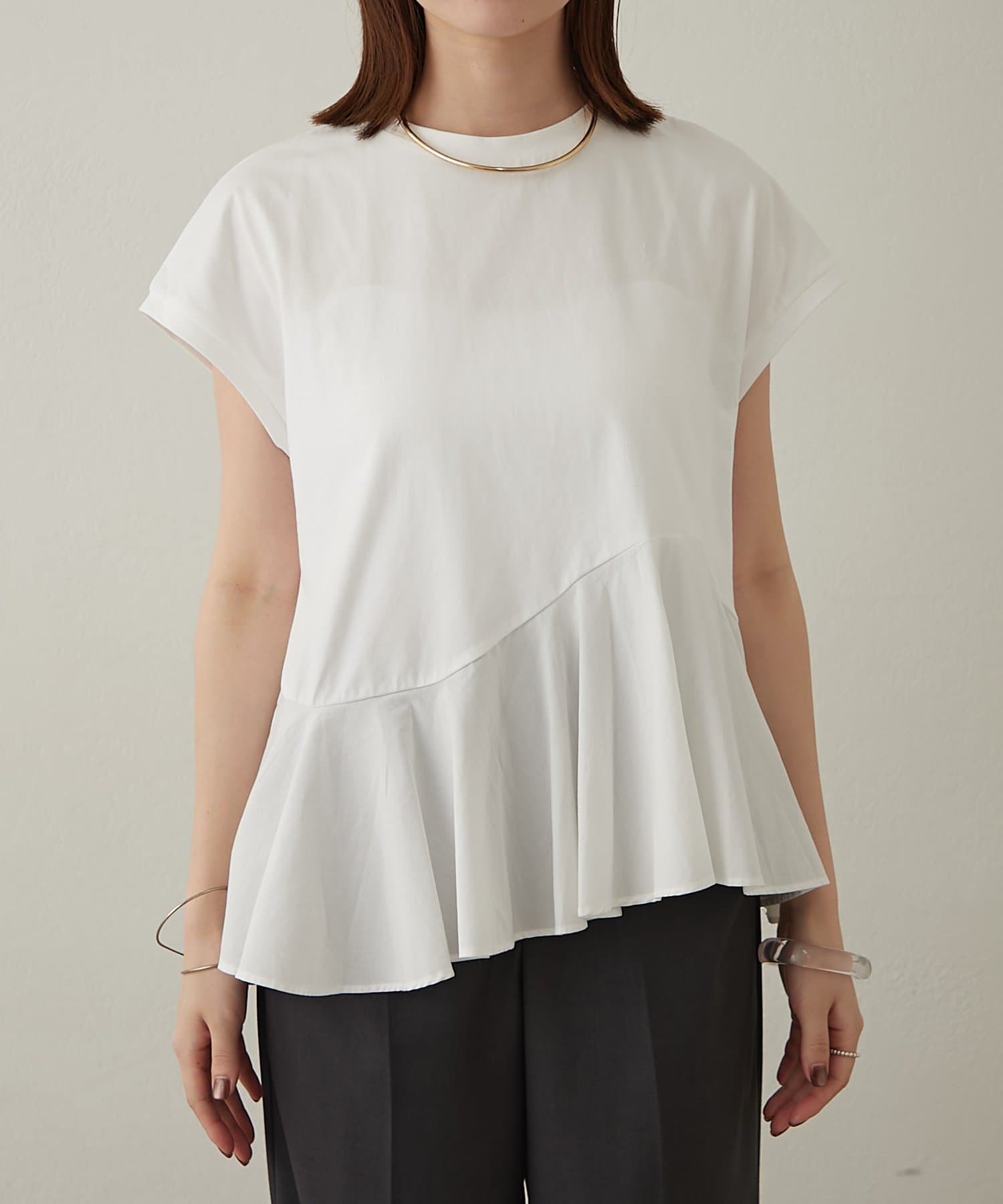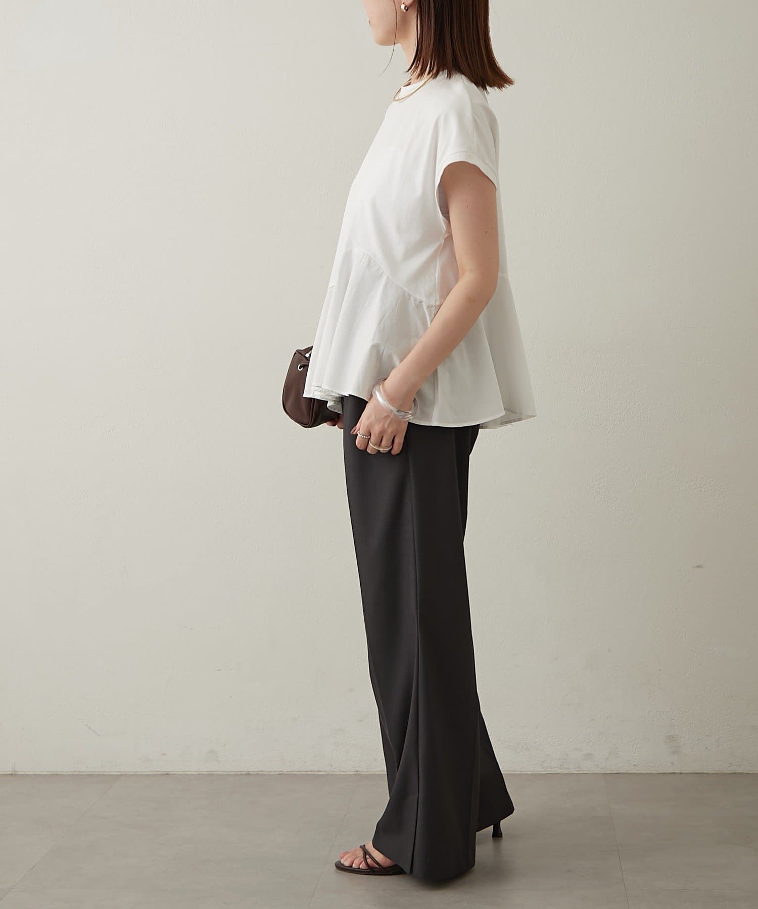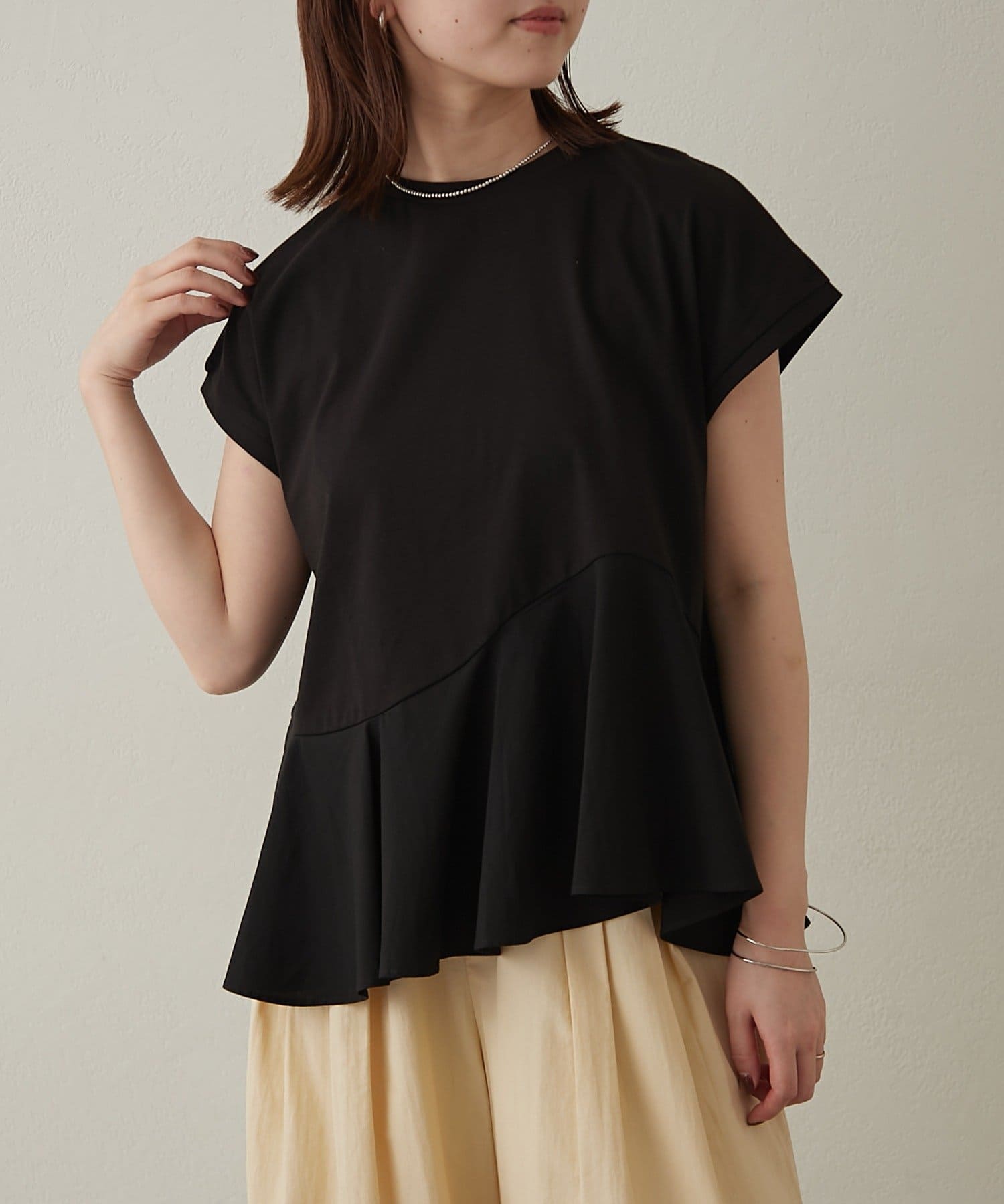 ・カジュアルなTシャツにフリルがドッキングされた、女性らしいフリルドッキングTシャツ。