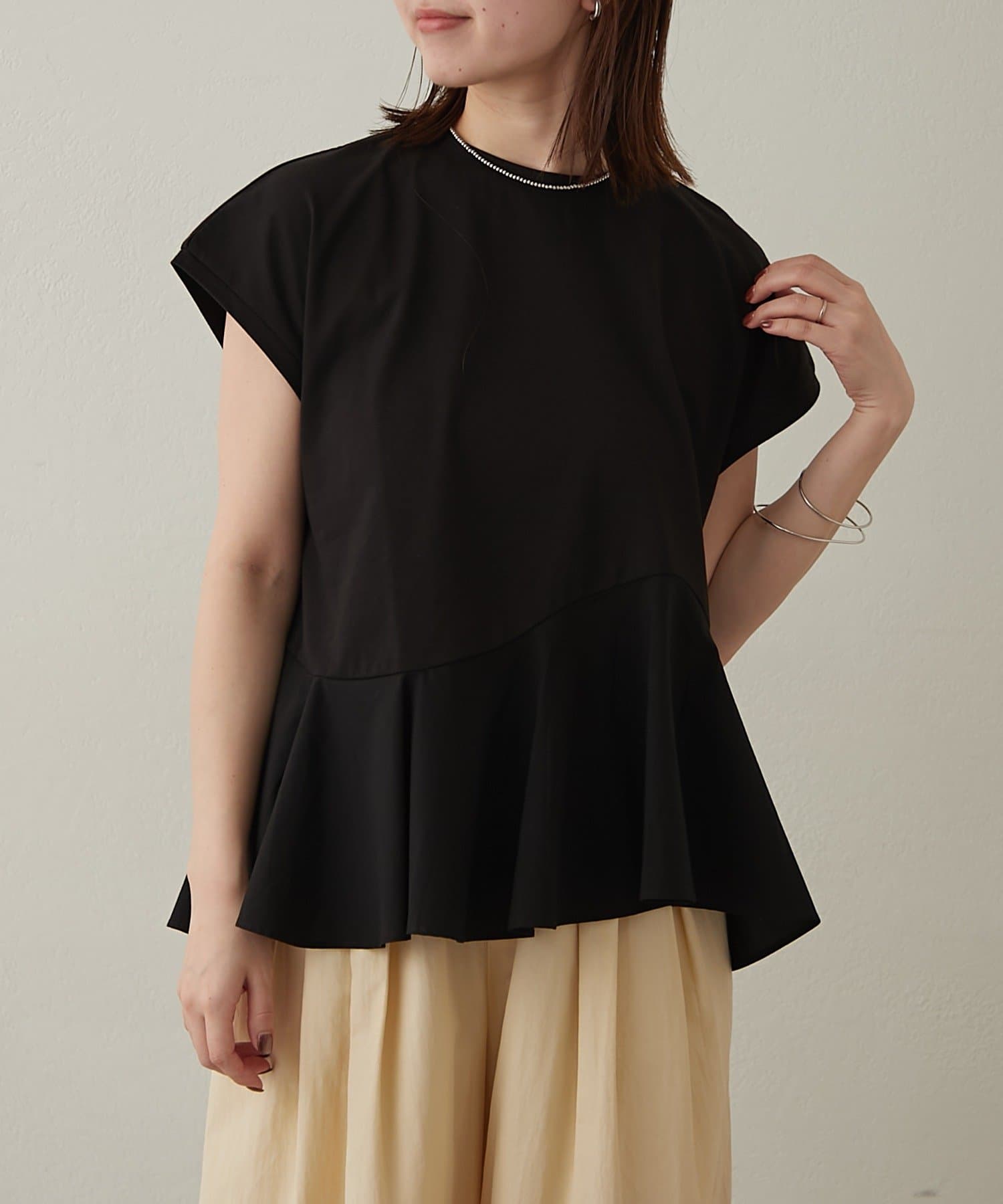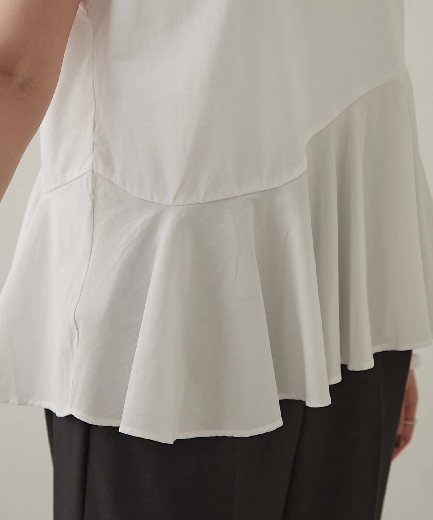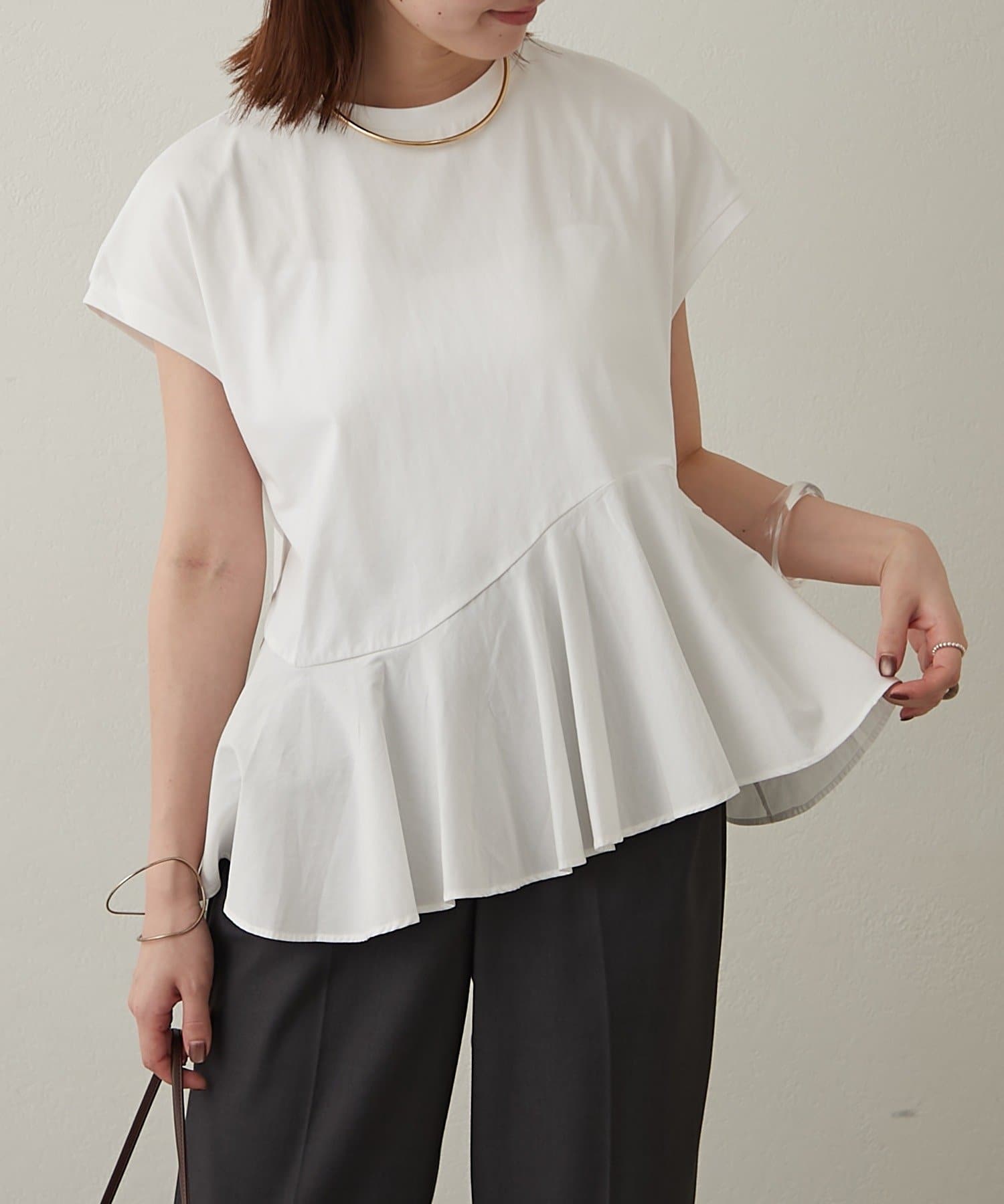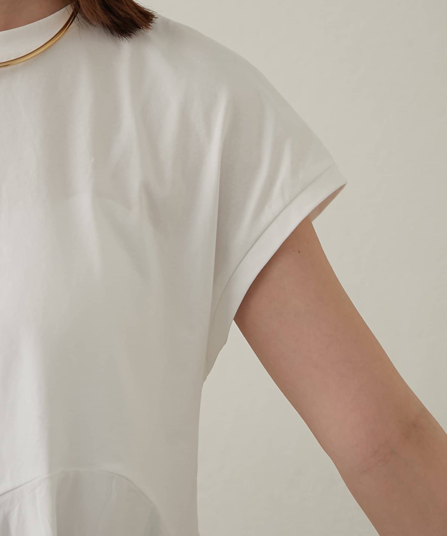 ・カジュアルなTシャツにフリルがドッキングされた、女性らしいフリルドッキングTシャツ。