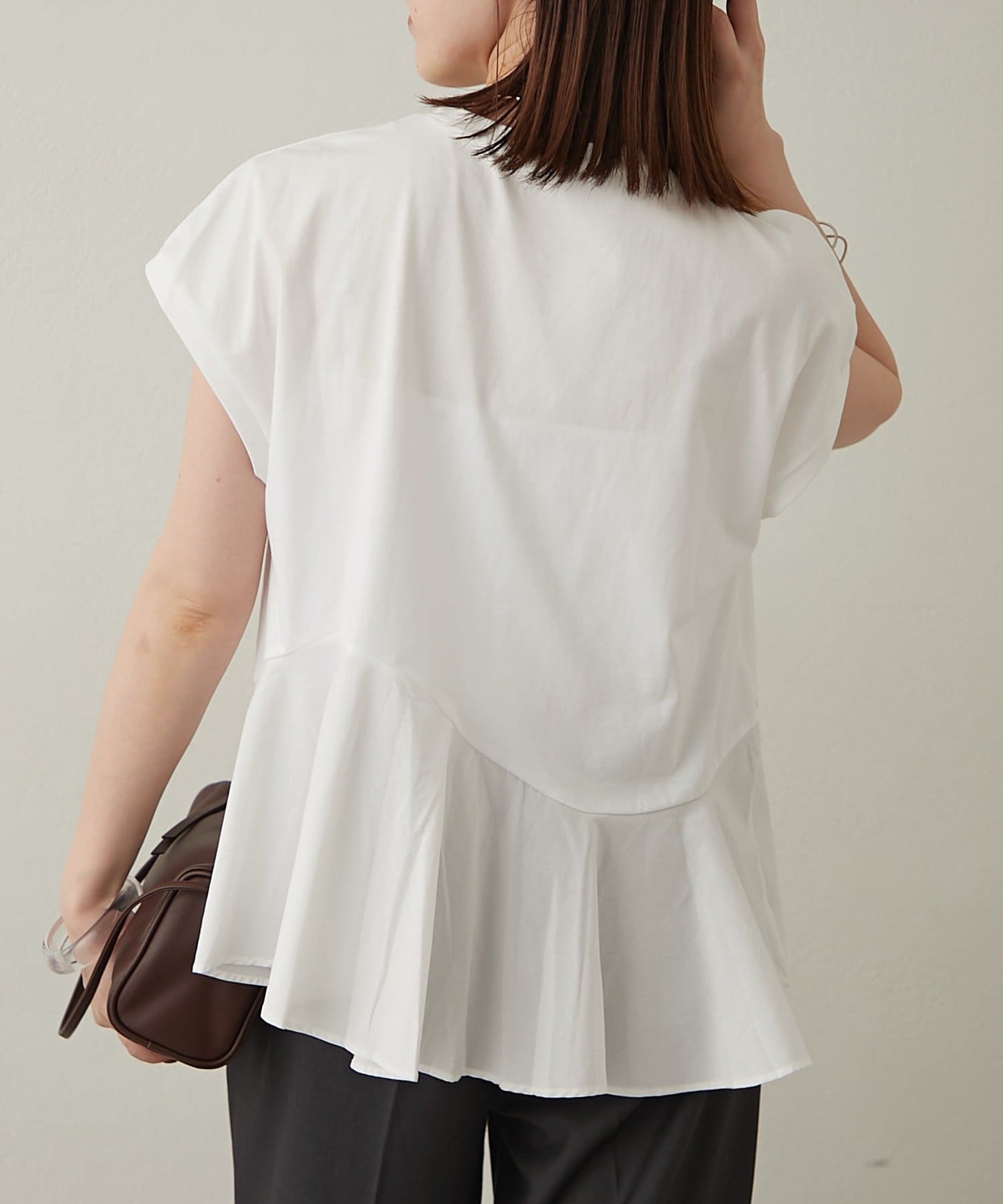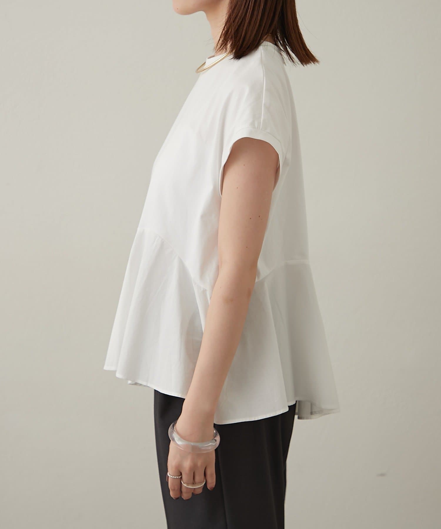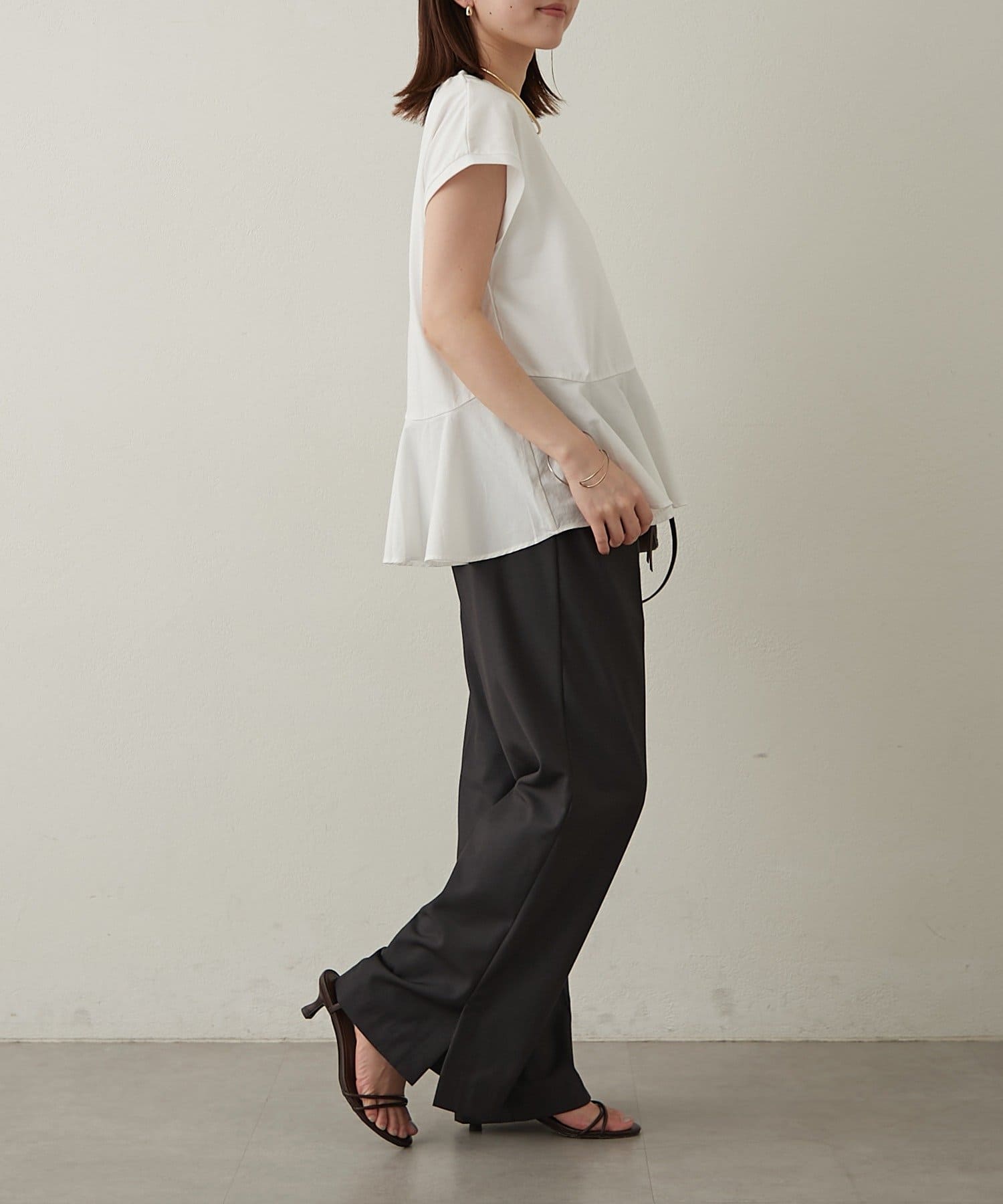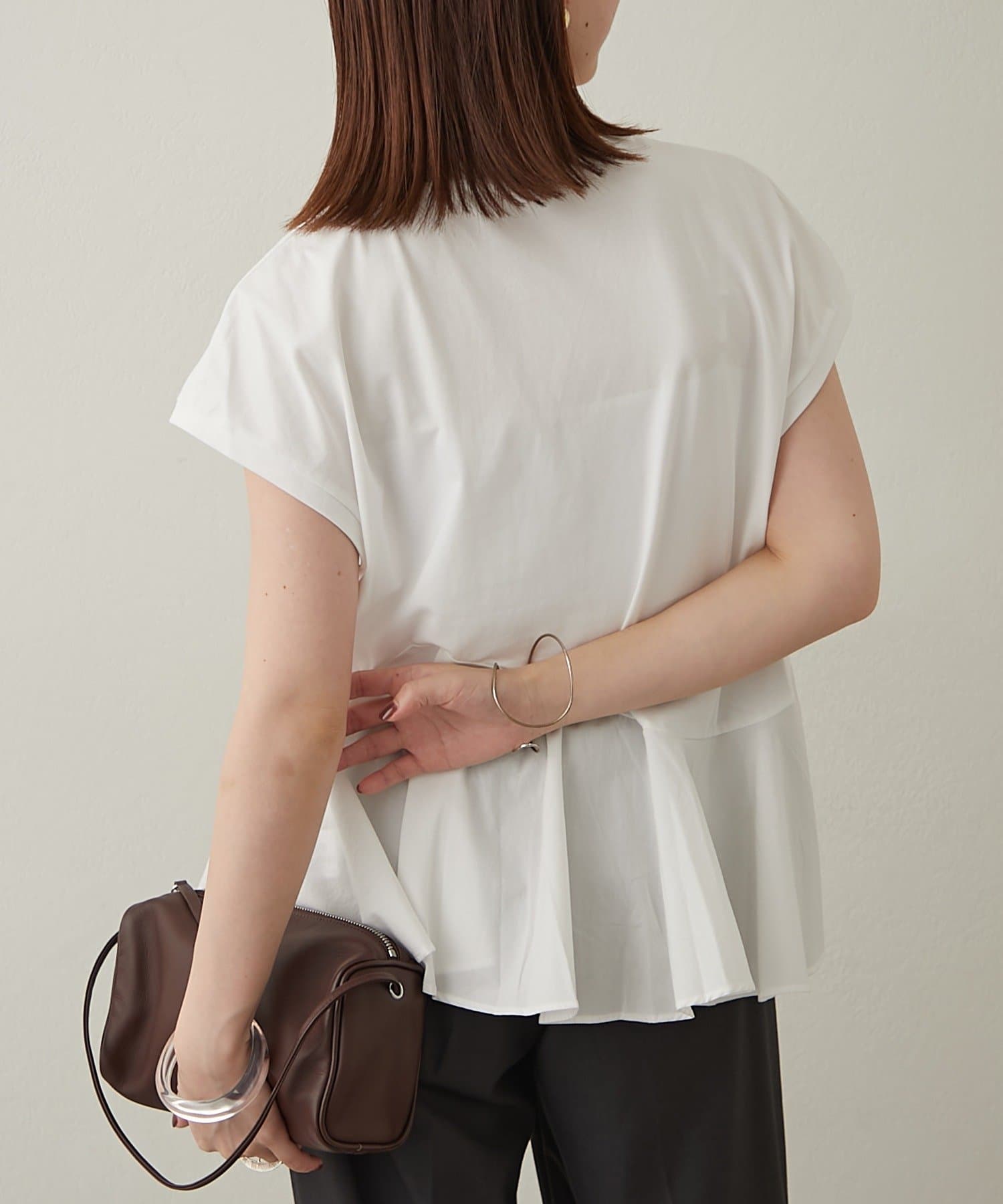 ・カジュアルなTシャツにフリルがドッキングされた、女性らしいフリルドッキングTシャツ。