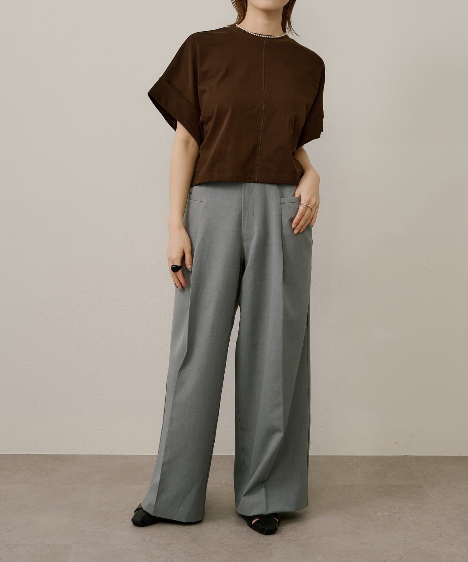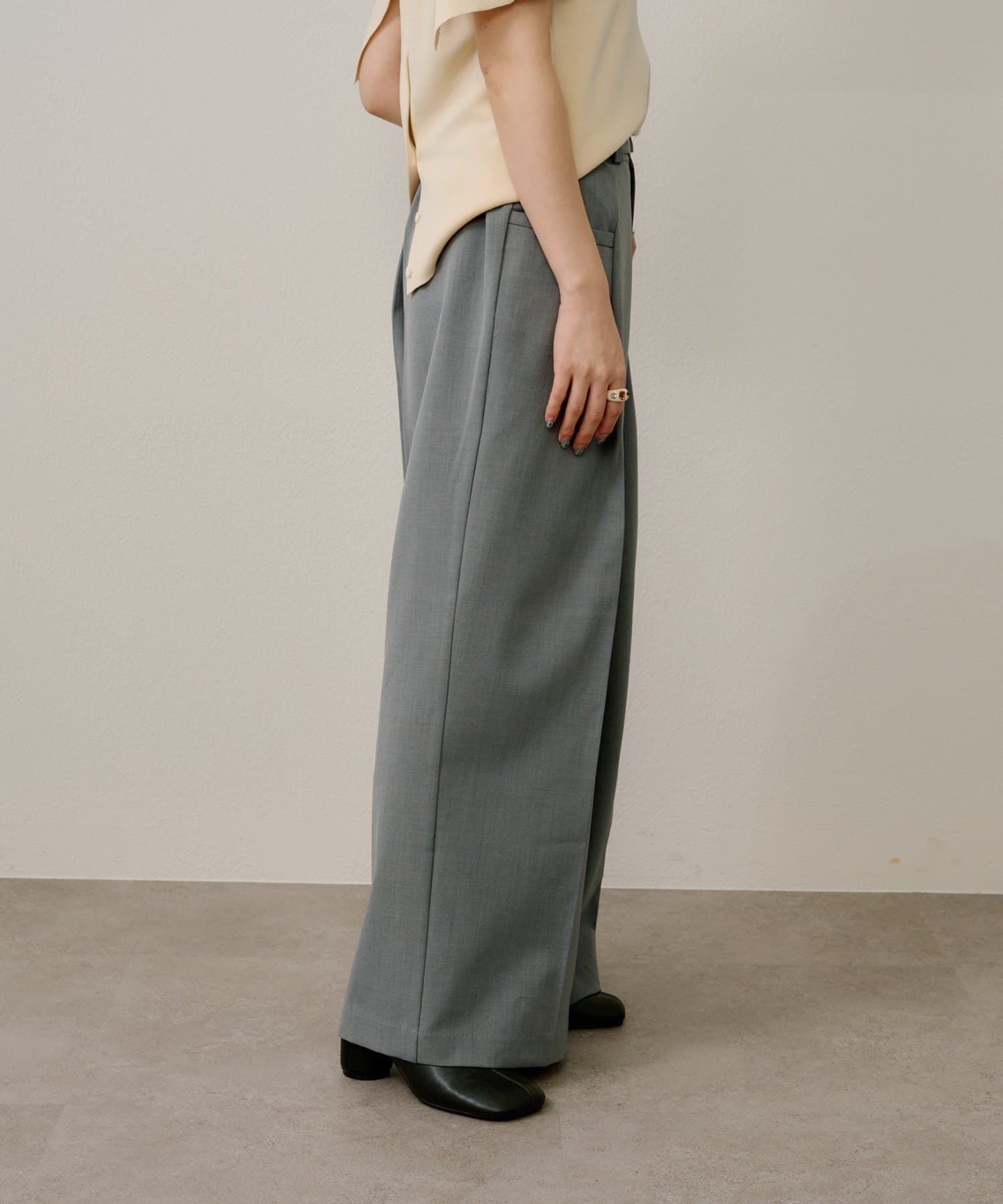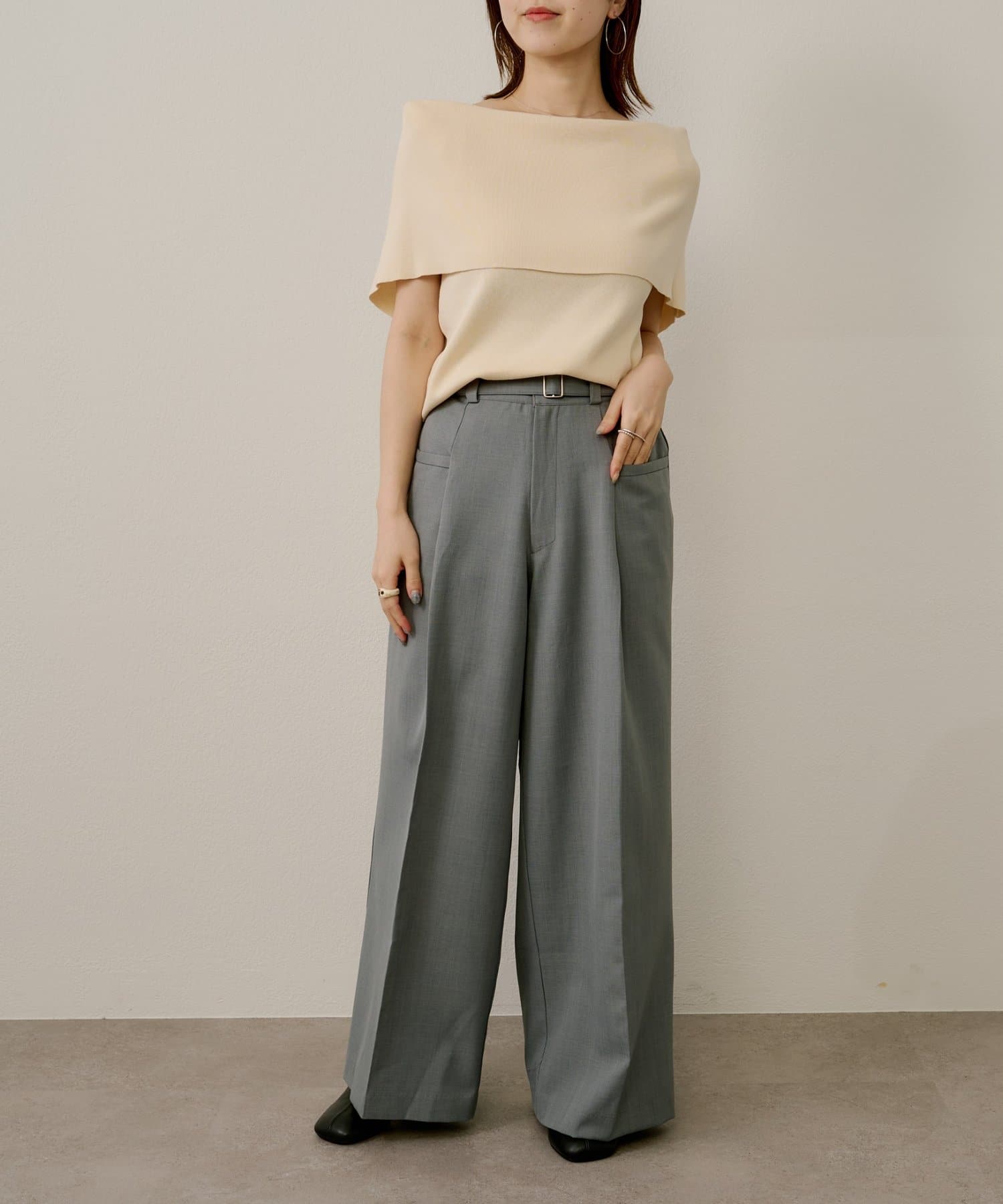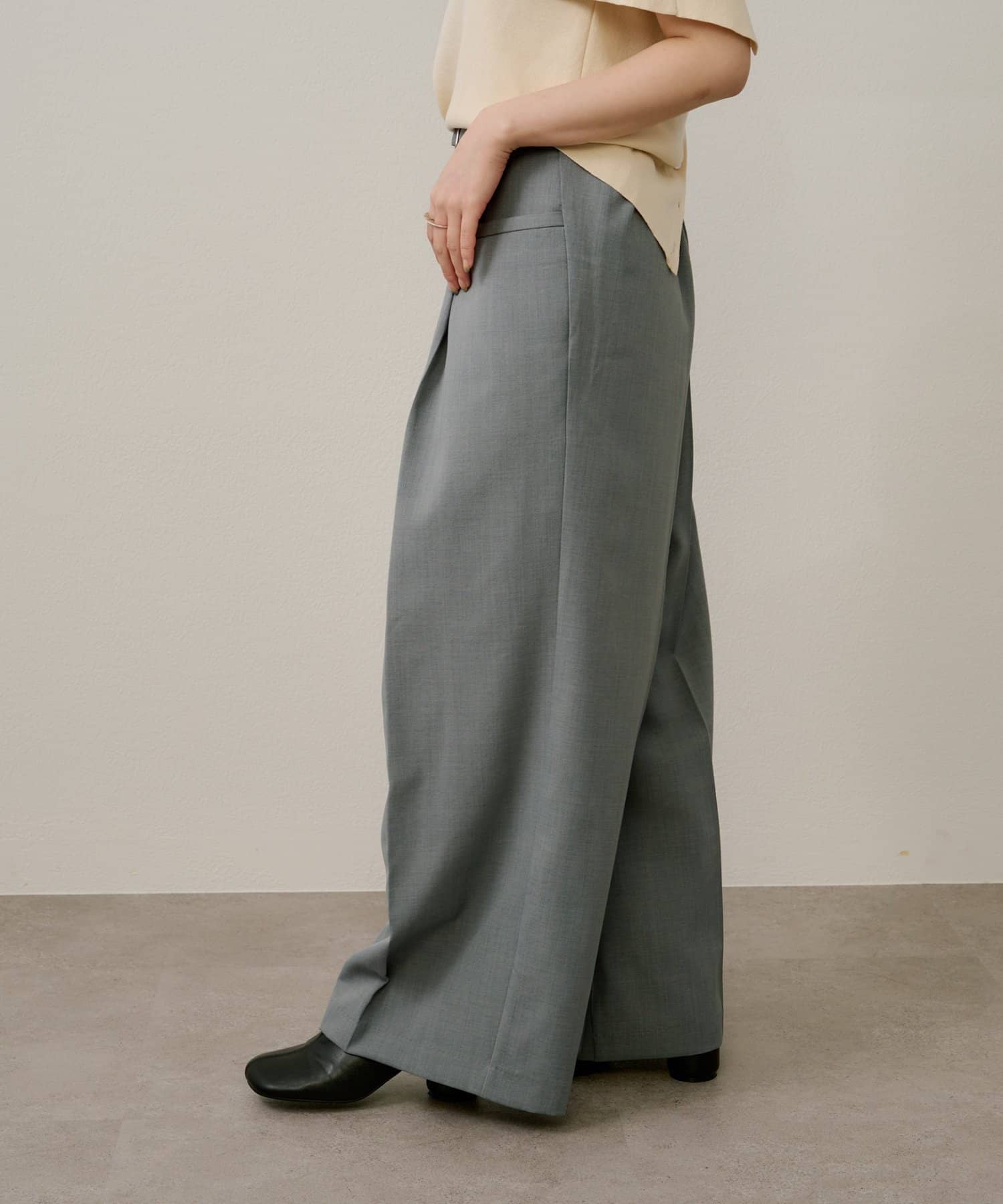 ・ツータックデザインとゆったりとしたシルエットが、太ももや腰回りをカバーしてくれるのもうれしいポイント◎