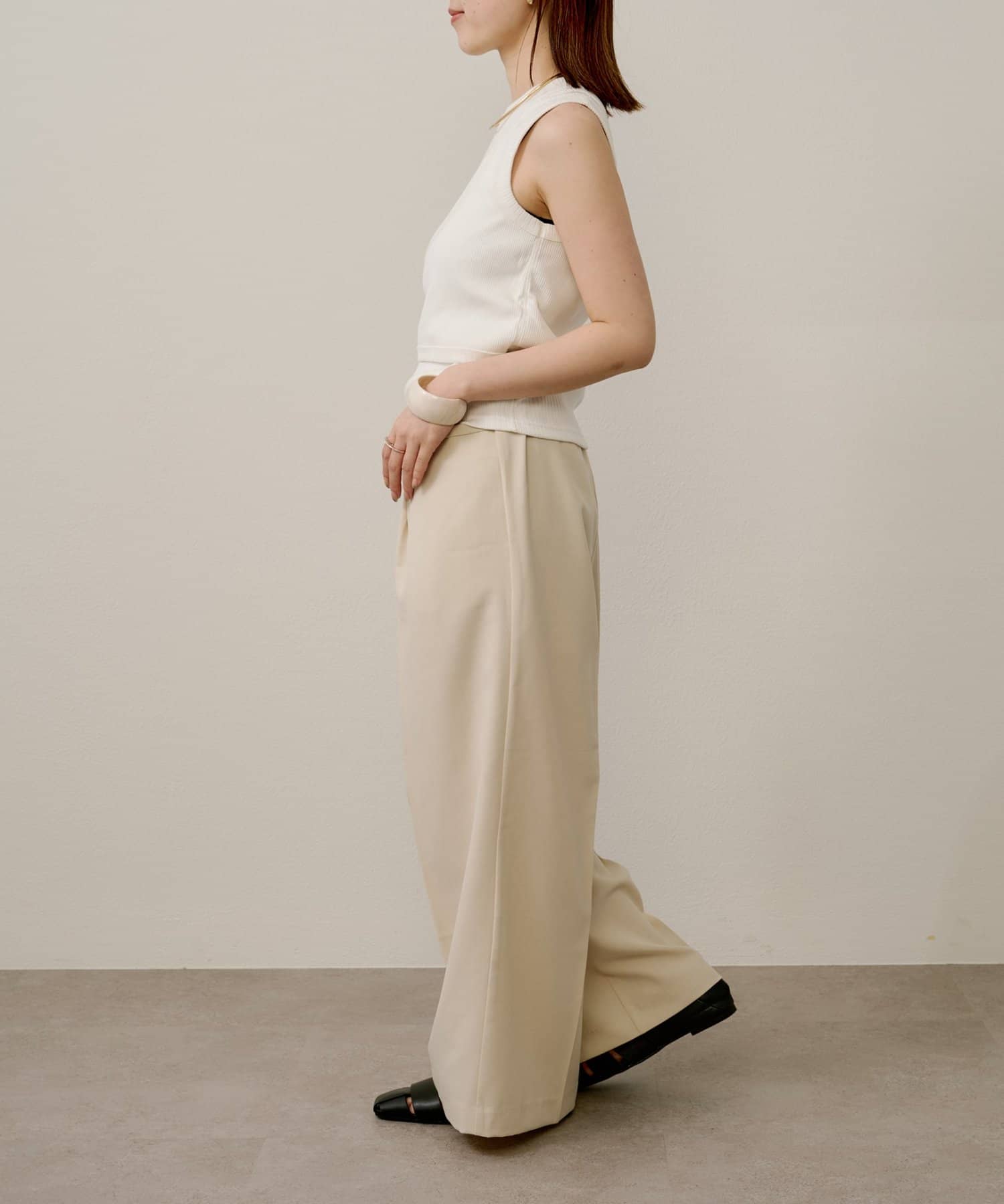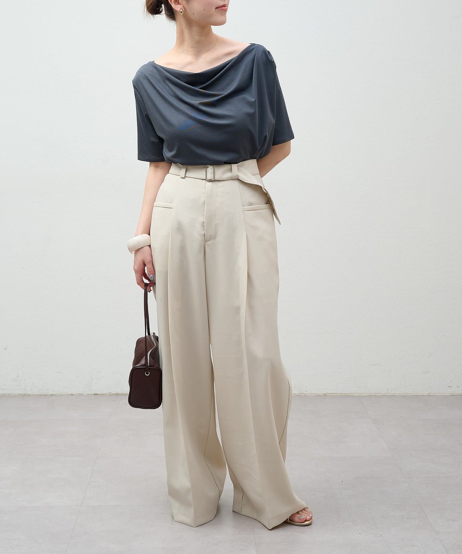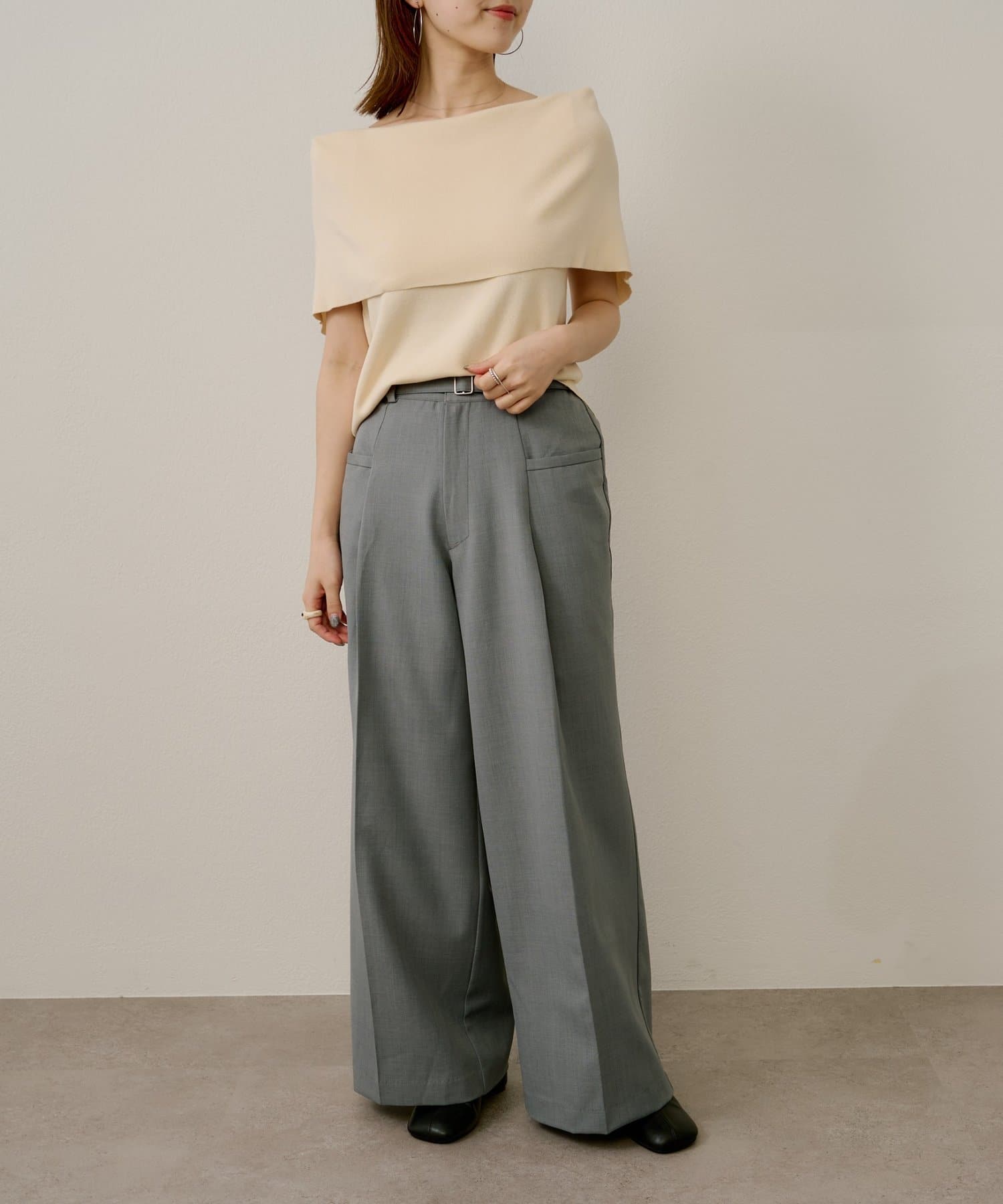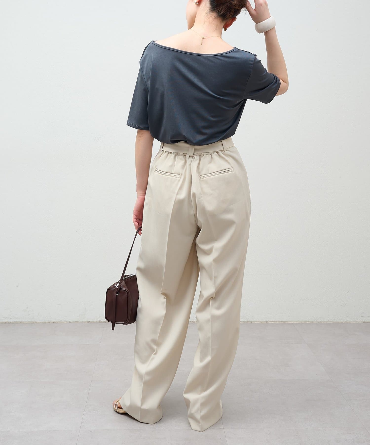 ・ツータックデザインとゆったりとしたシルエットが、太ももや腰回りをカバーしてくれるのもうれしいポイント◎
