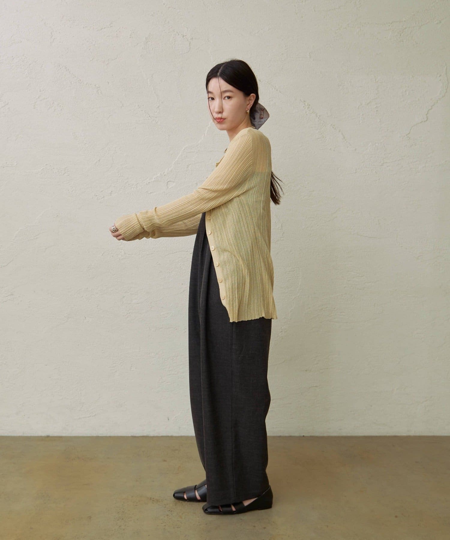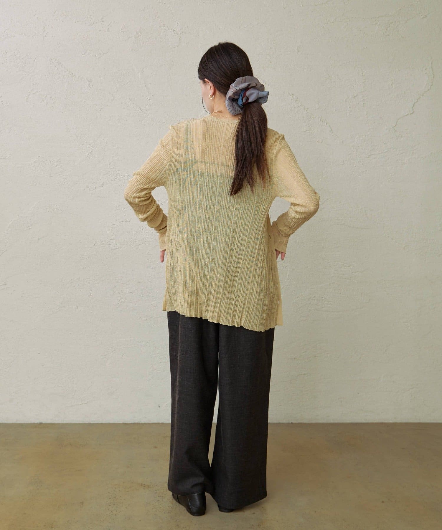 【チャコールグレー】シアーニットカーディガン
