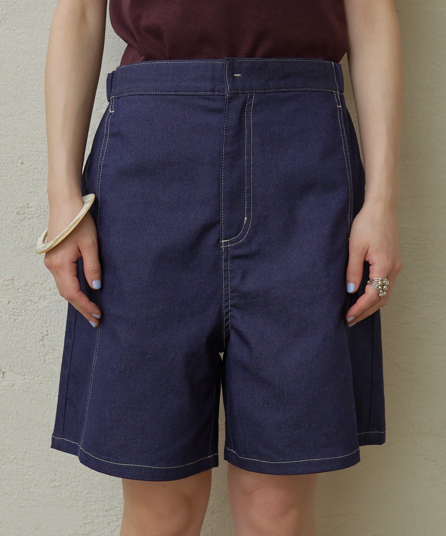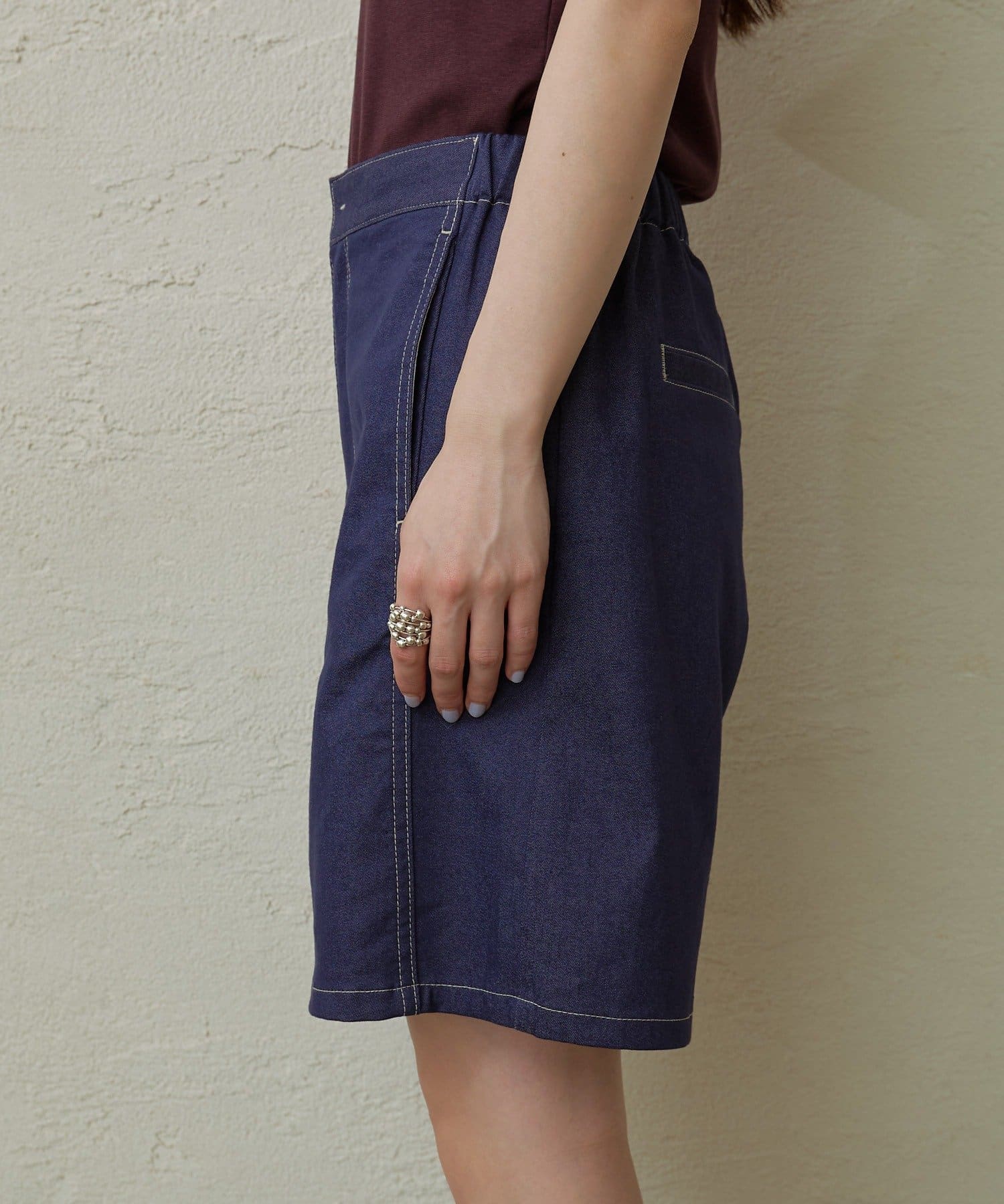 デニムライクな素材感が大人カジュアルなショートパンツ