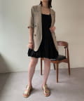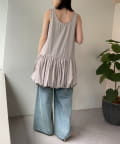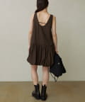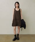 ・ミニワンピとしてだけでなく、パンツ合わせでカジュアルに着こなすこともできるので、スタイリングの幅が広い一枚です。