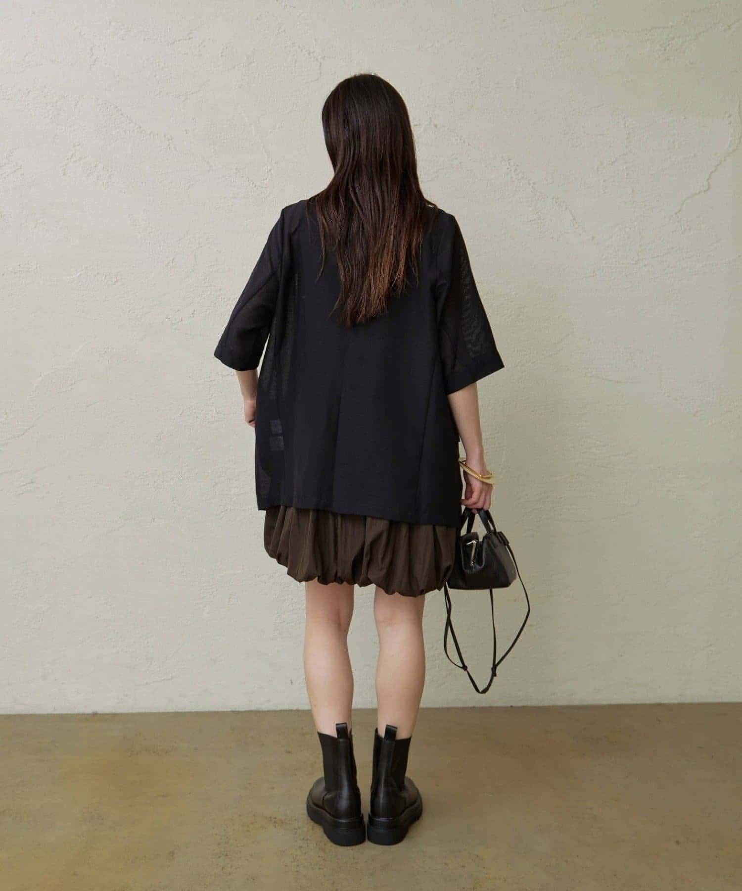 【ブラウン①】シアーメッシュ5分袖ジャケット