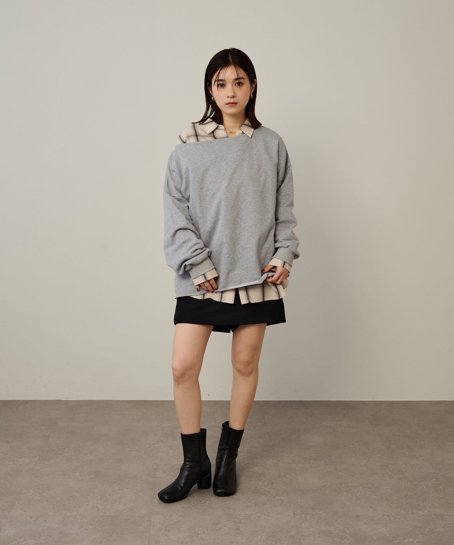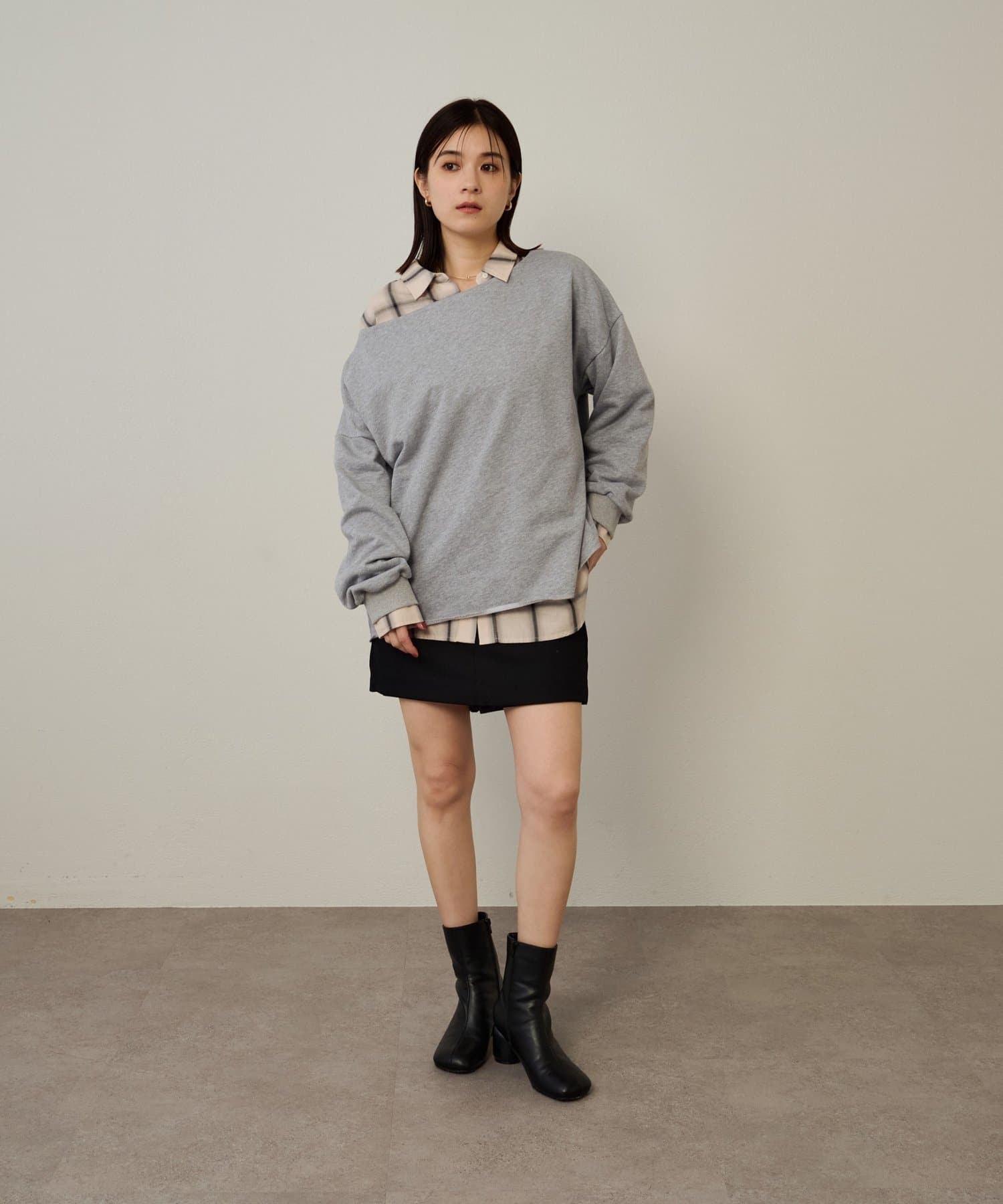 チョーカー付きオフショルスウェット