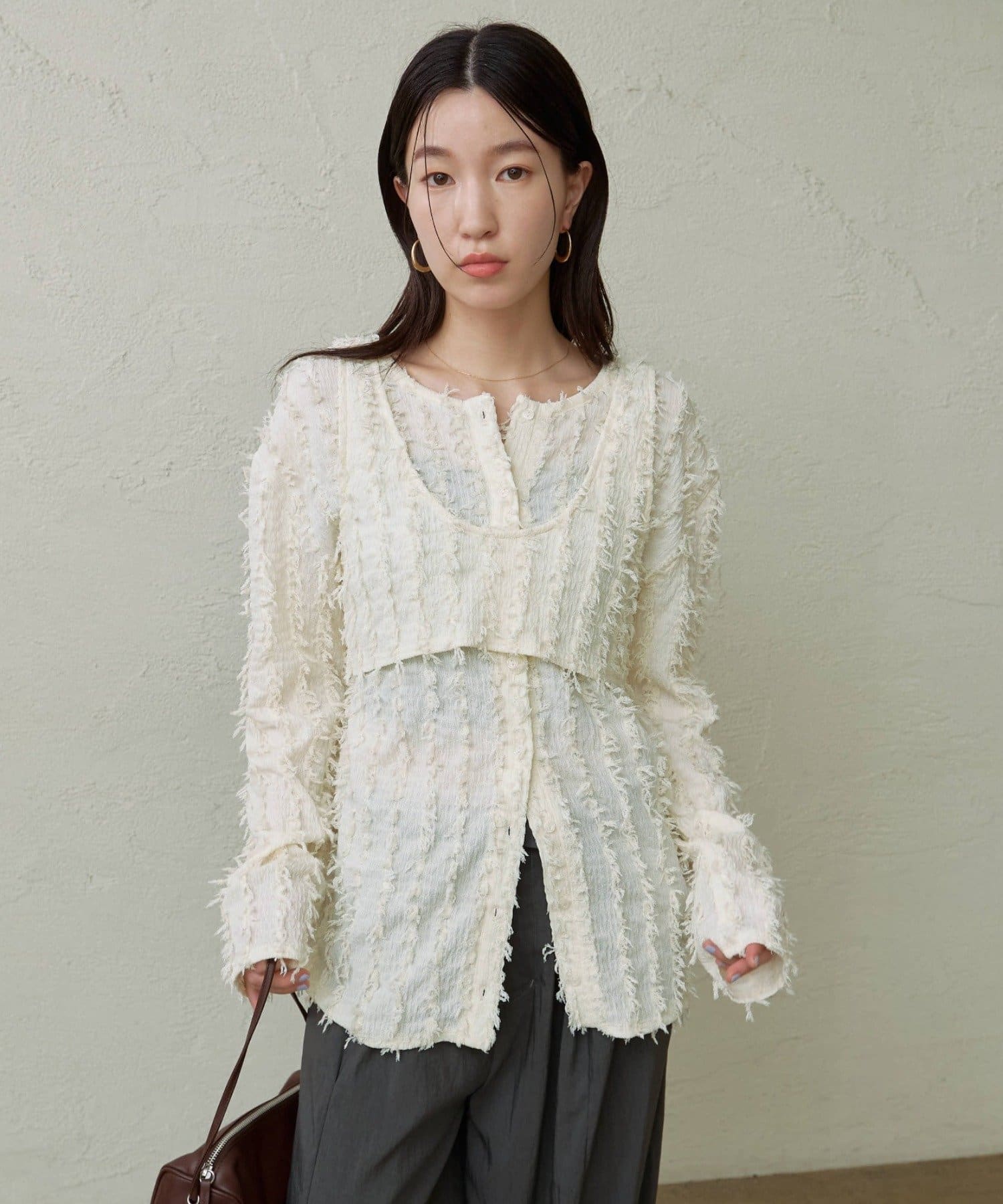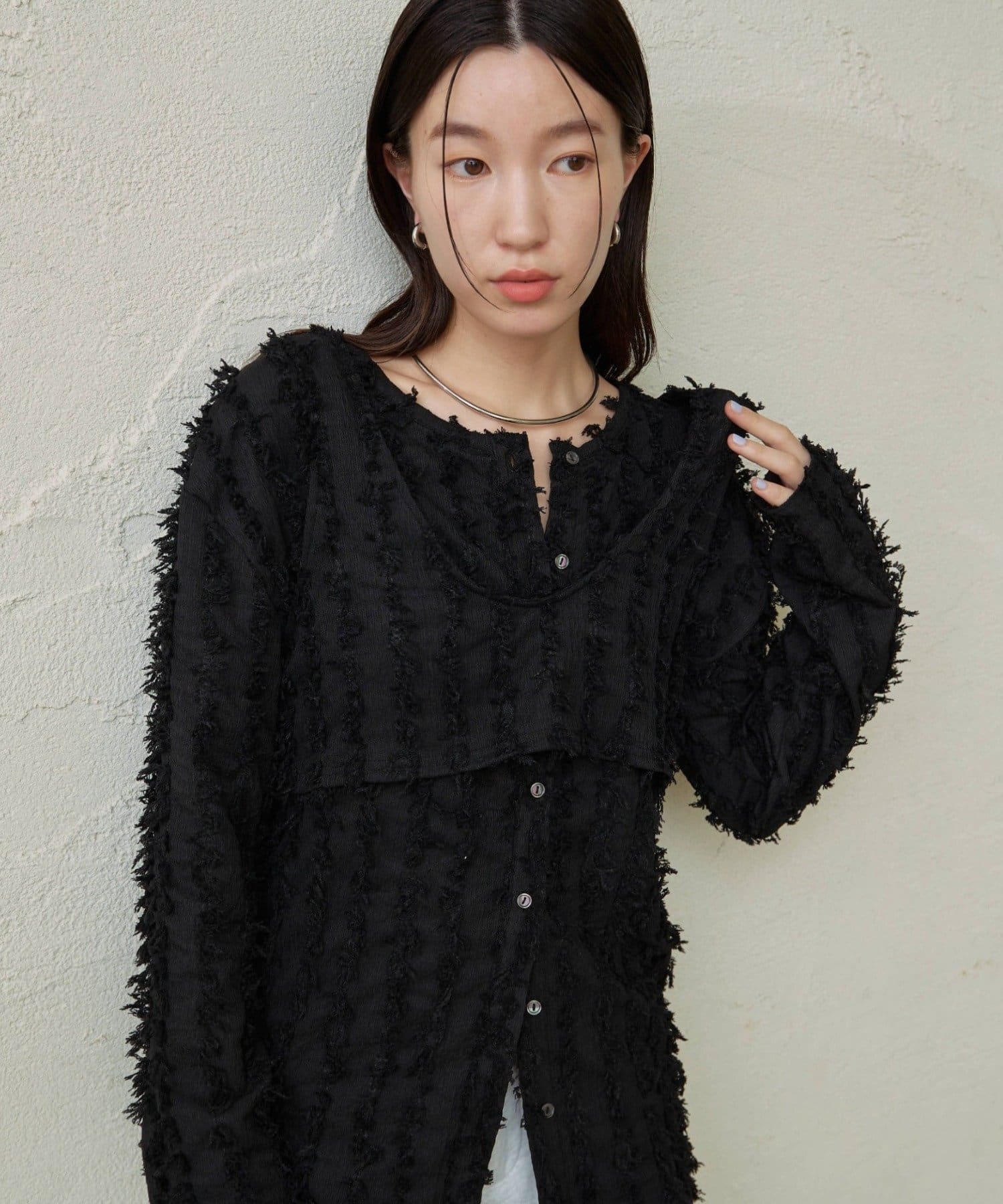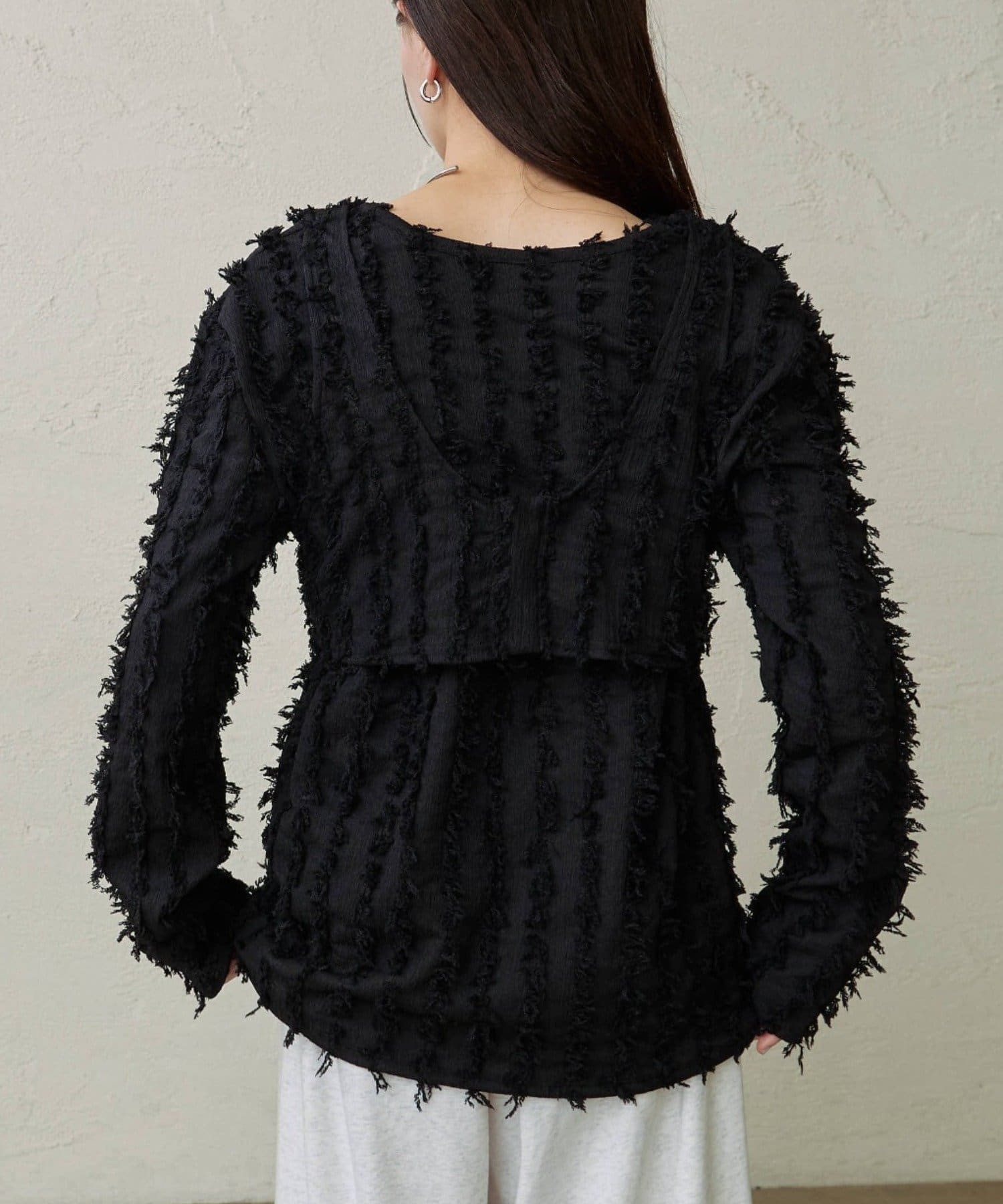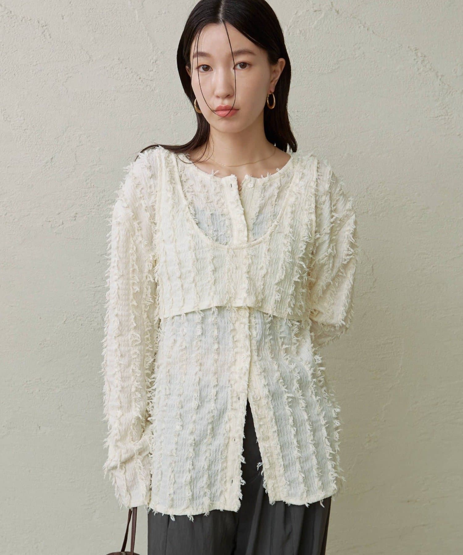 ・フリンジ素材のカーディガンにビスチェがセットになったアイテム。