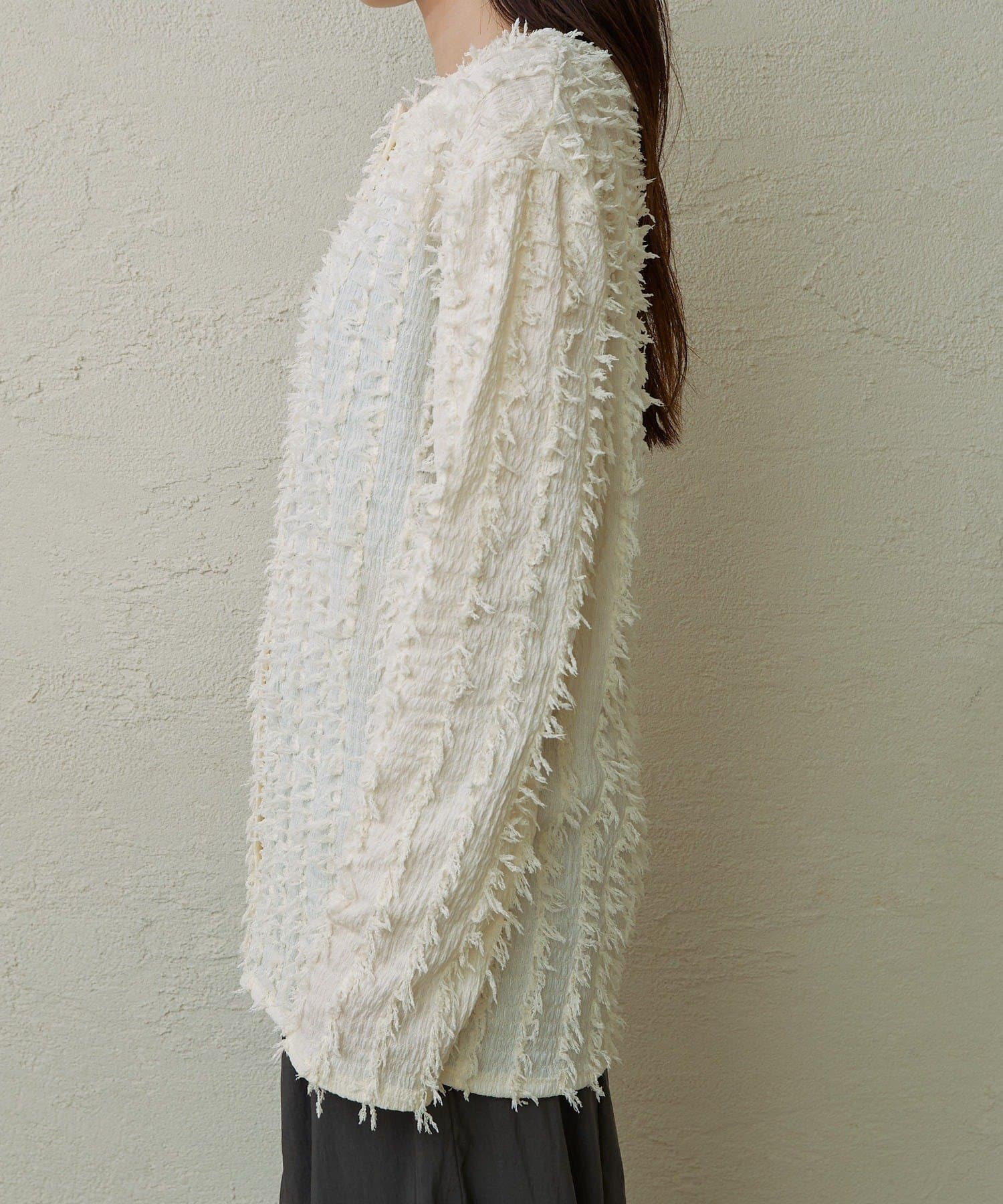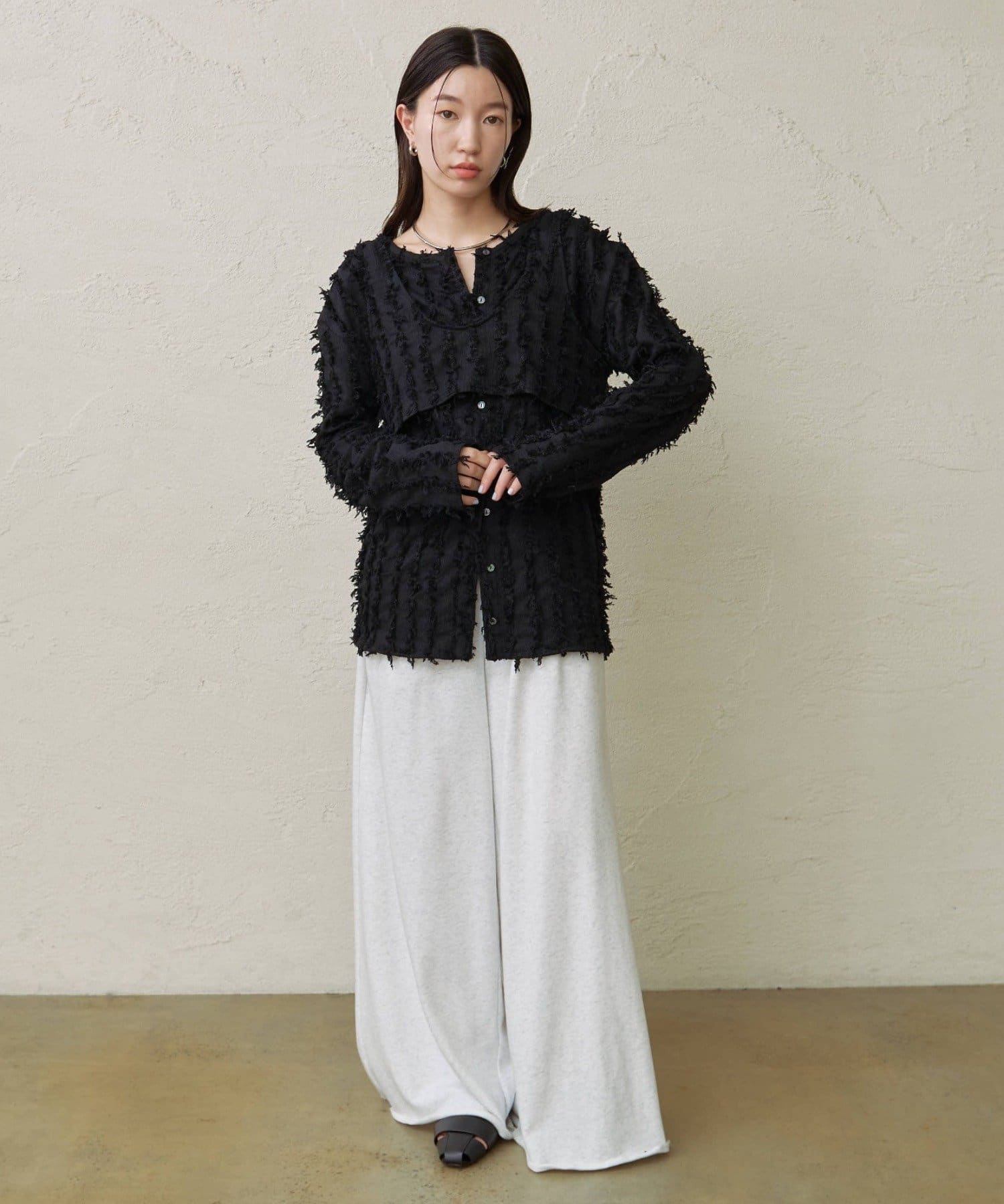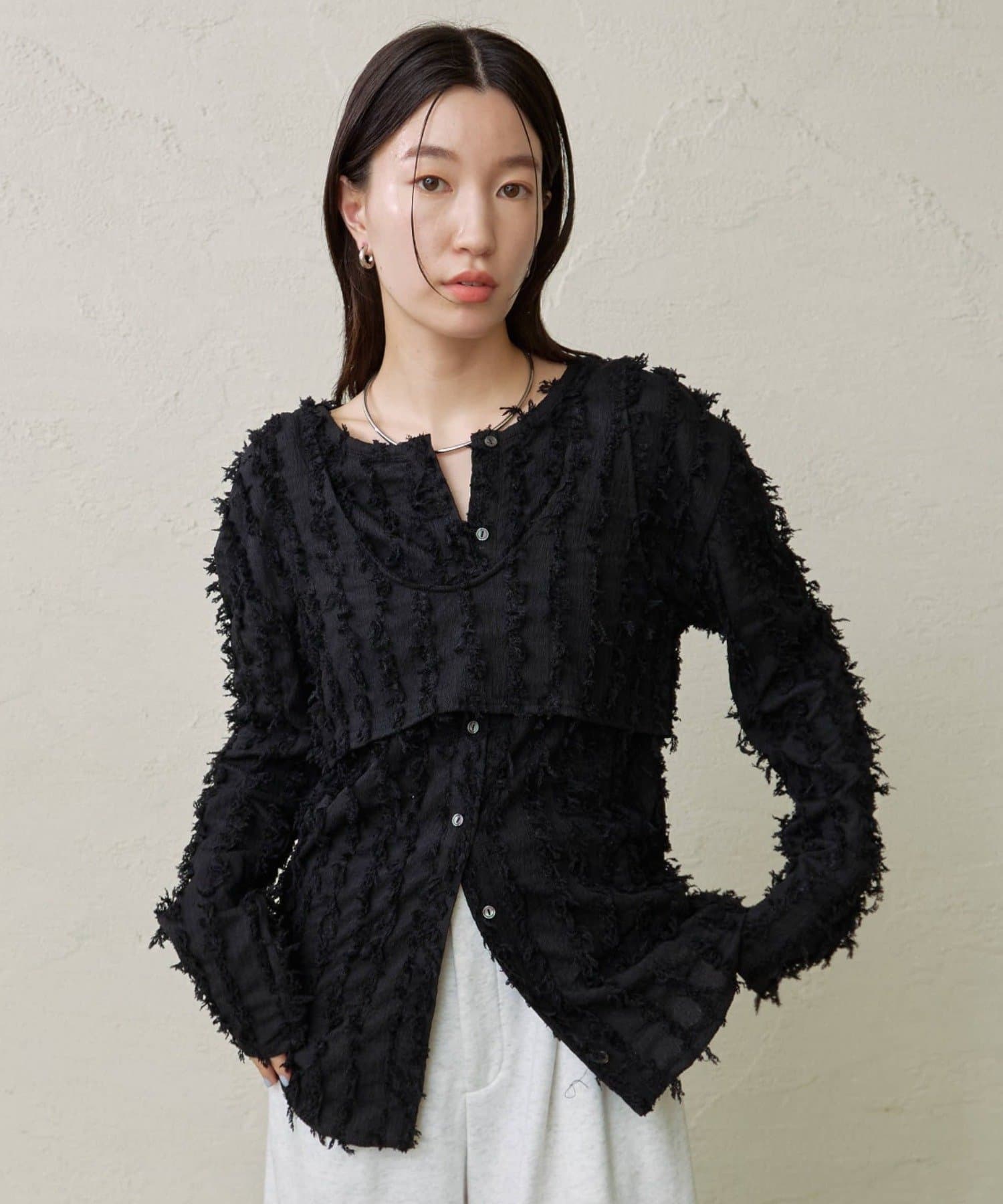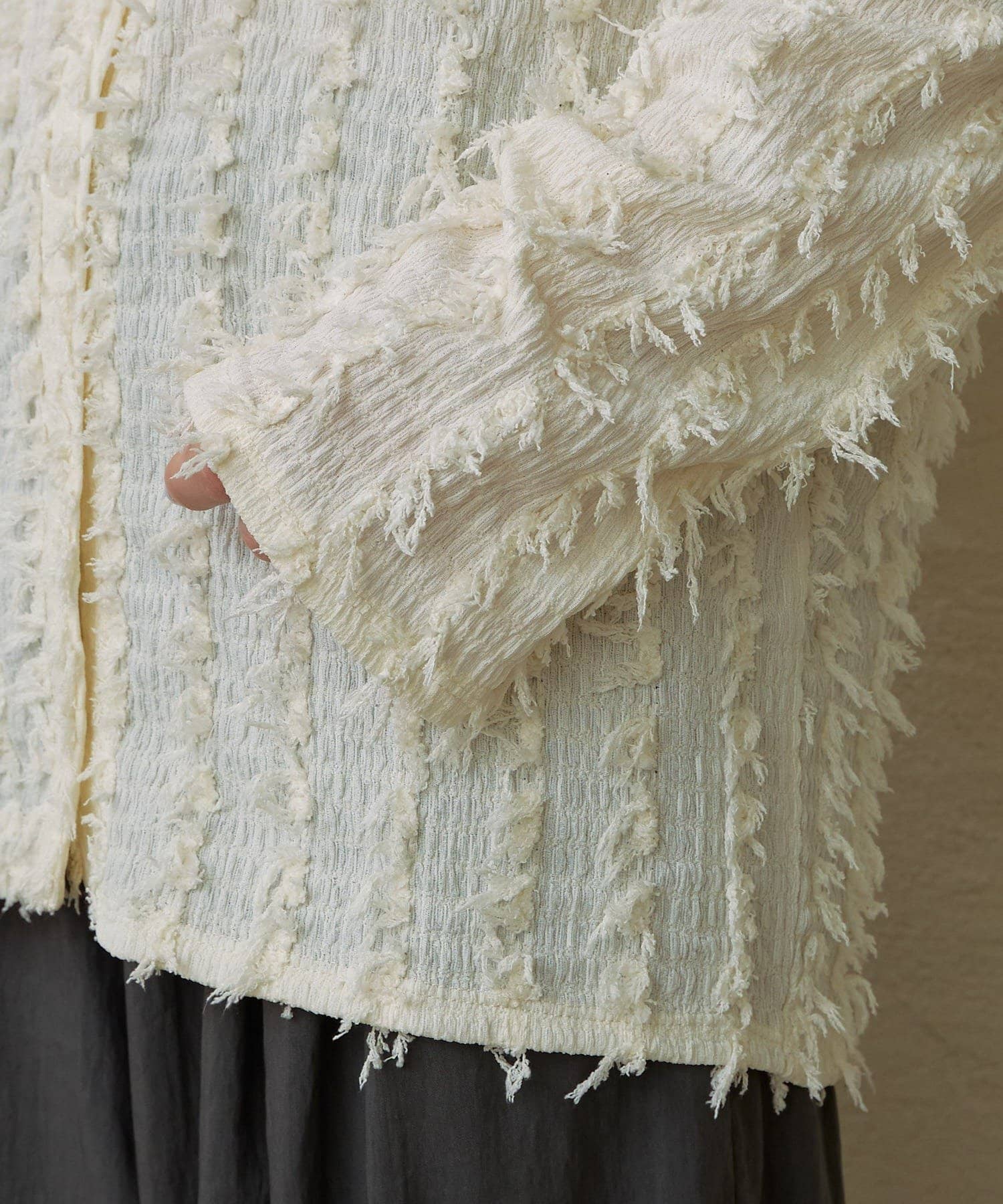 ・フリンジ素材のカーディガンにビスチェがセットになったアイテム。
