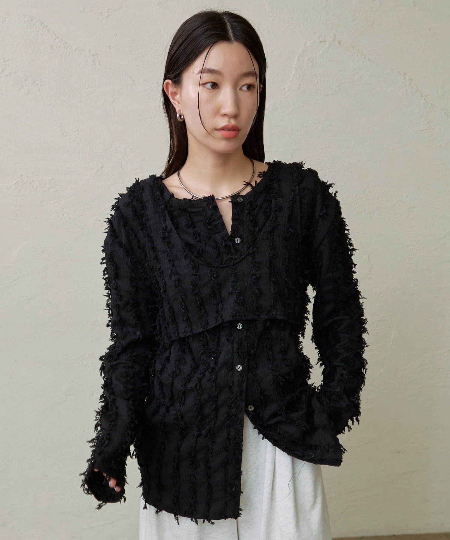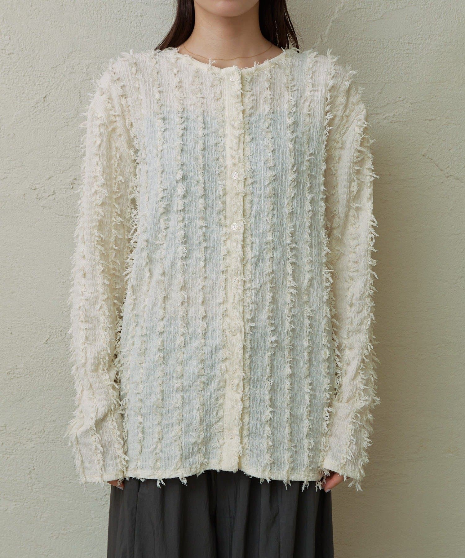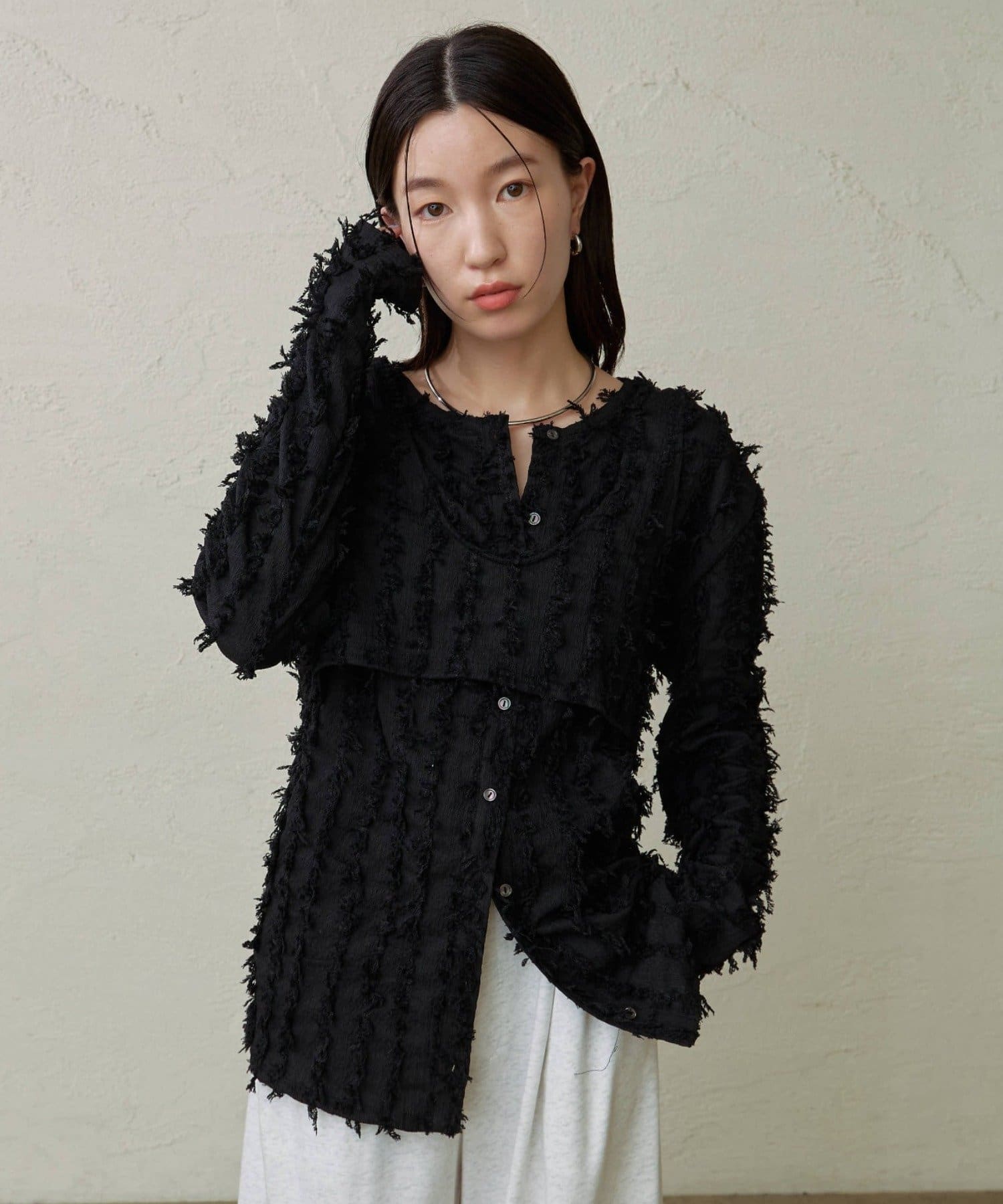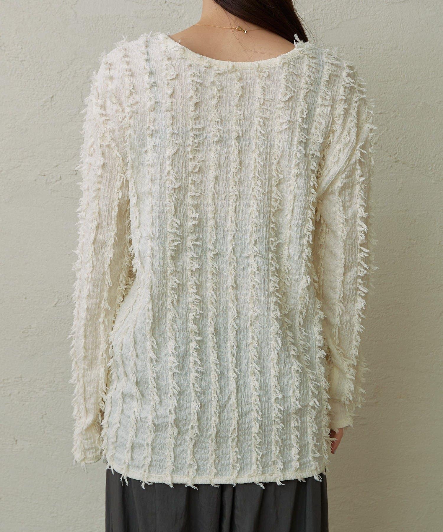・フリンジ素材のカーディガンにビスチェがセットになったアイテム。