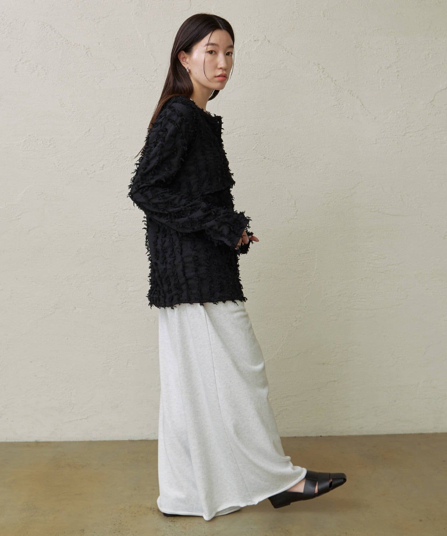 ・フリンジ素材の華やかさがスタイリングの主役になります◎