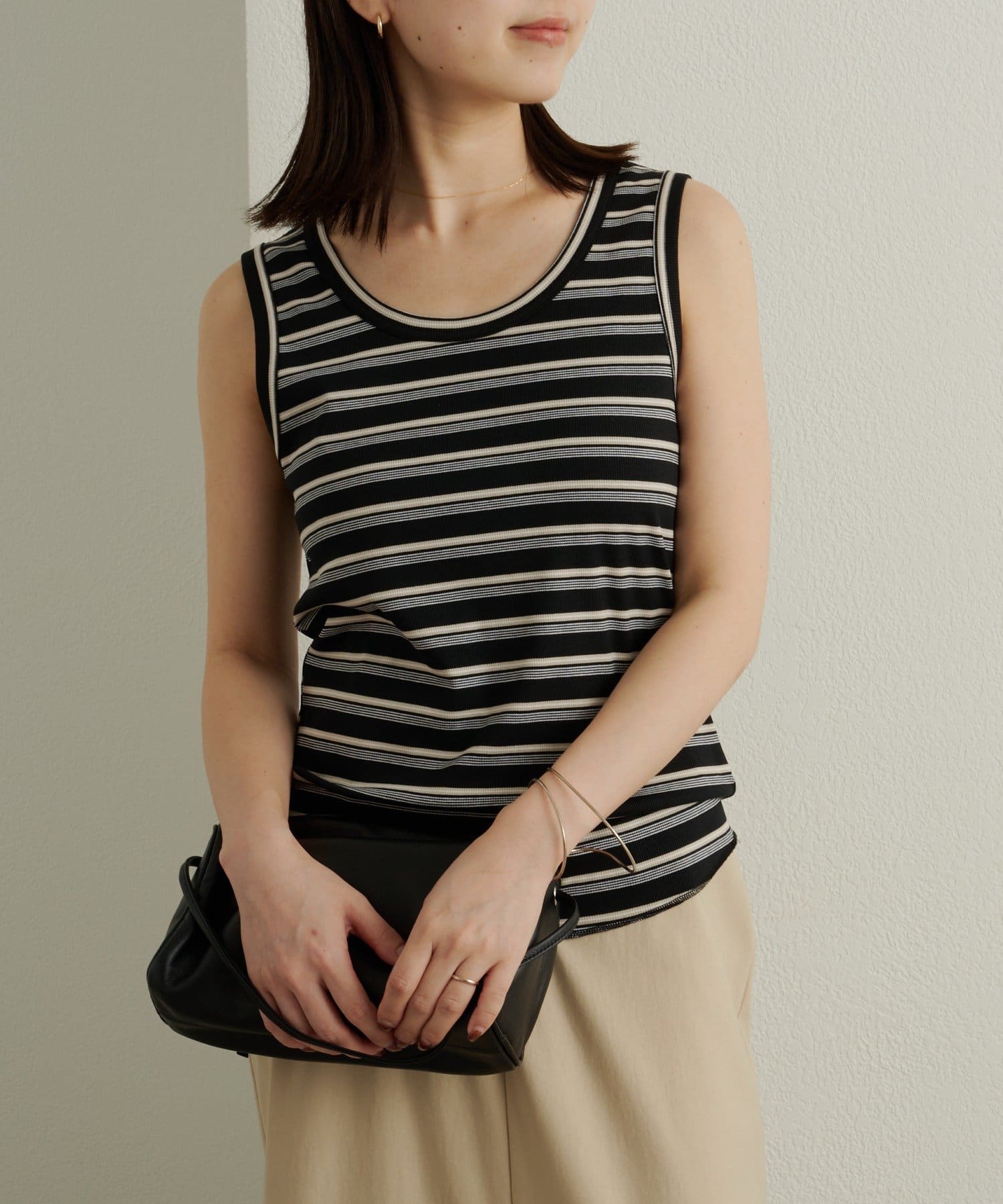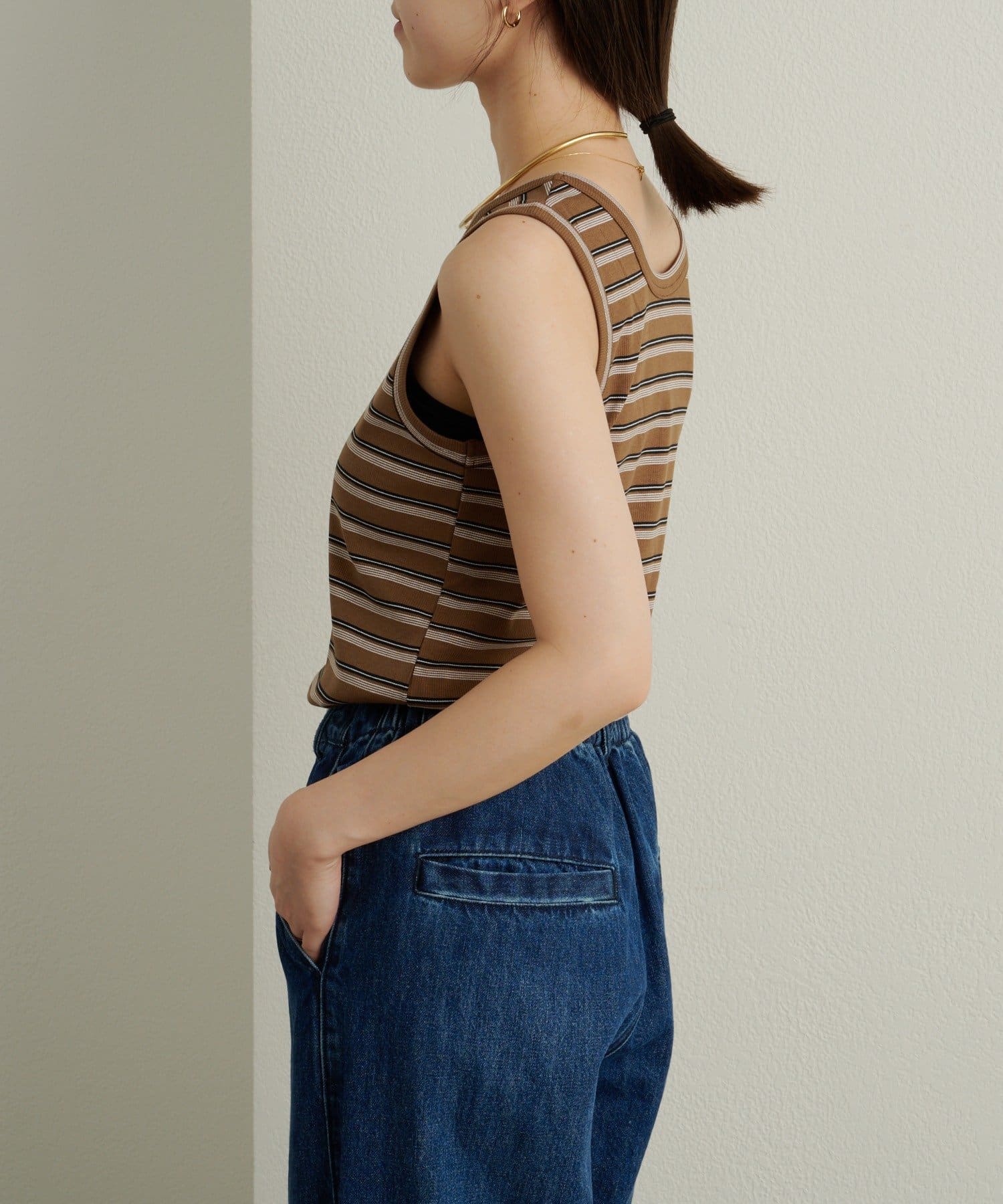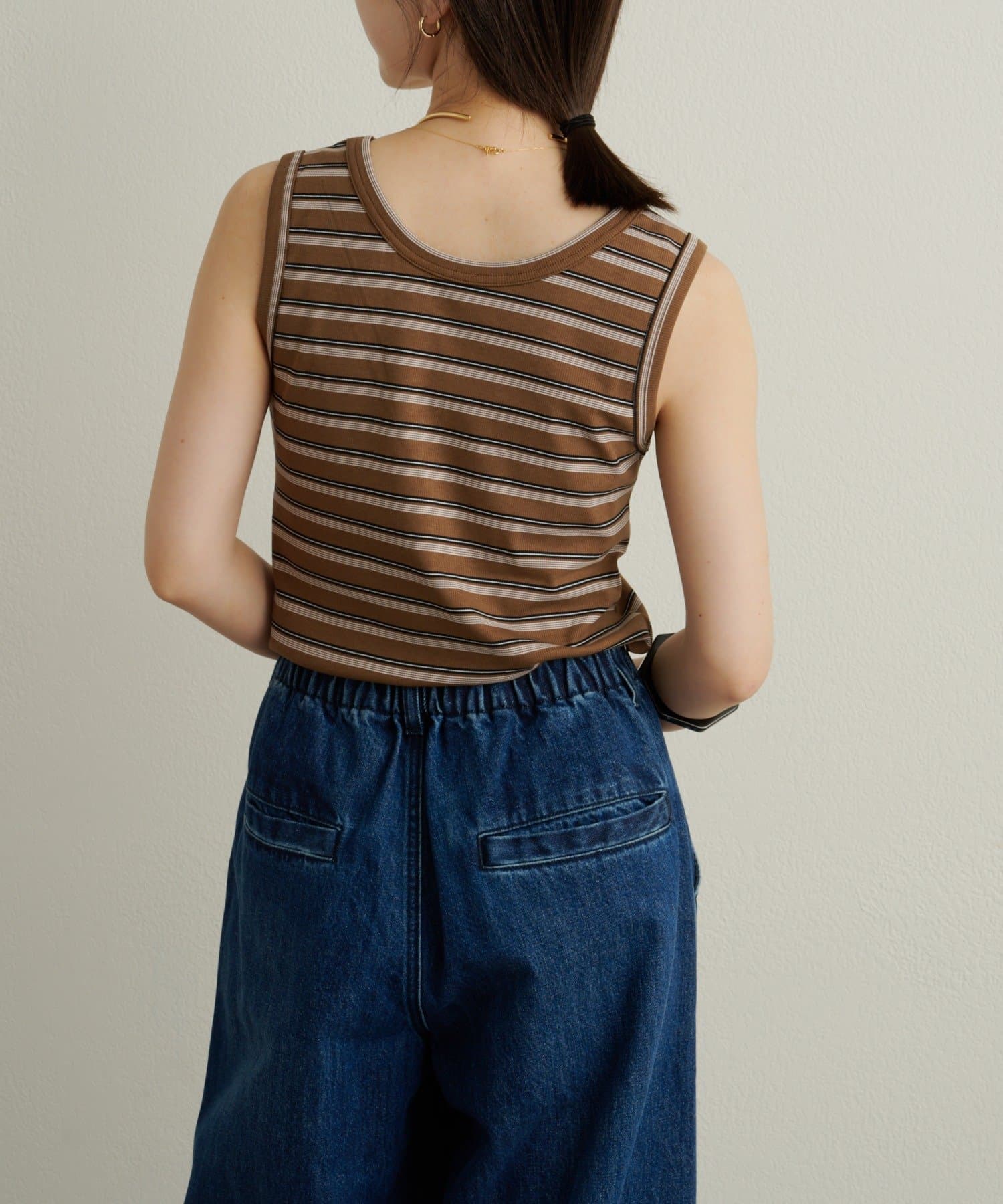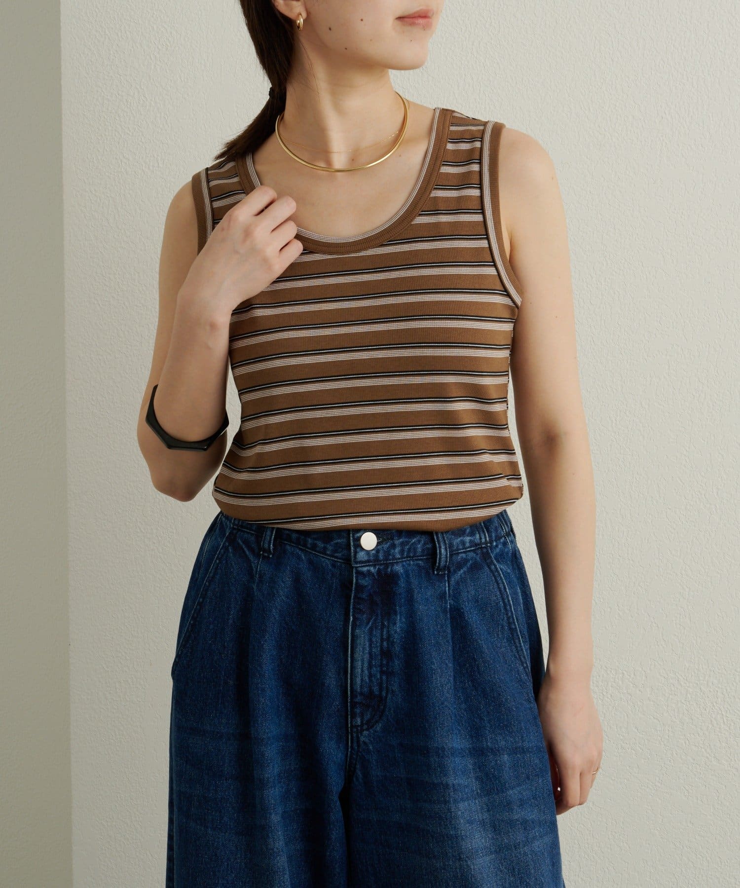 ・一枚でヘルシーな着こなしが叶う、ボーダーが目を惹くタンクトップ
