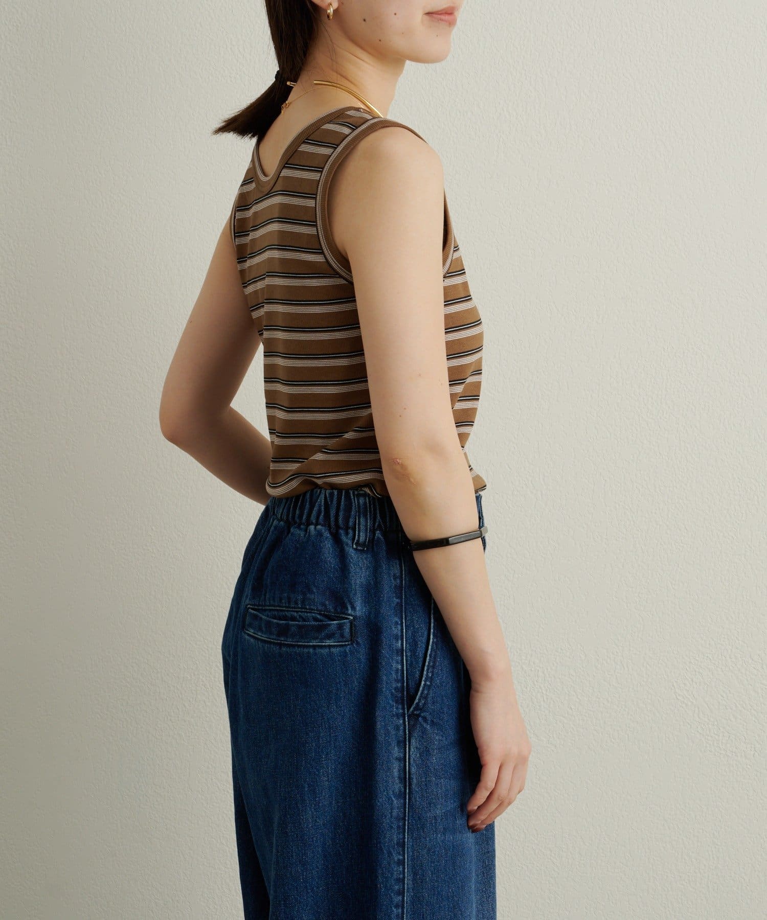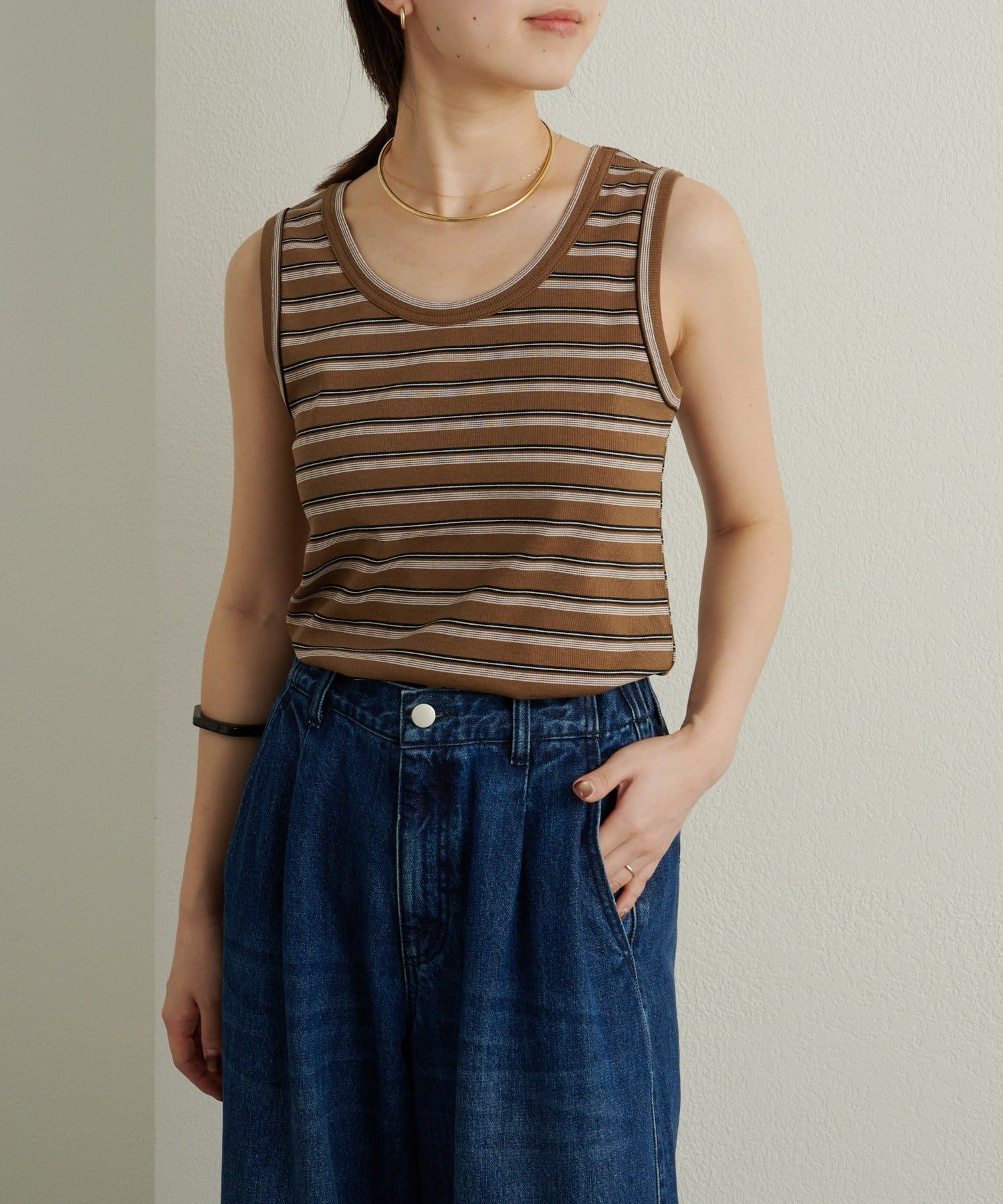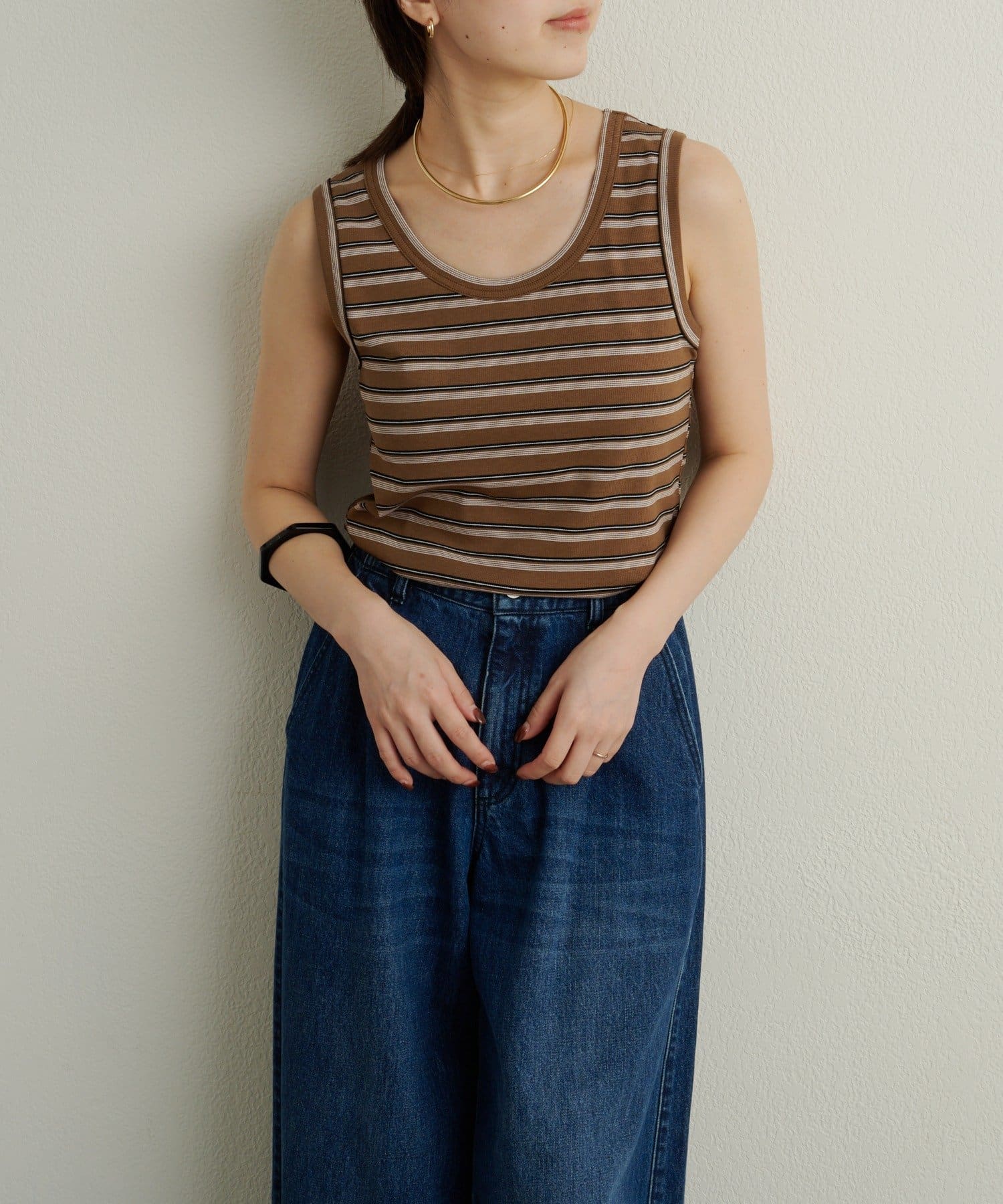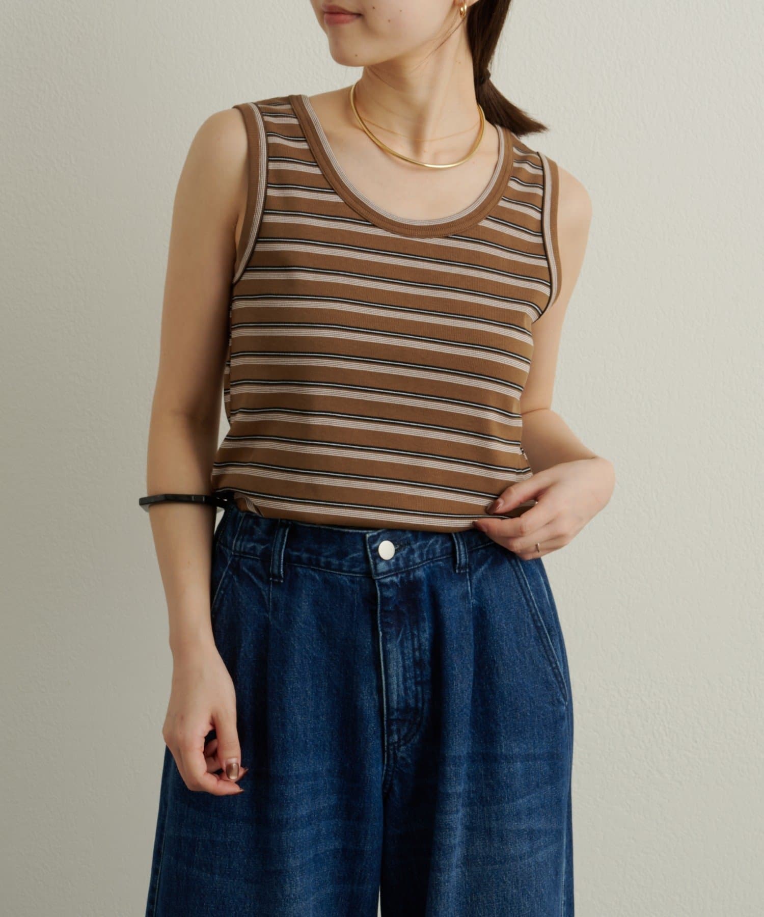 ・一枚でヘルシーな着こなしが叶う、ボーダーが目を惹くタンクトップ