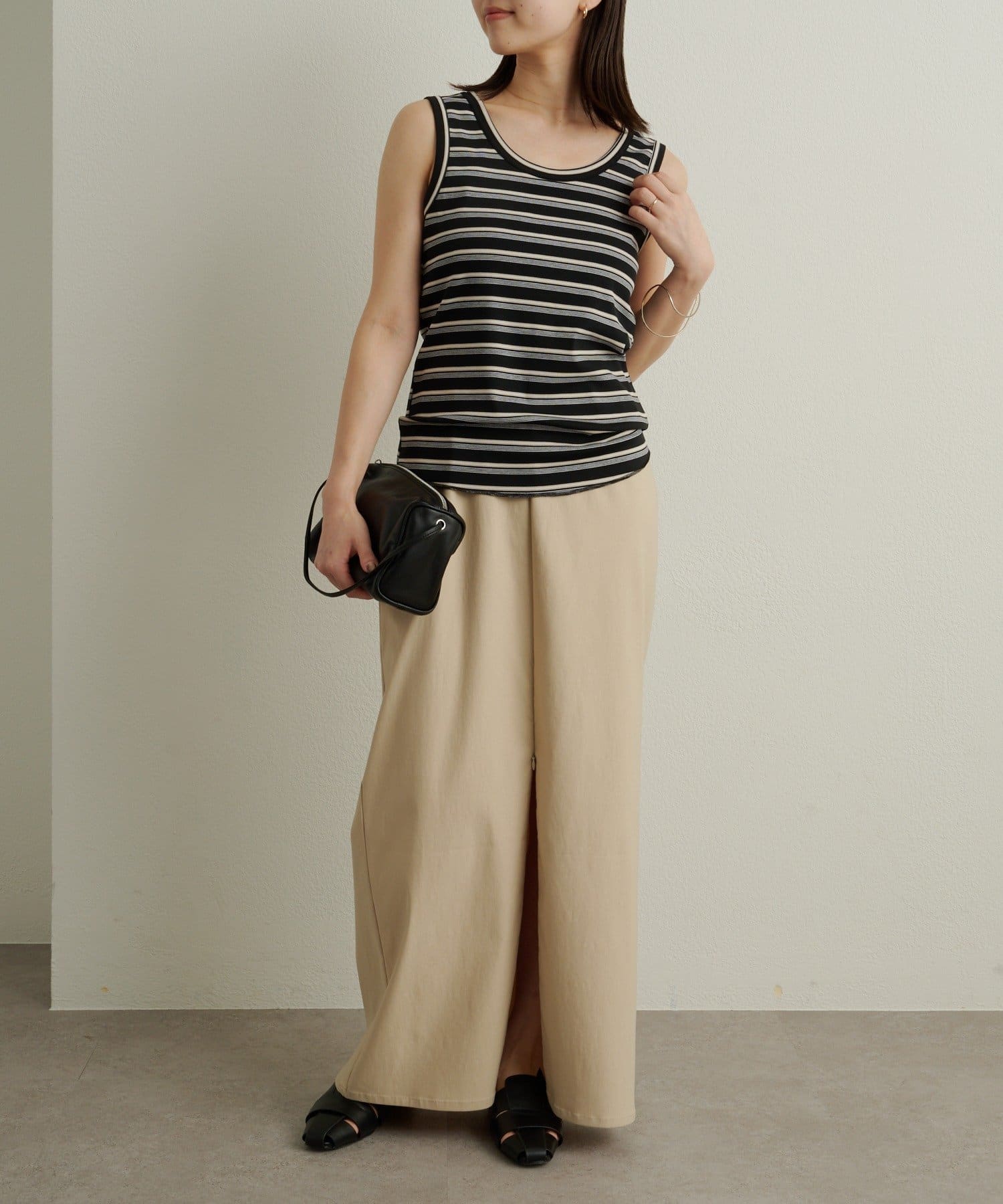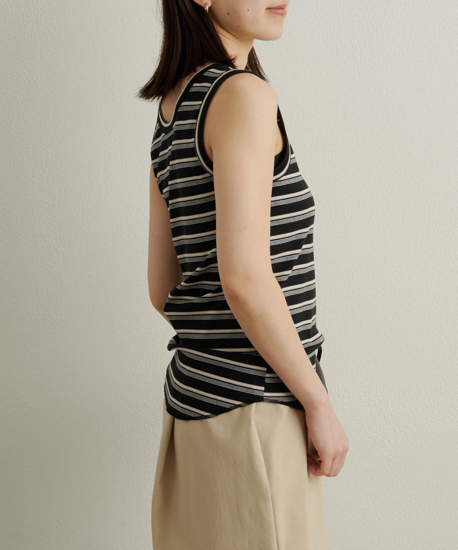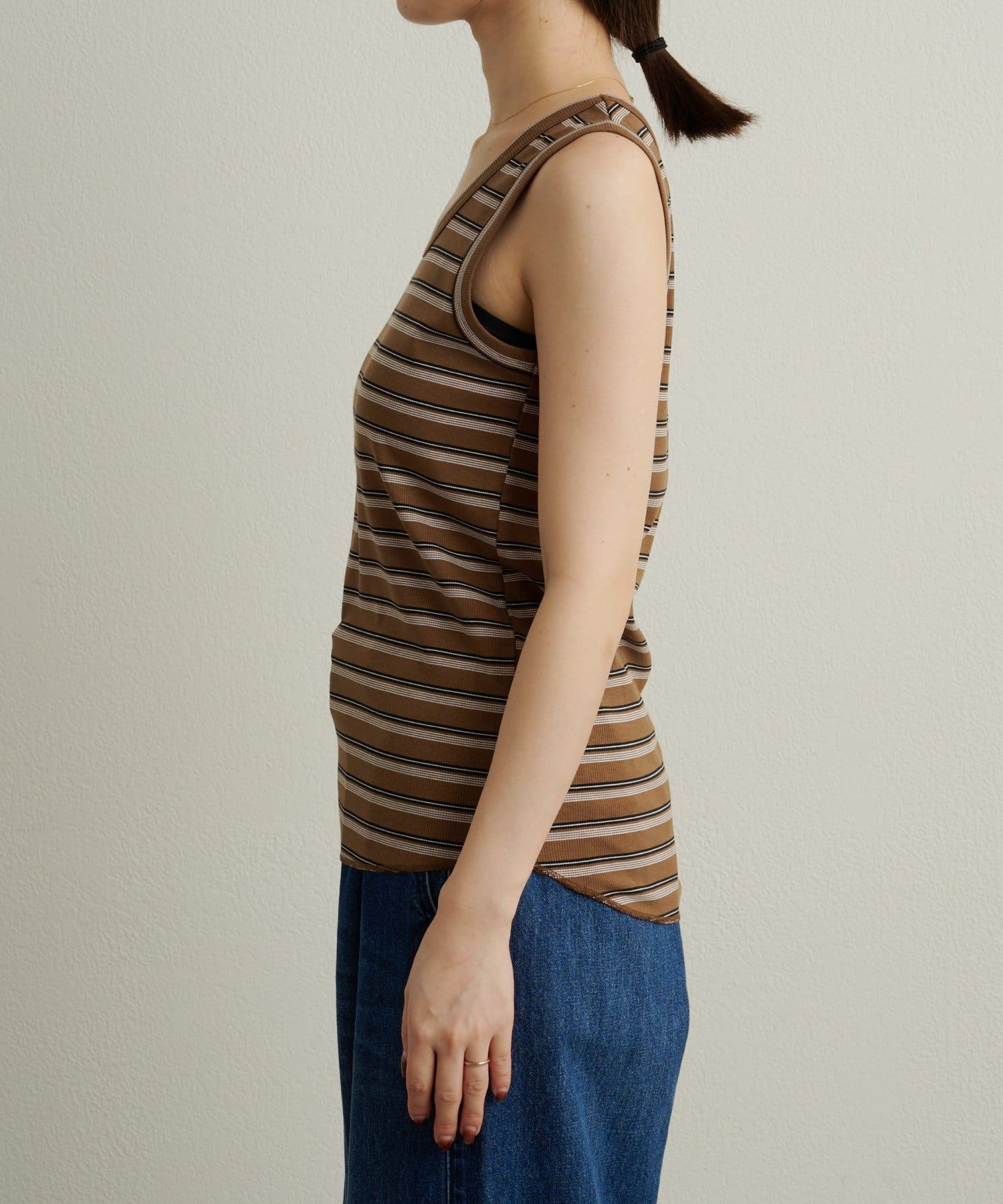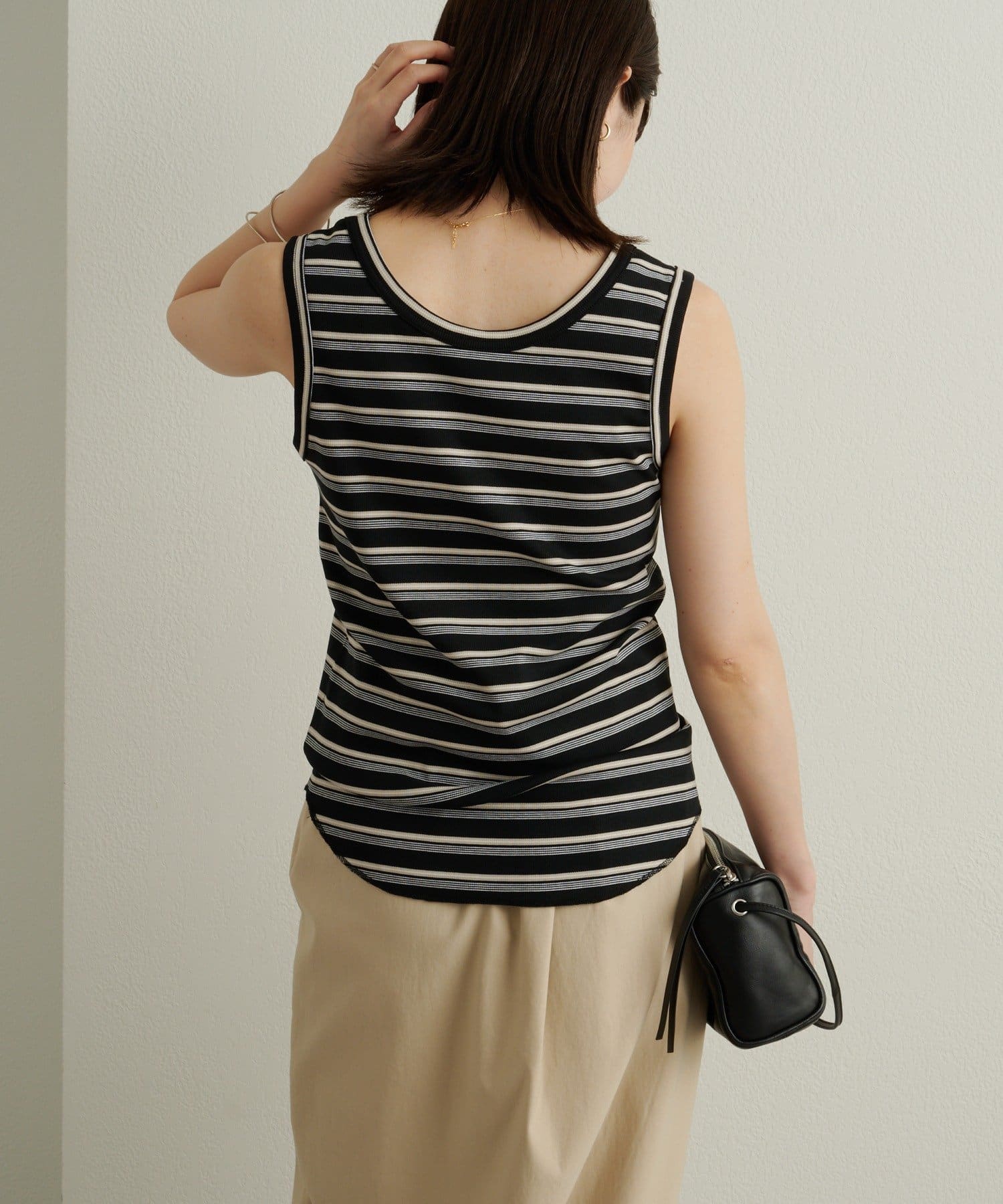 ・一枚でヘルシーな着こなしが叶う、ボーダーが目を惹くタンクトップ