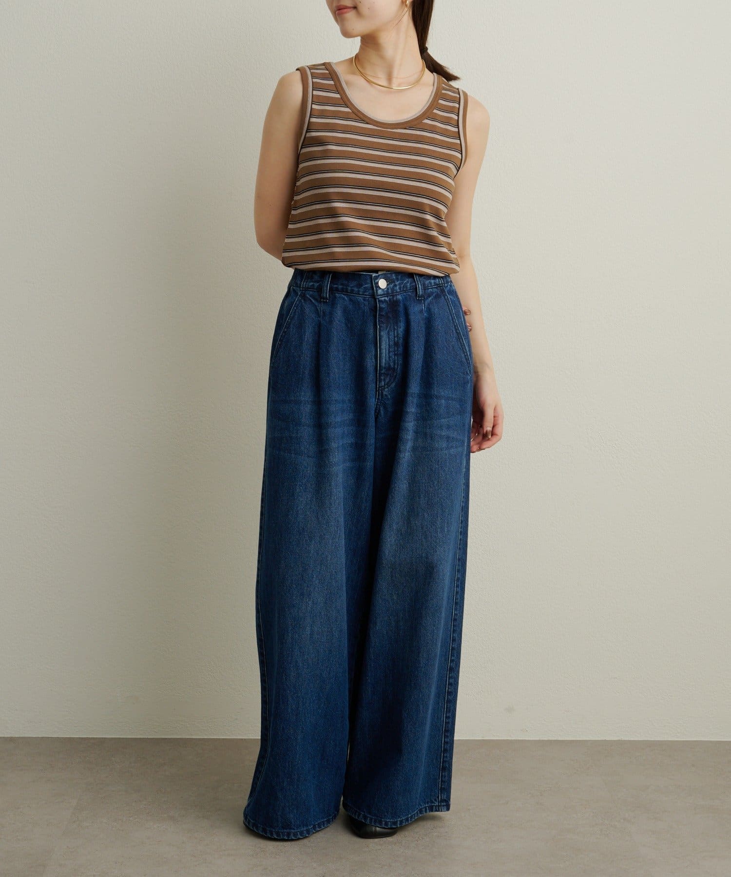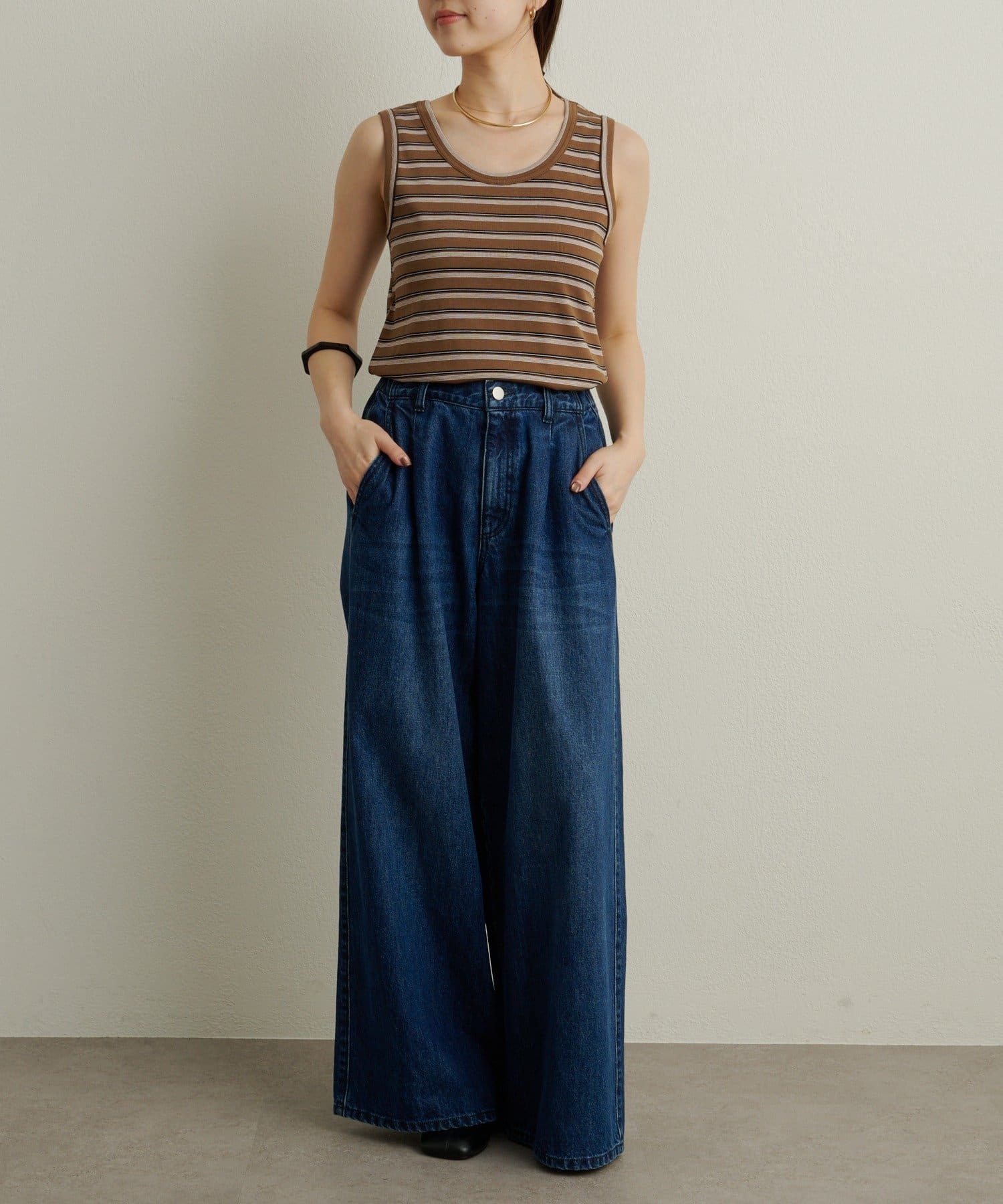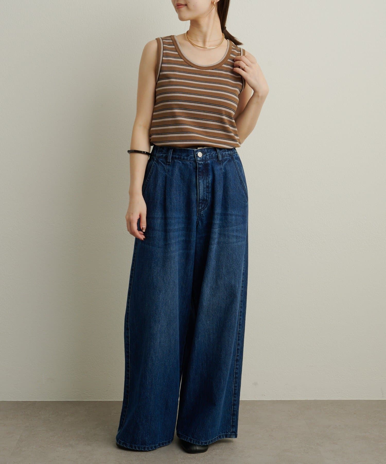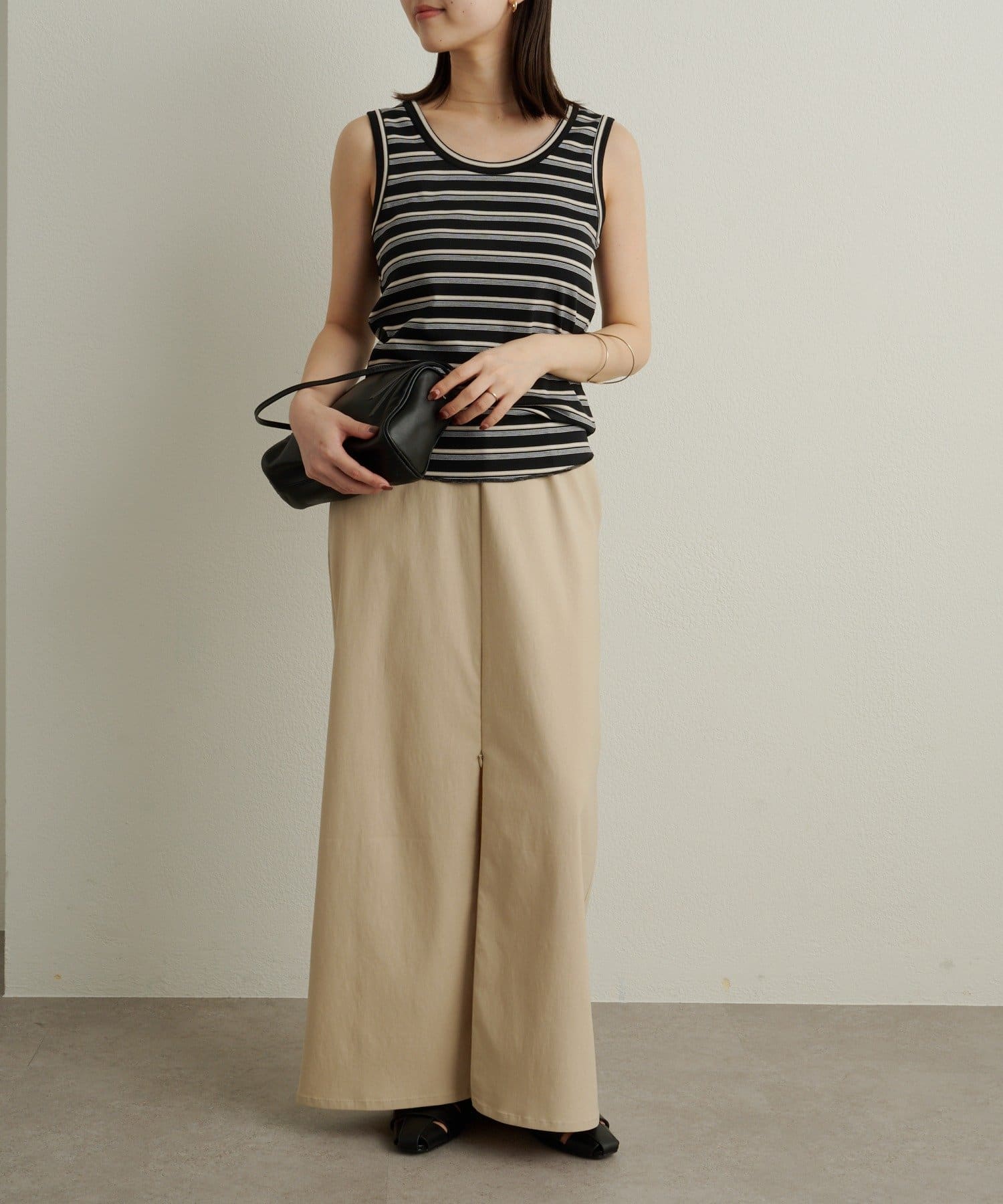 ・一枚でヘルシーな着こなしが叶う、ボーダーが目を惹くタンクトップ