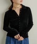 【25AWトレンド素材◎】シアーベロア襟付きカーディガン