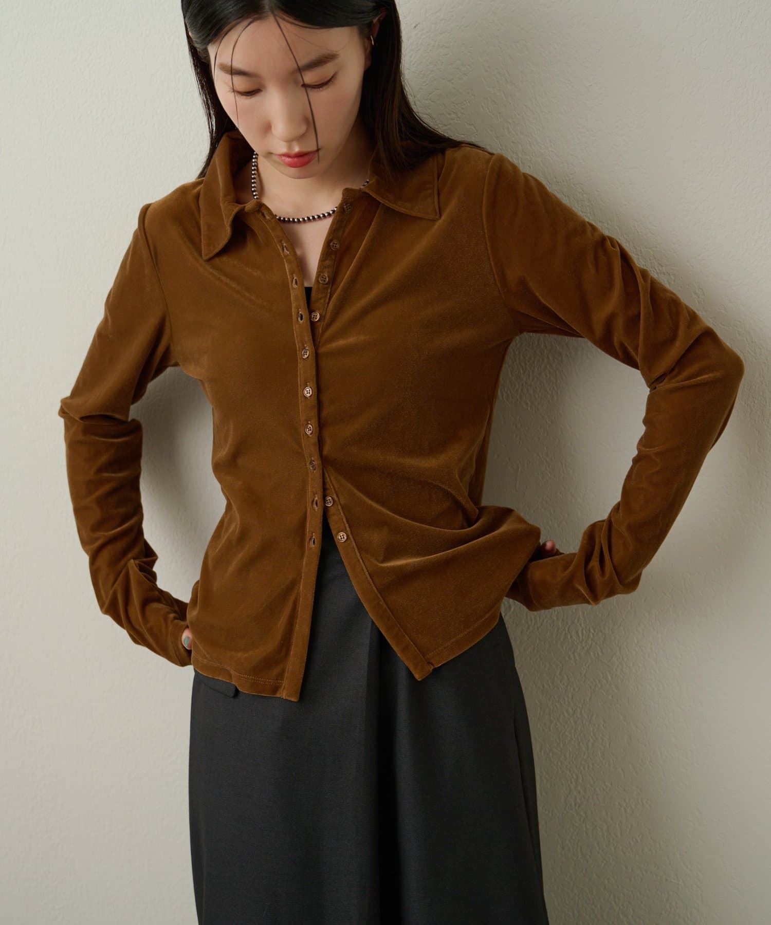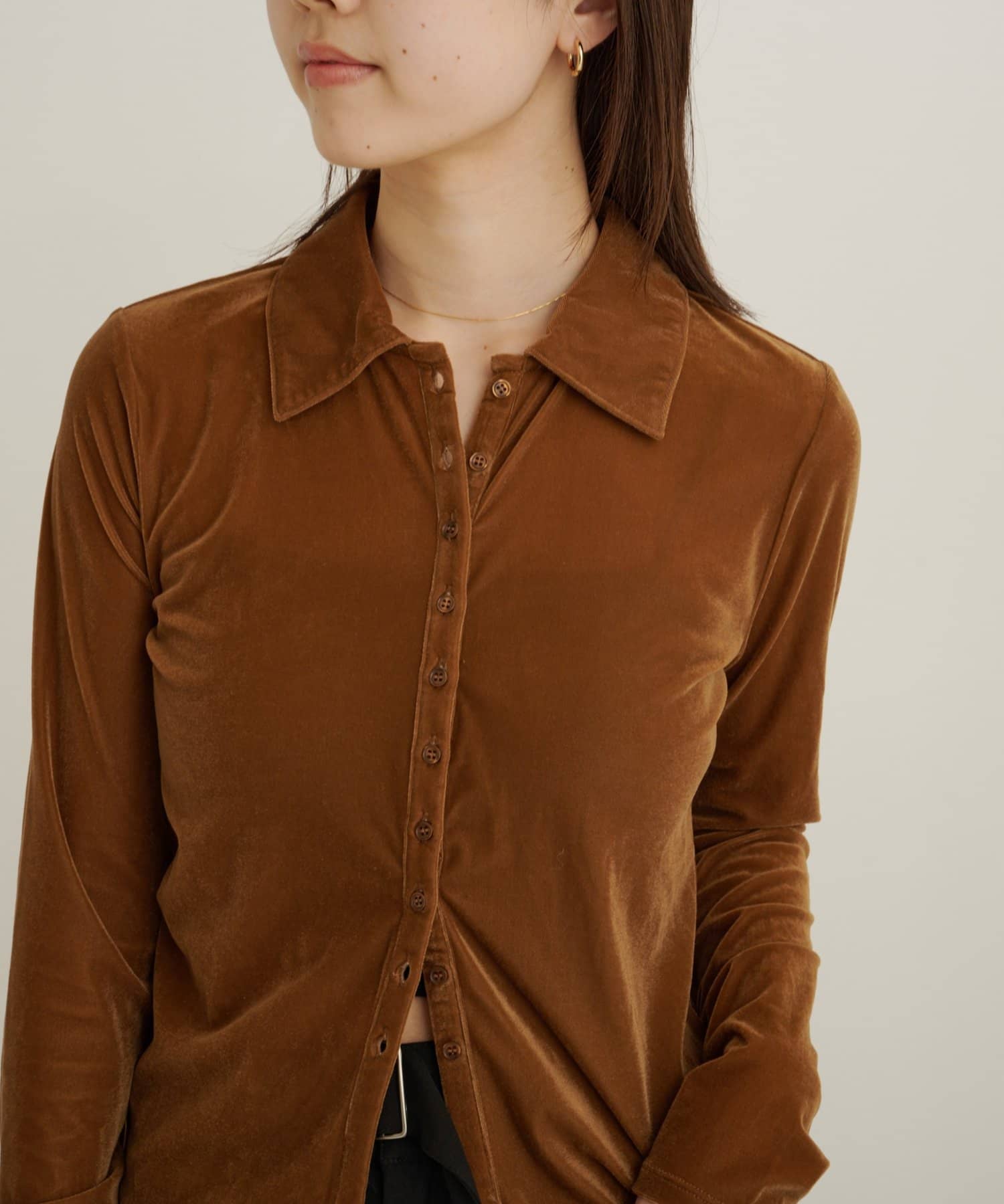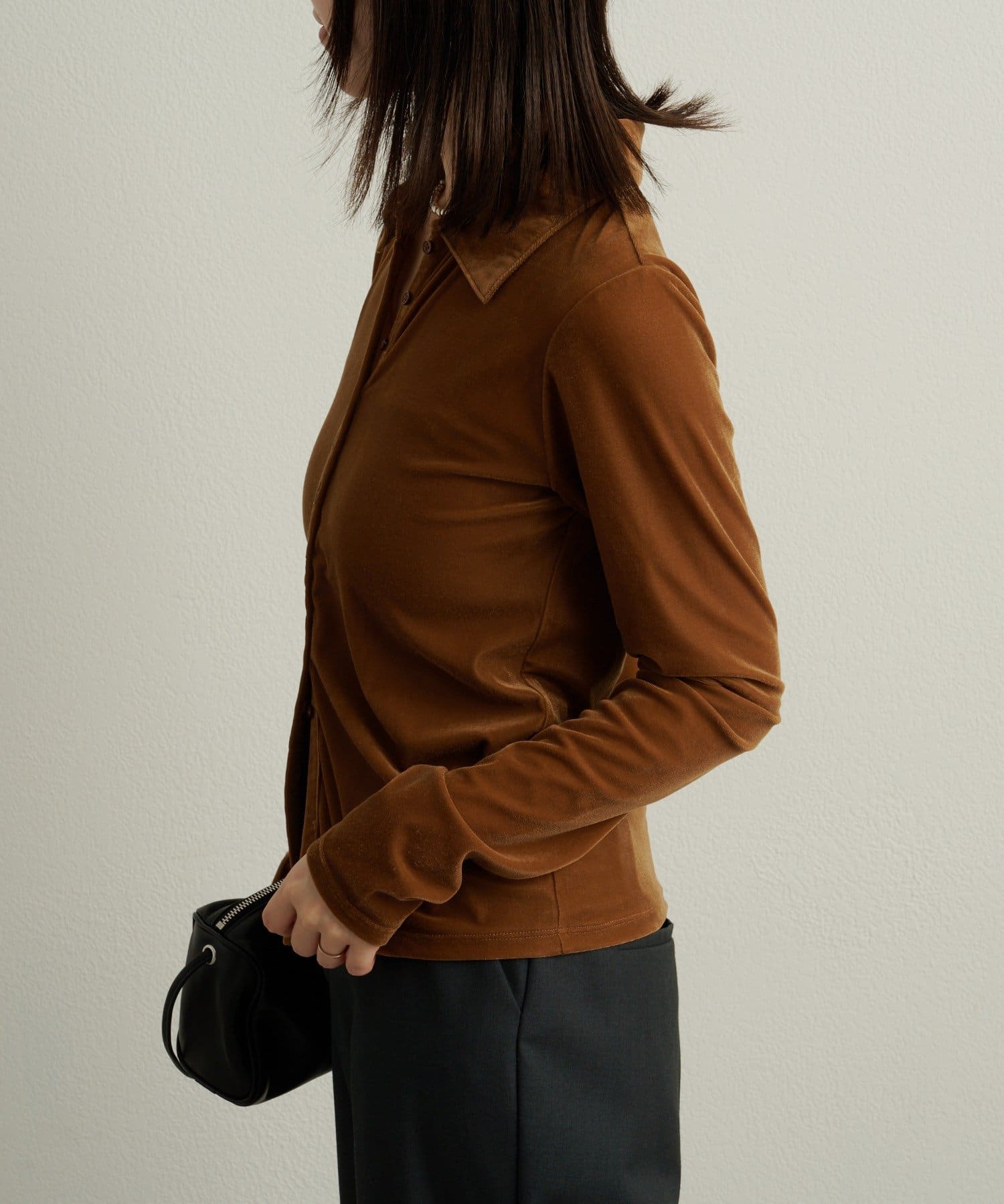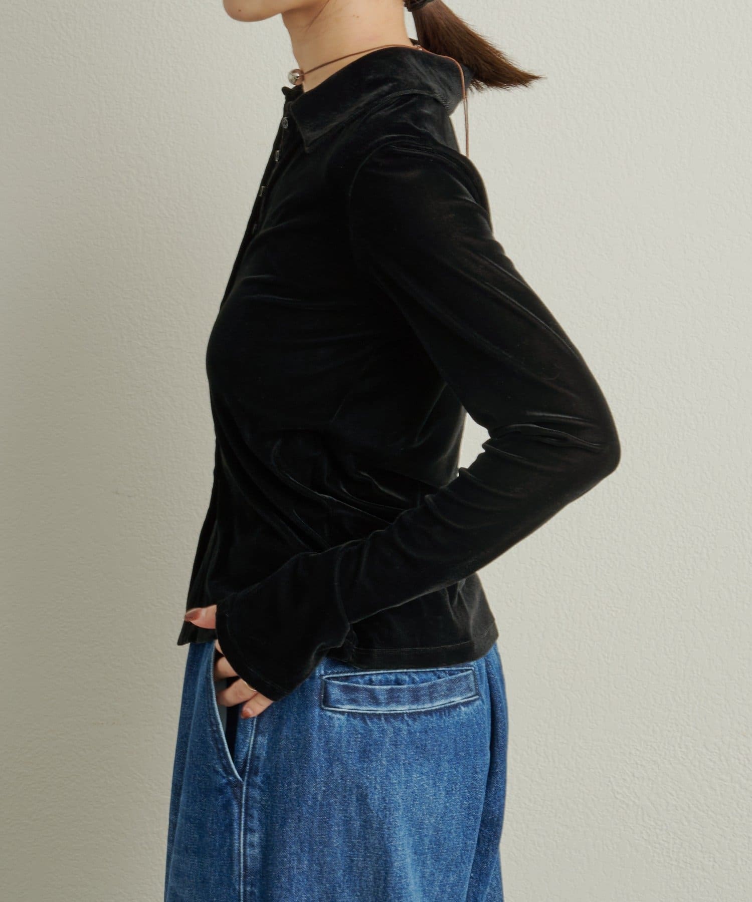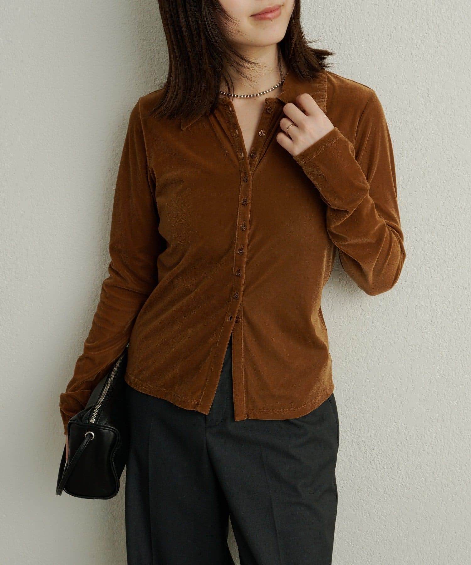 ・柔らかな光沢感のあるベロア素材が、女性らしさを引き立ててくれる一枚。