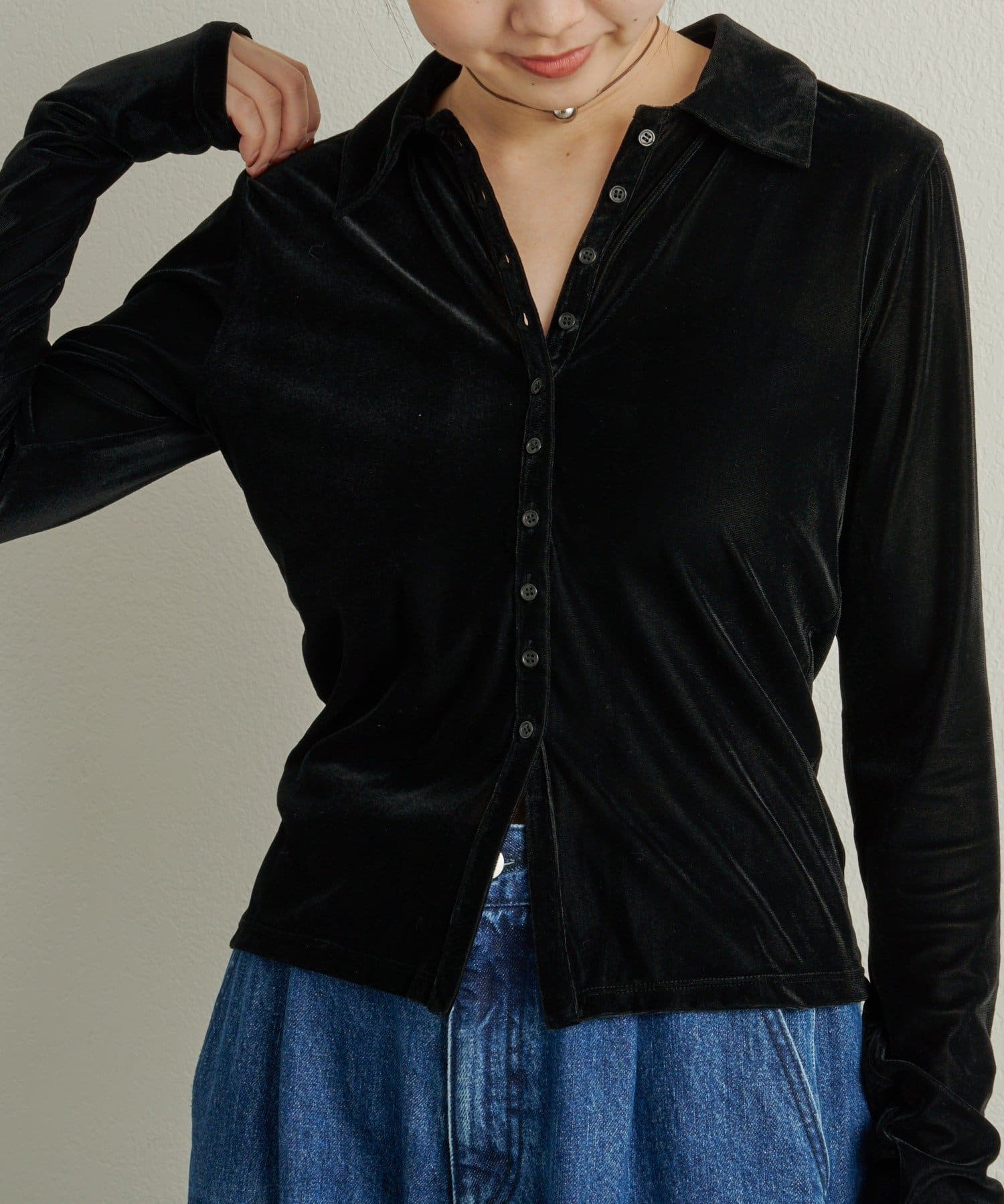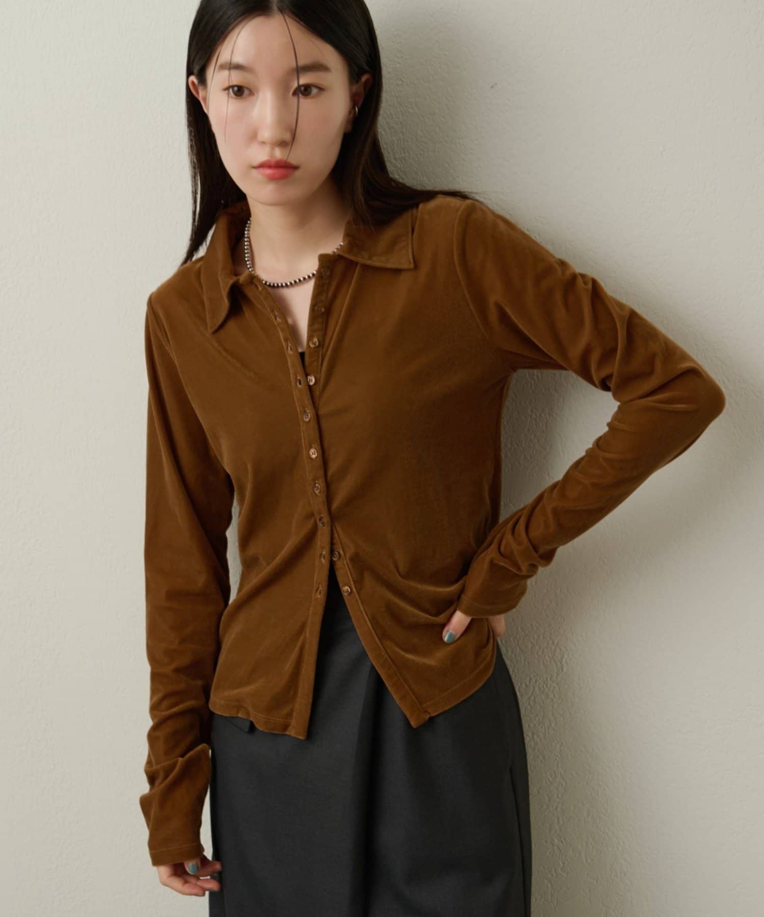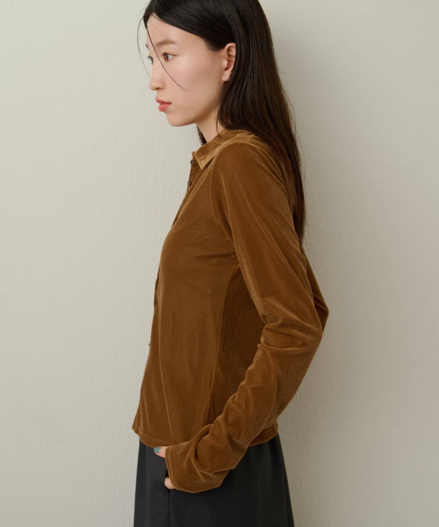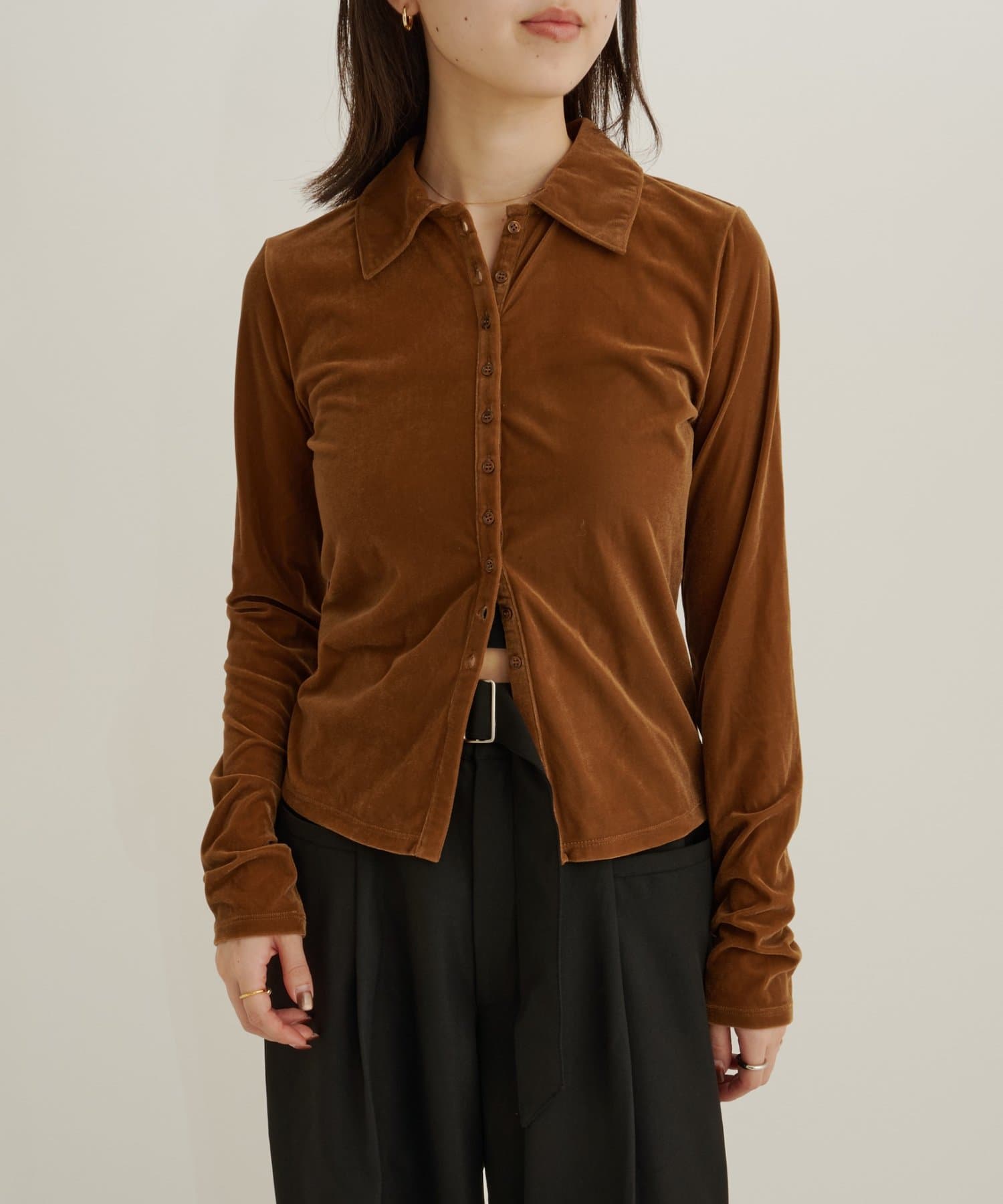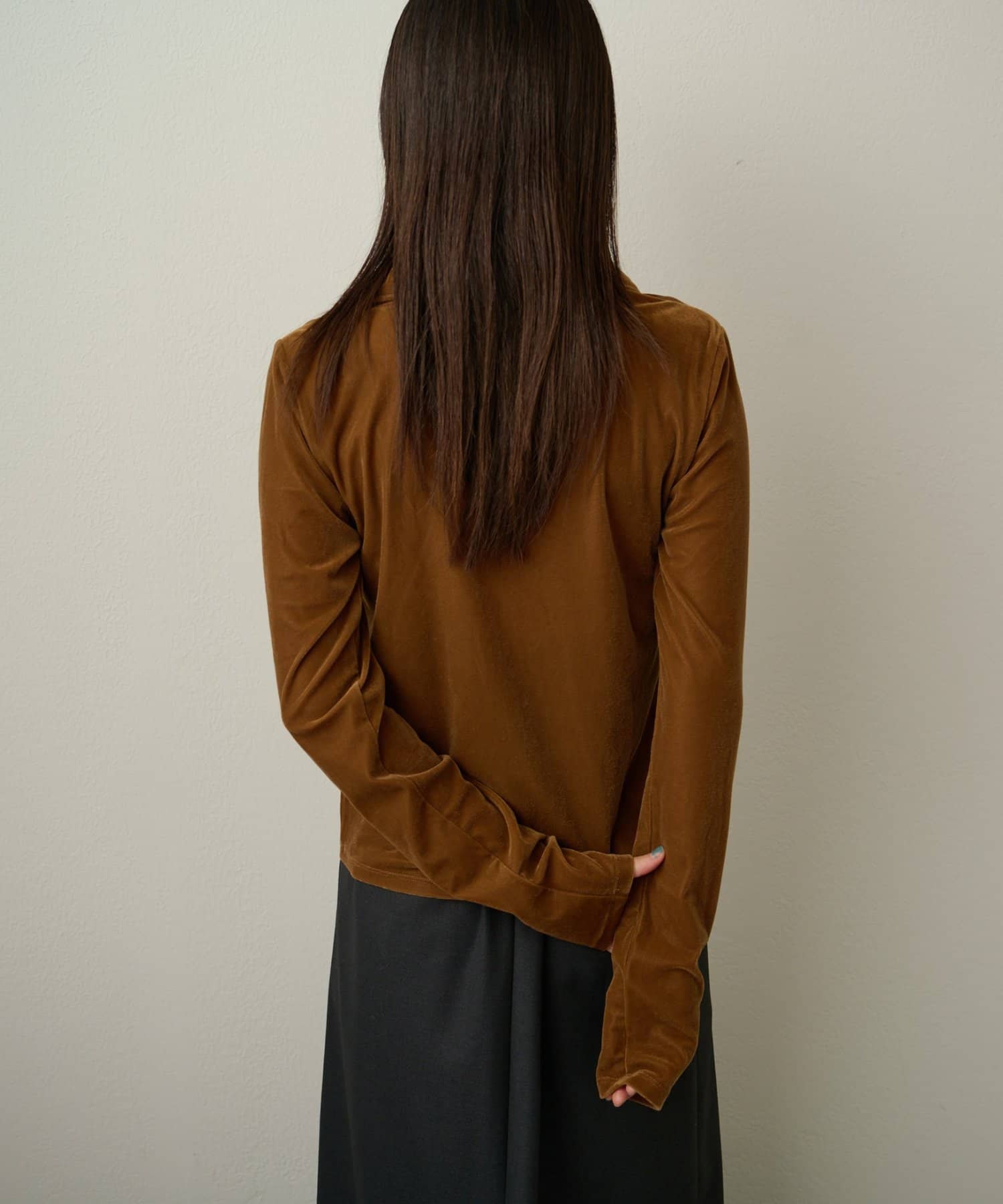 ・柔らかな光沢感のあるベロア素材が、女性らしさを引き立ててくれる一枚。