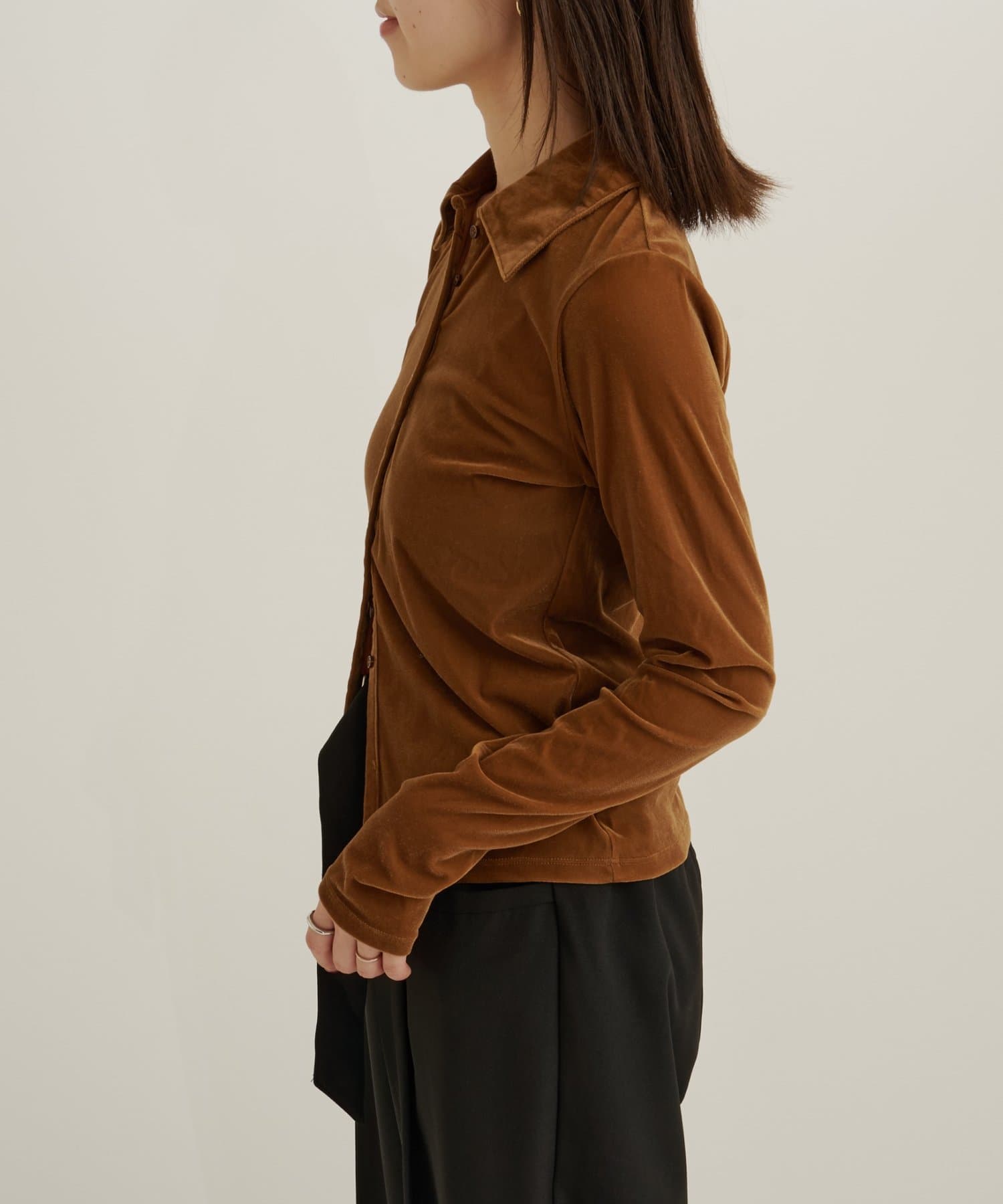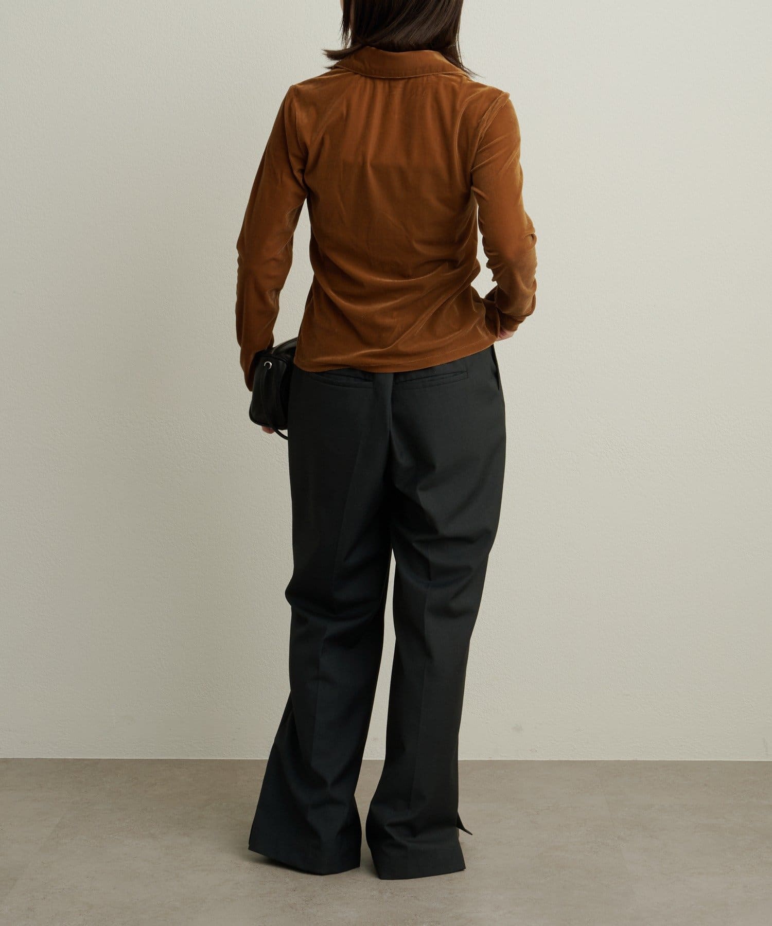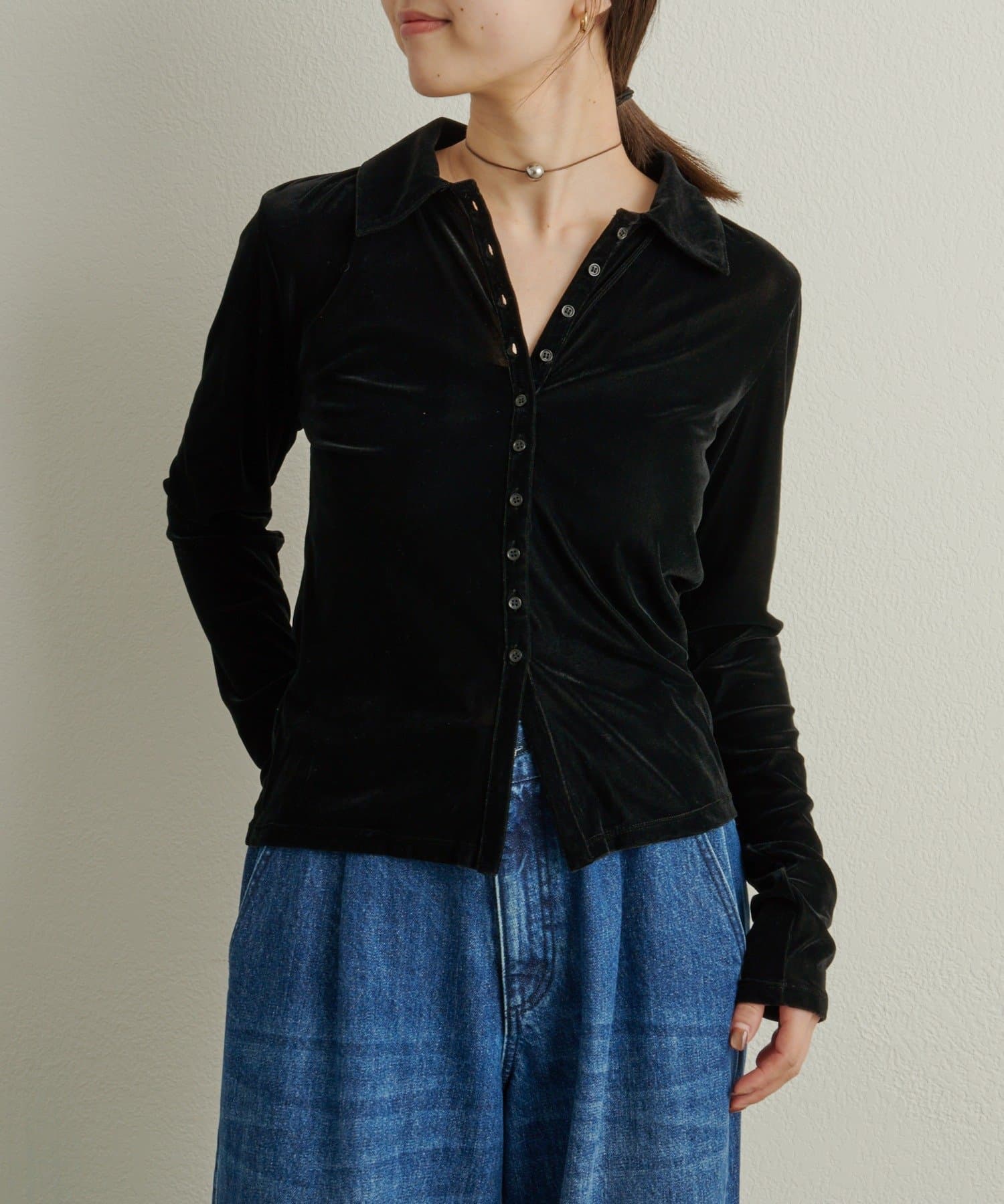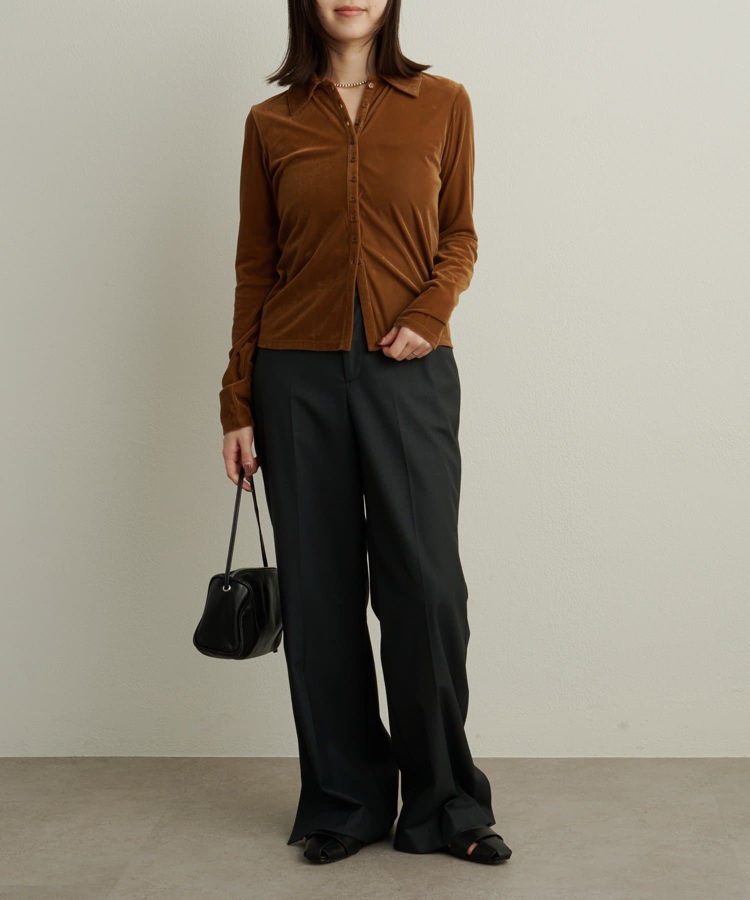 ・柔らかな光沢感のあるベロア素材が、女性らしさを引き立ててくれる一枚。