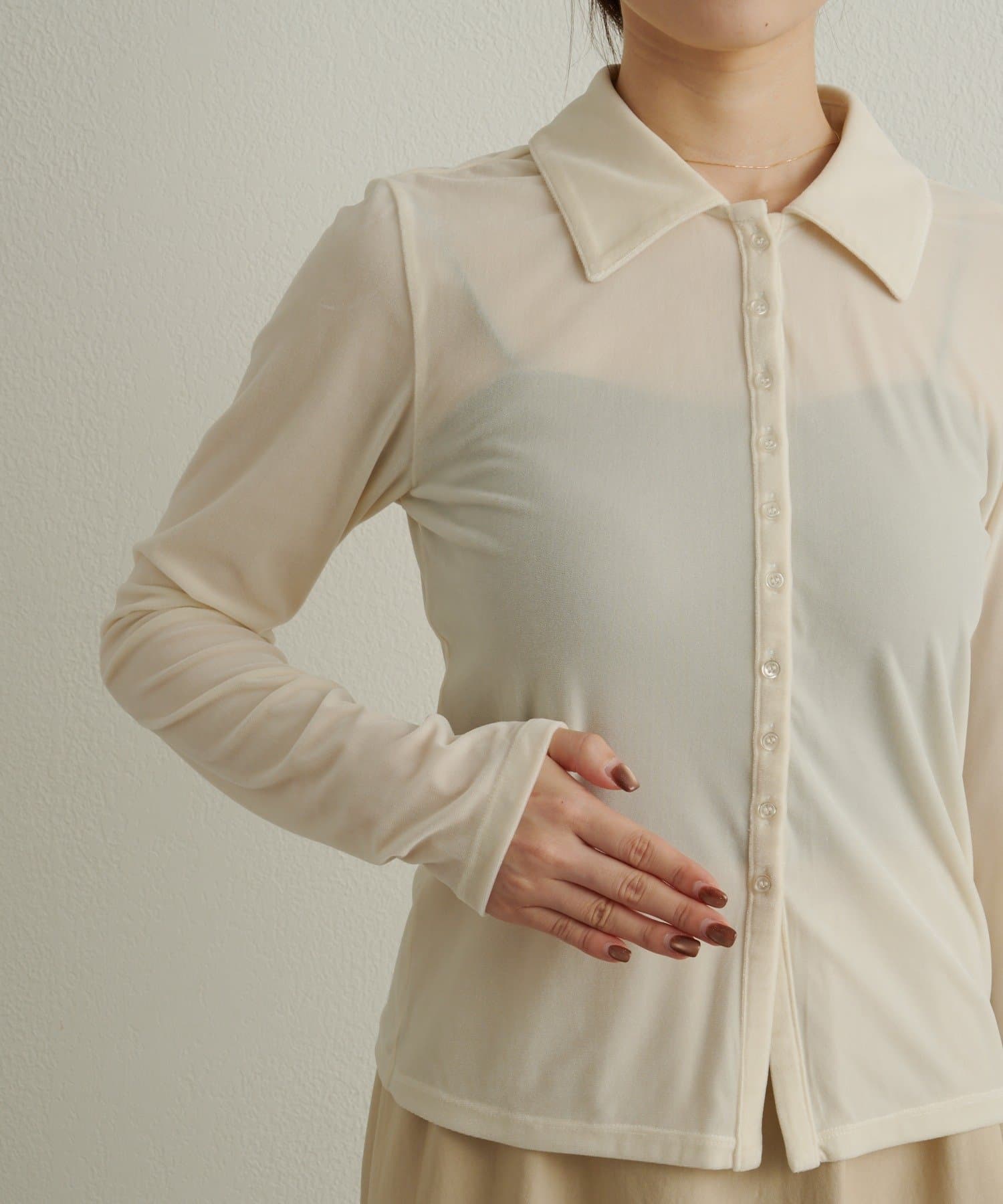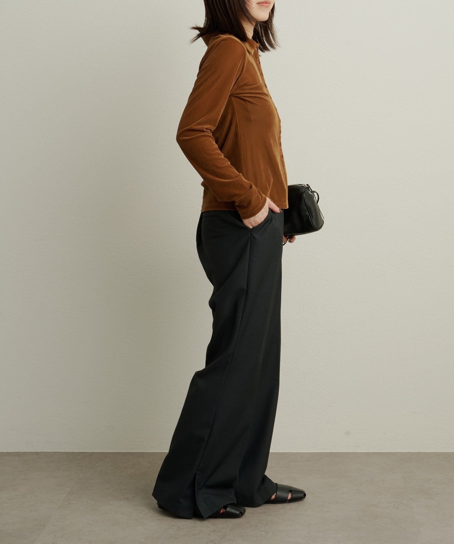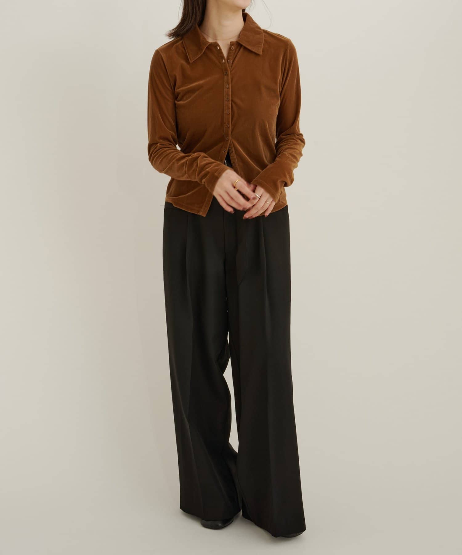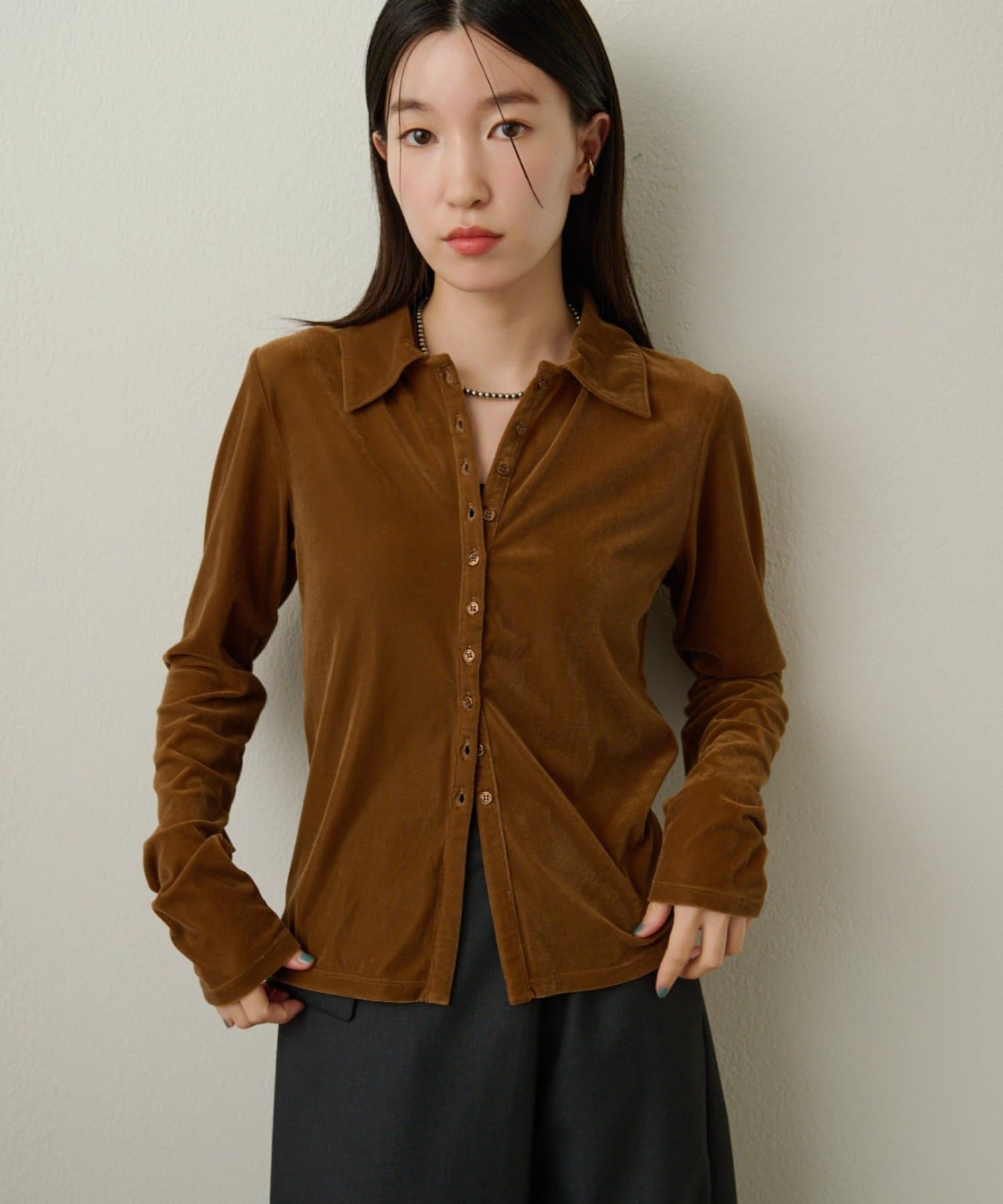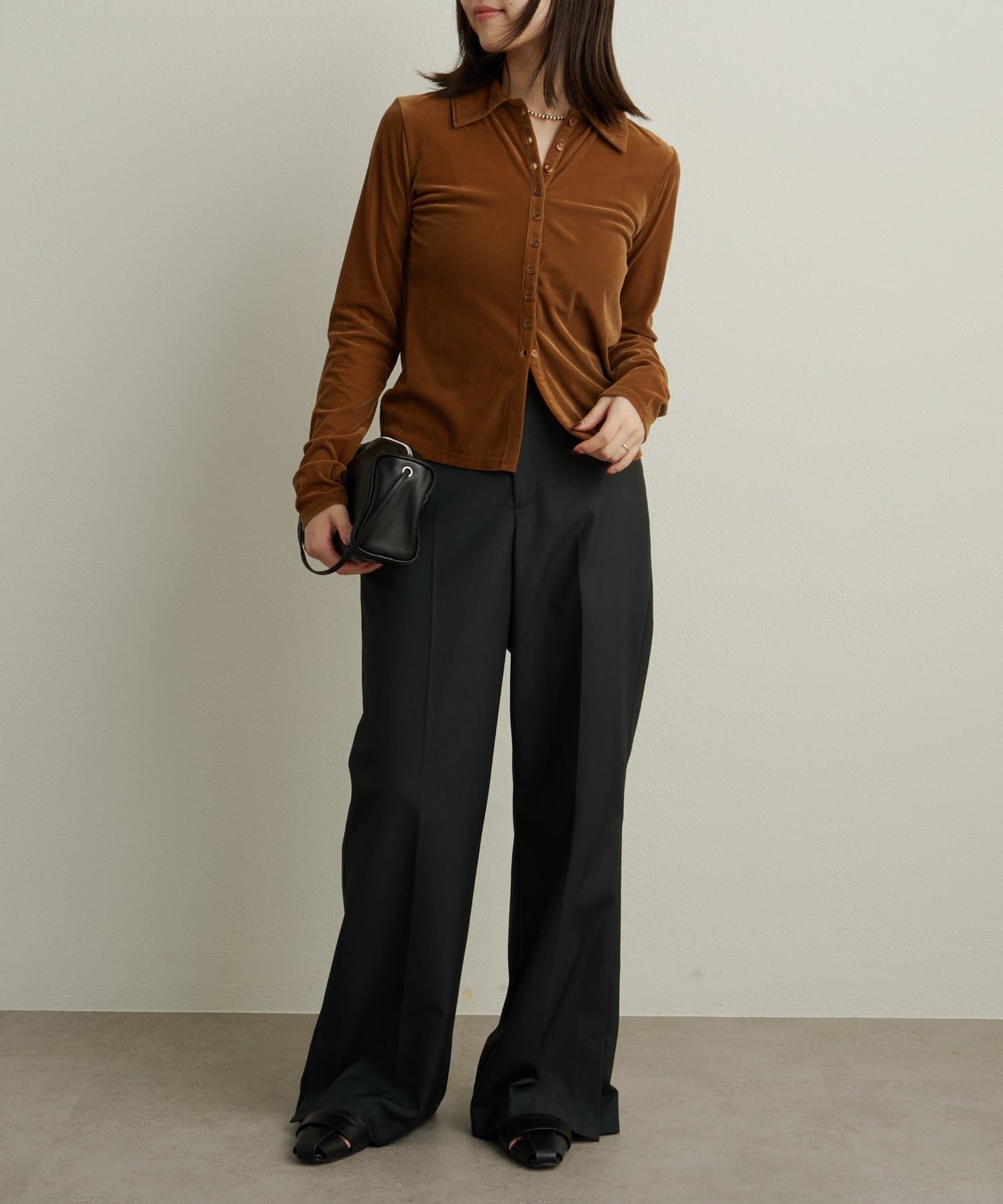 ・柔らかな光沢感のあるベロア素材が、女性らしさを引き立ててくれる一枚。
