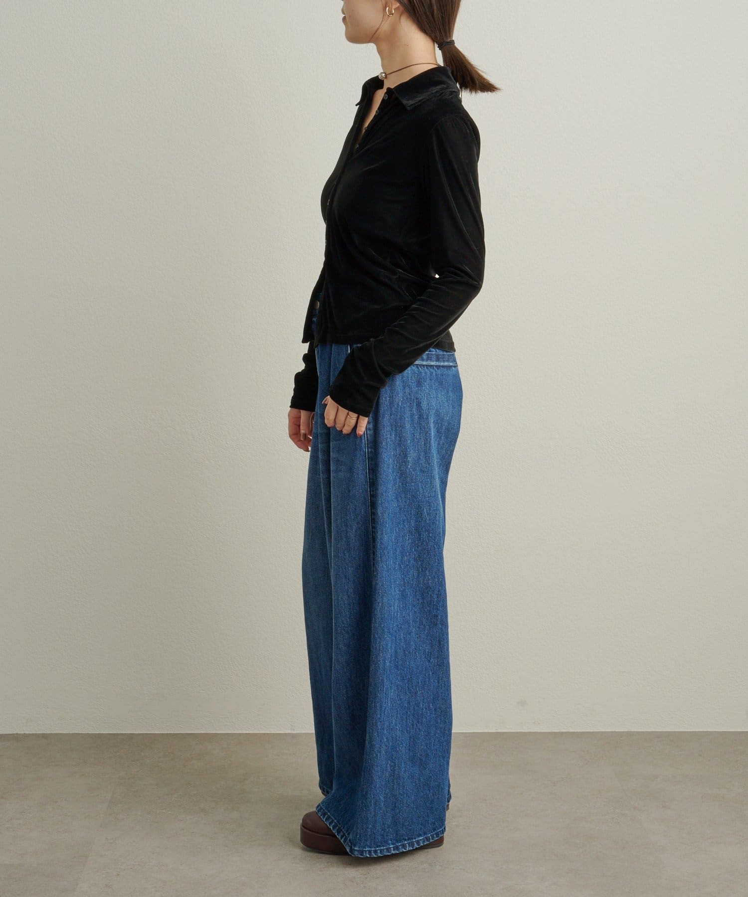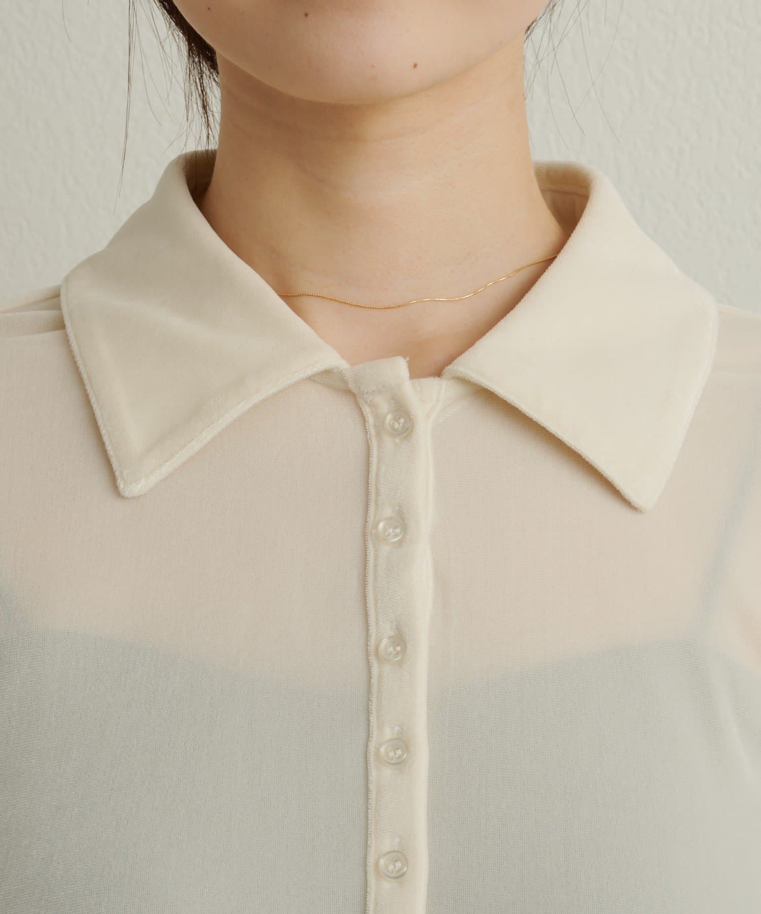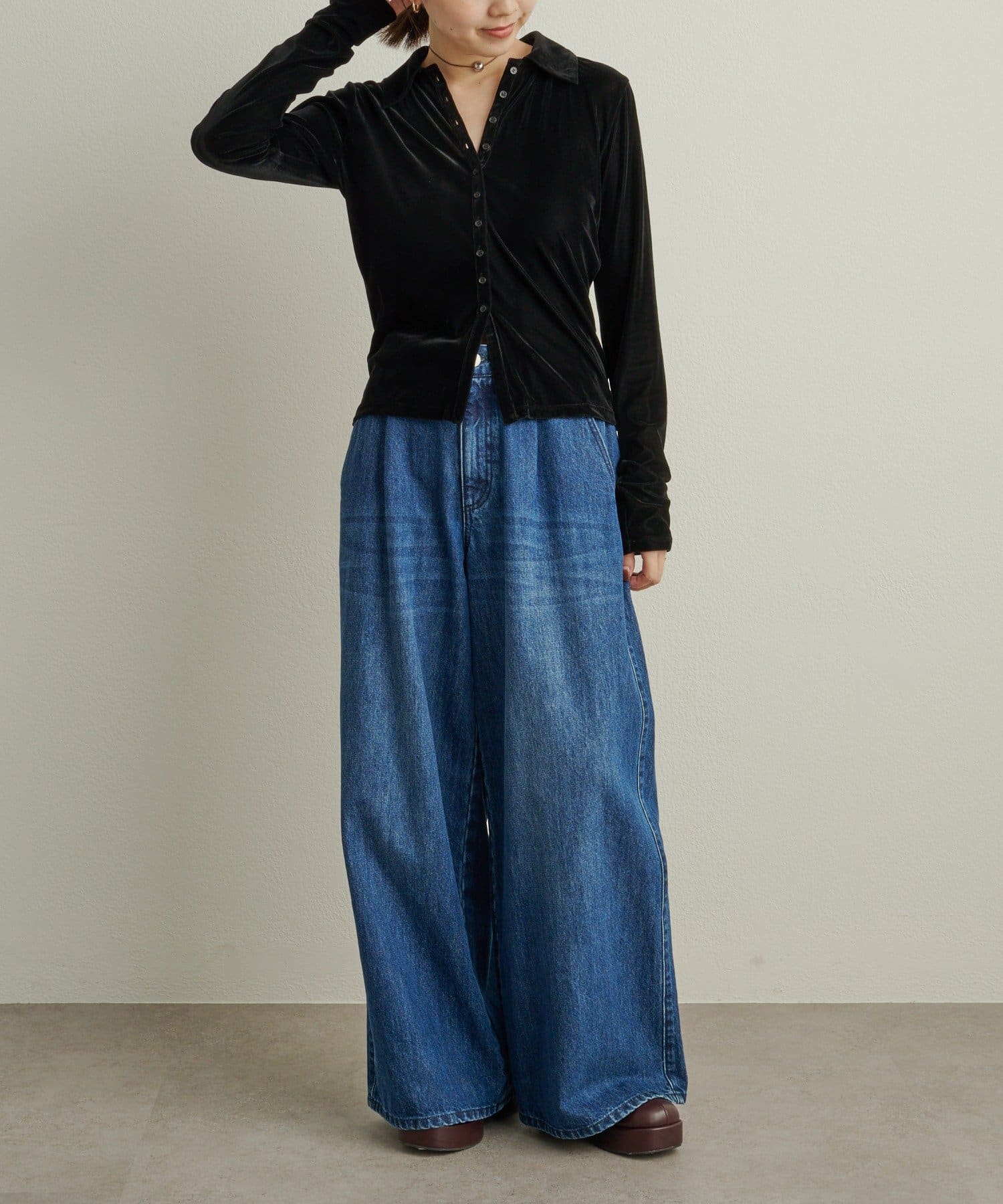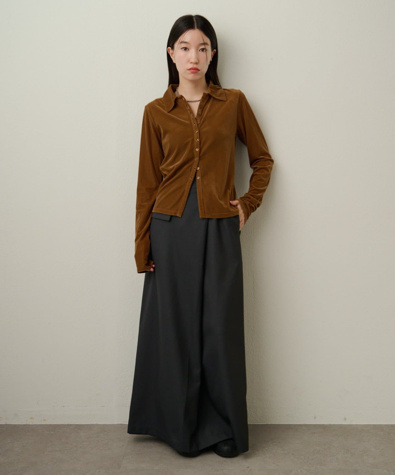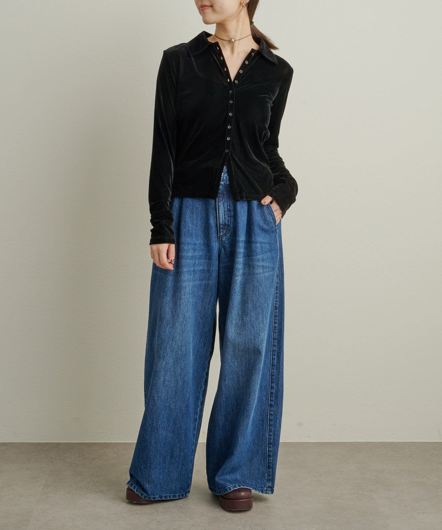 ・柔らかな光沢感のあるベロア素材が、女性らしさを引き立ててくれる一枚。