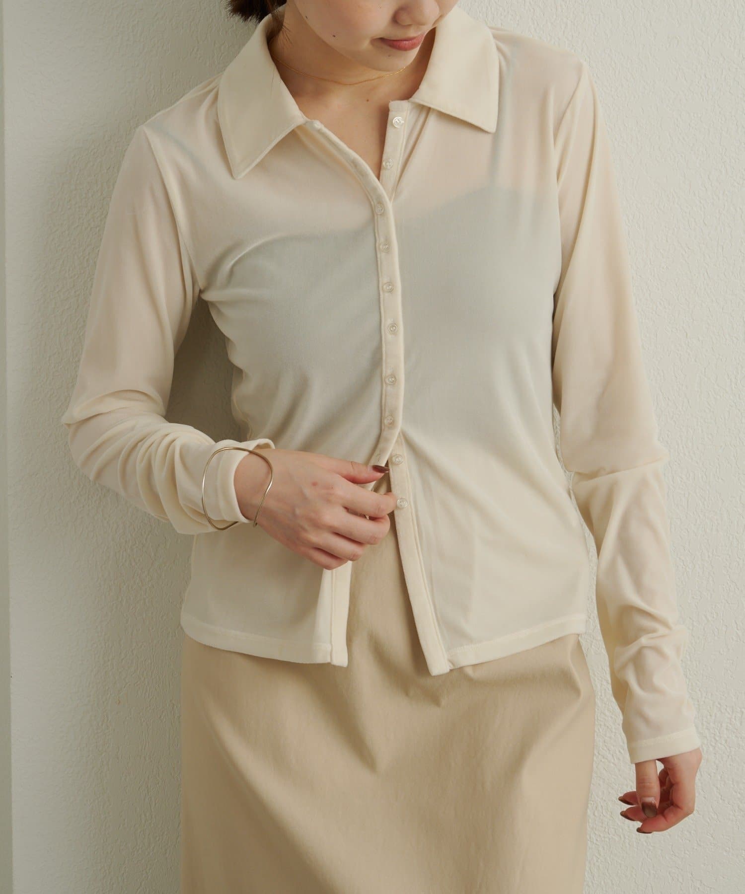 ・程よいシアー感なので、秋口にさらっと一枚で着ていただけます。