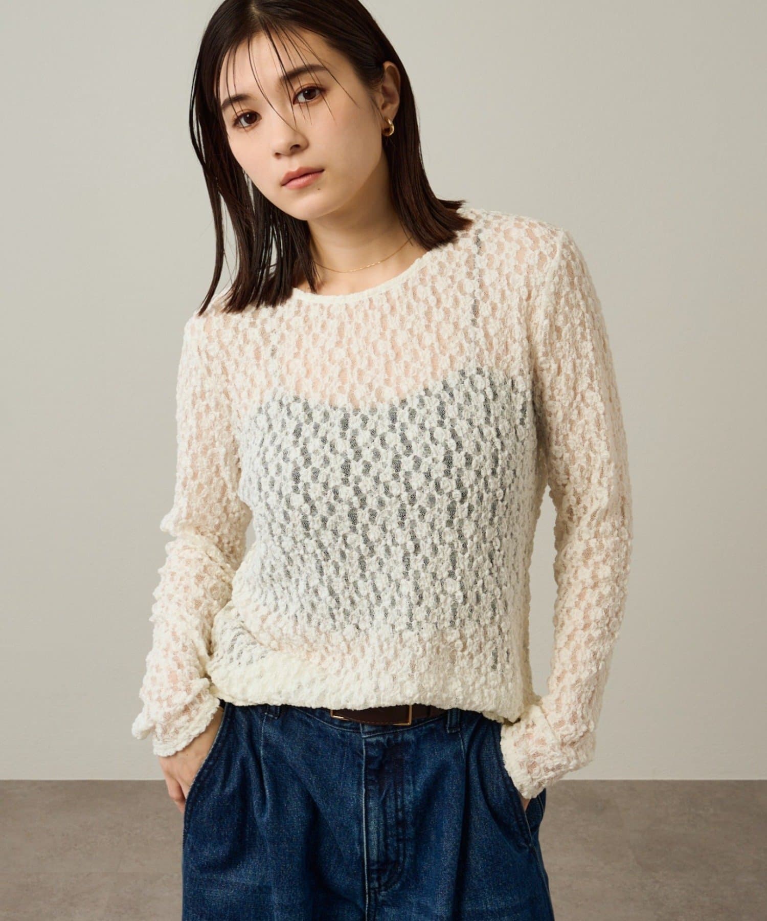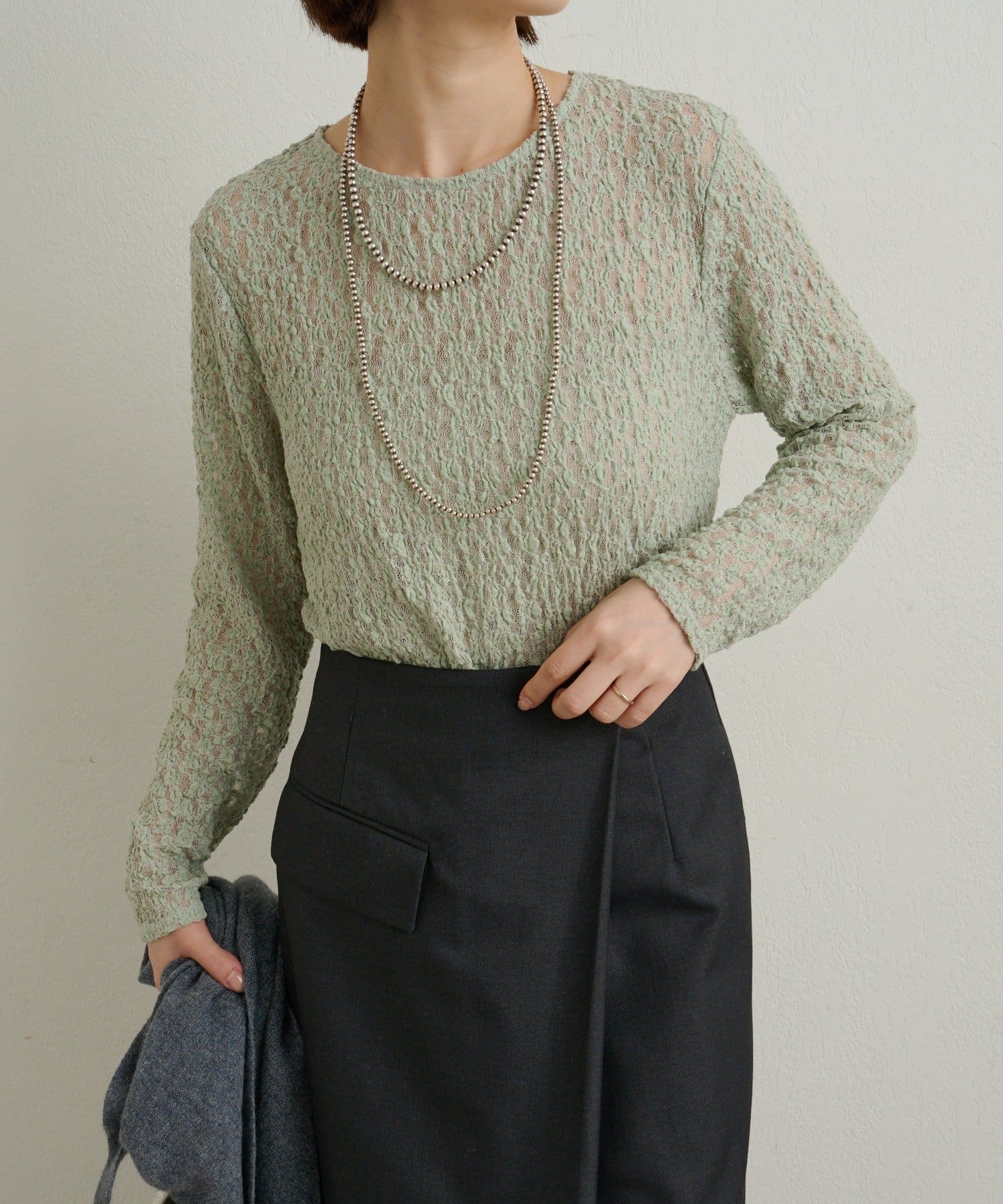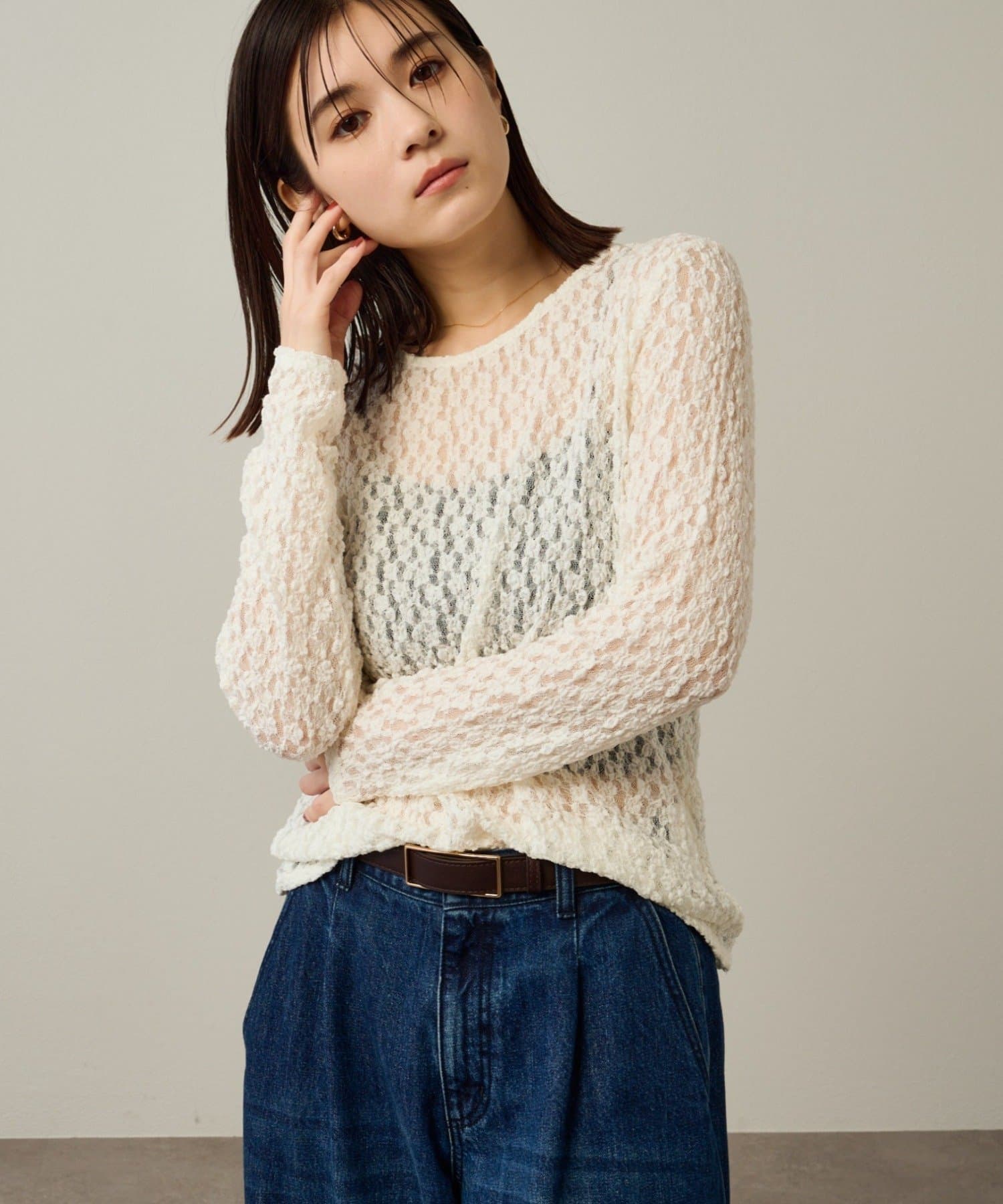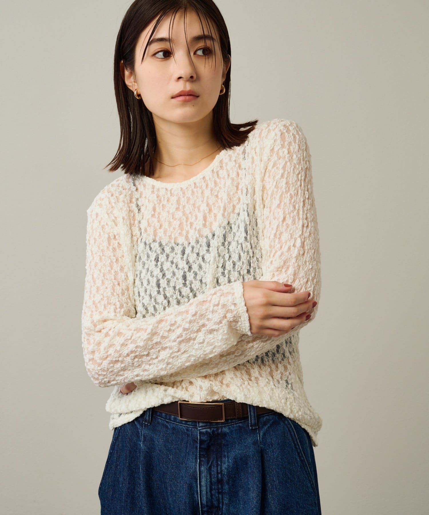 スタイリングに女性らしさをプラスしてくれるレースプルオーバー