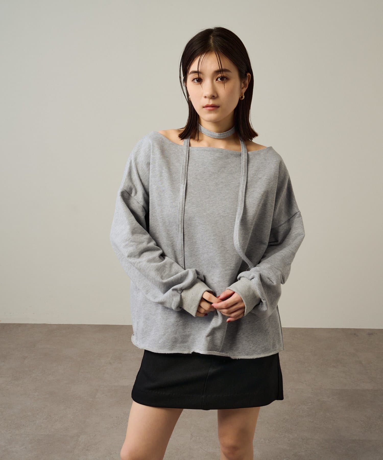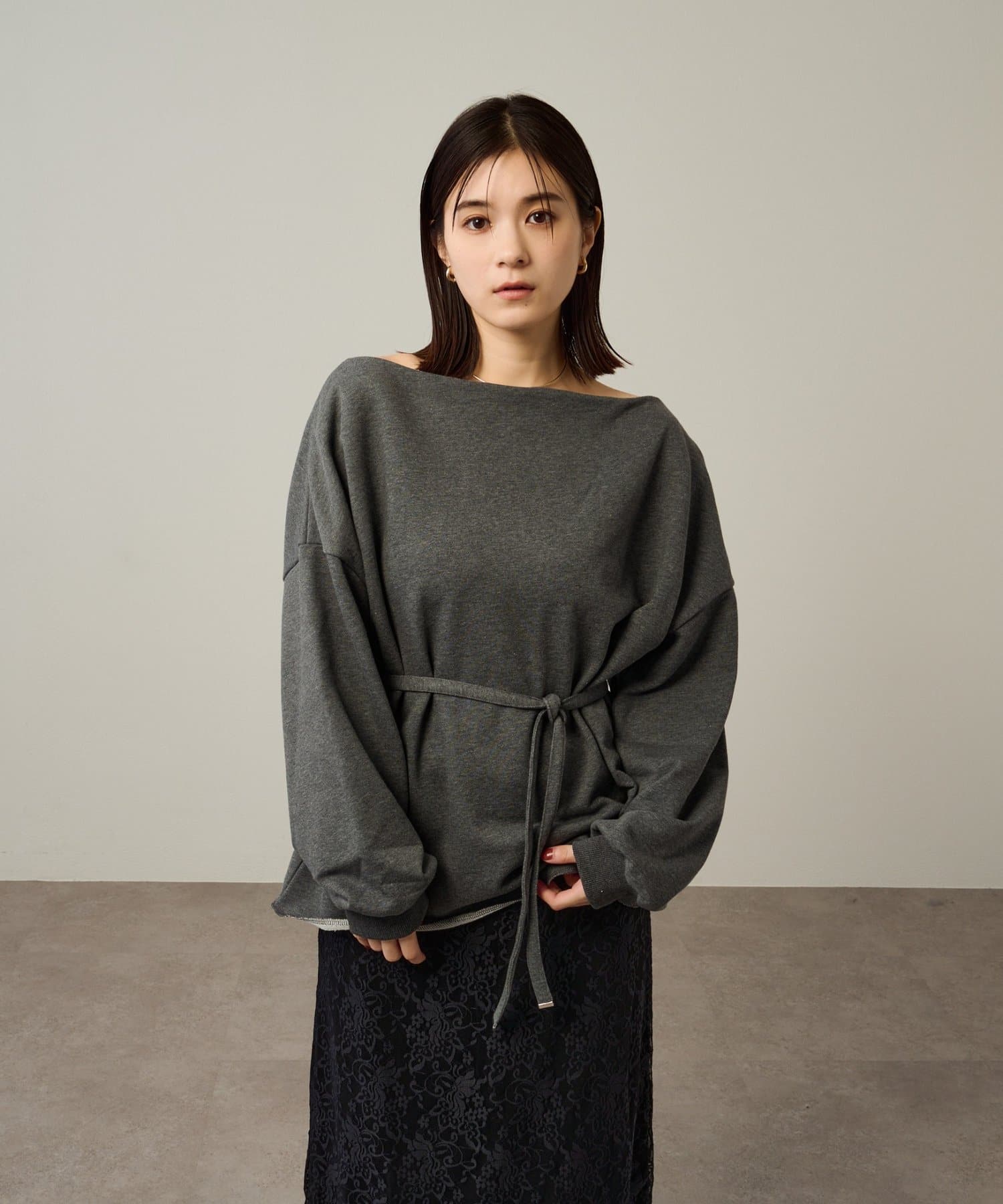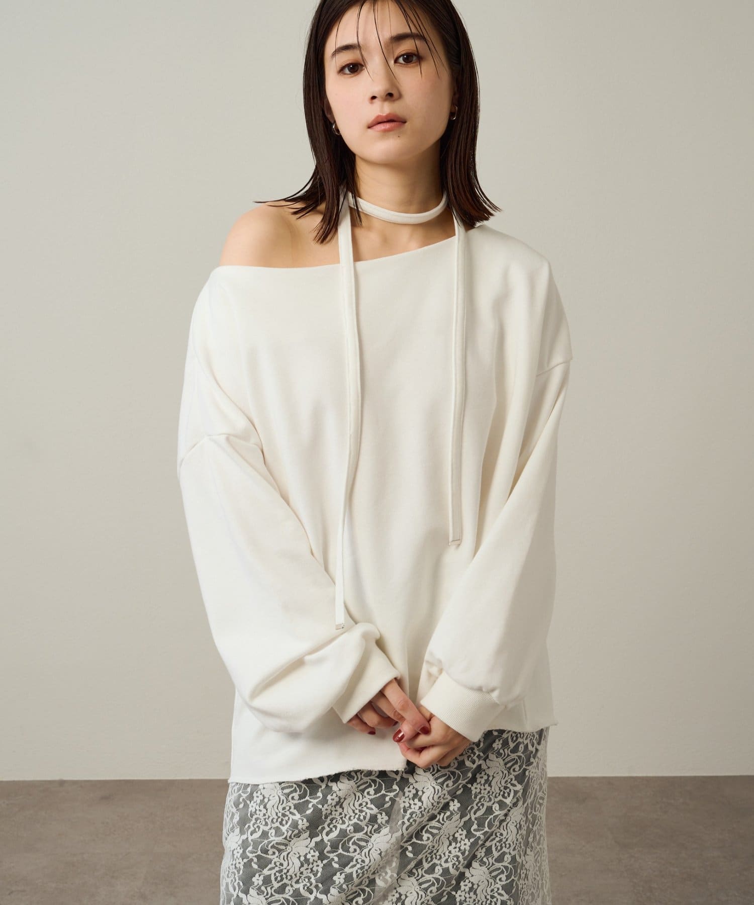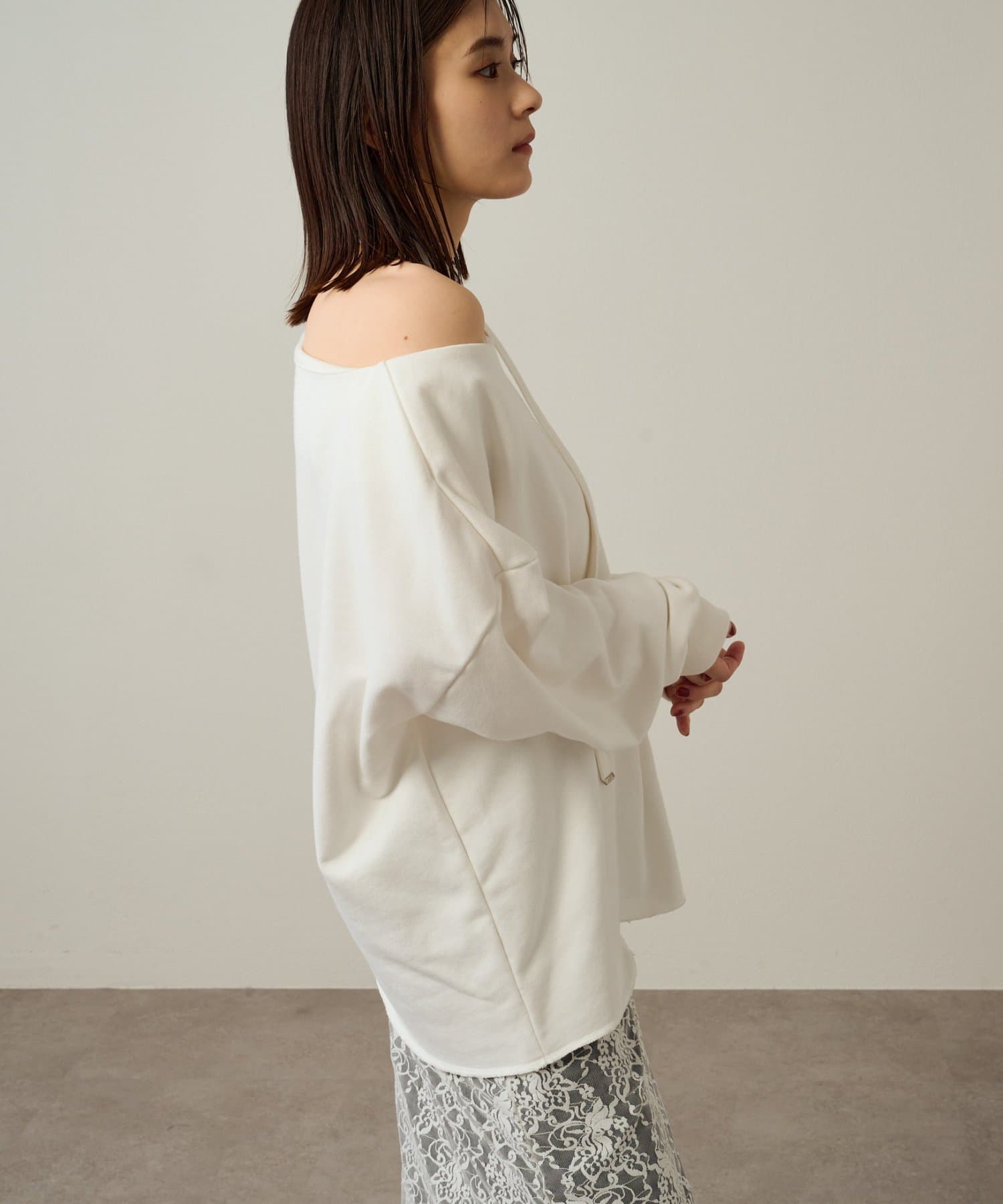 ・カジュアルなスウェットでありながら、オフショルデザインが女性らしさを演出してくれる一着。