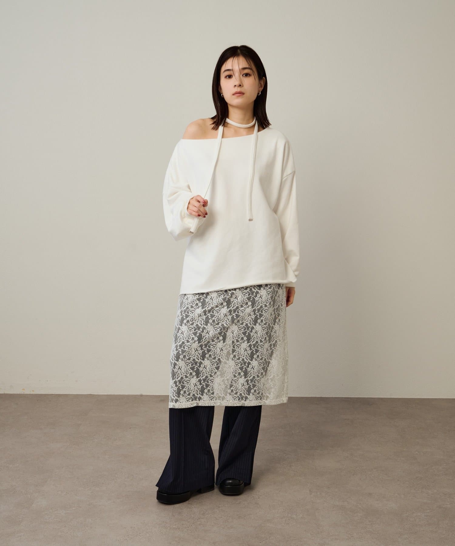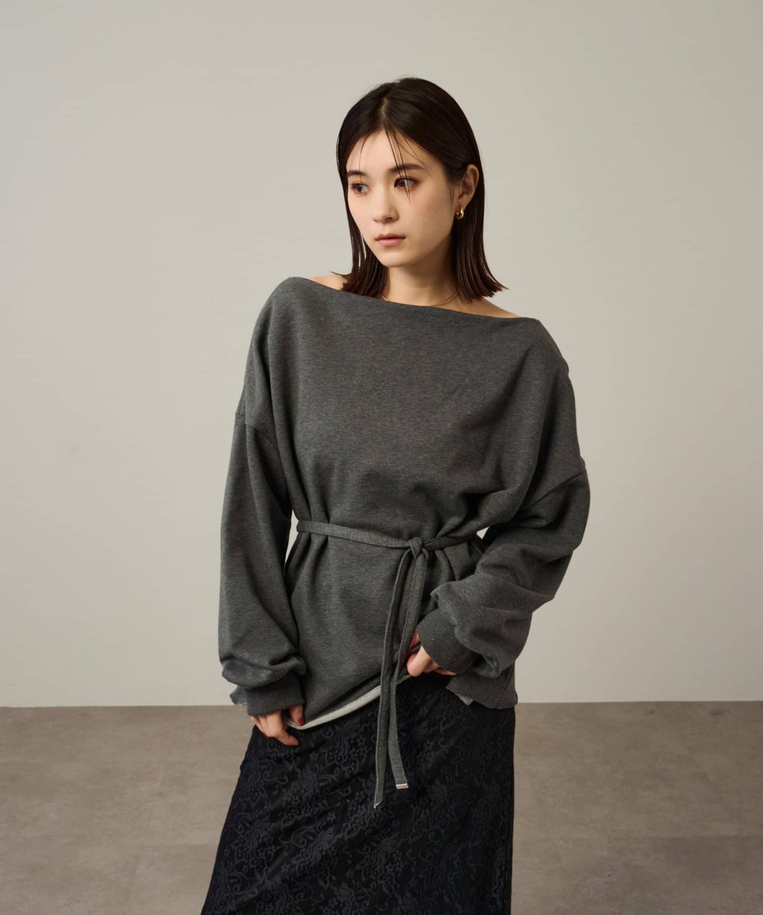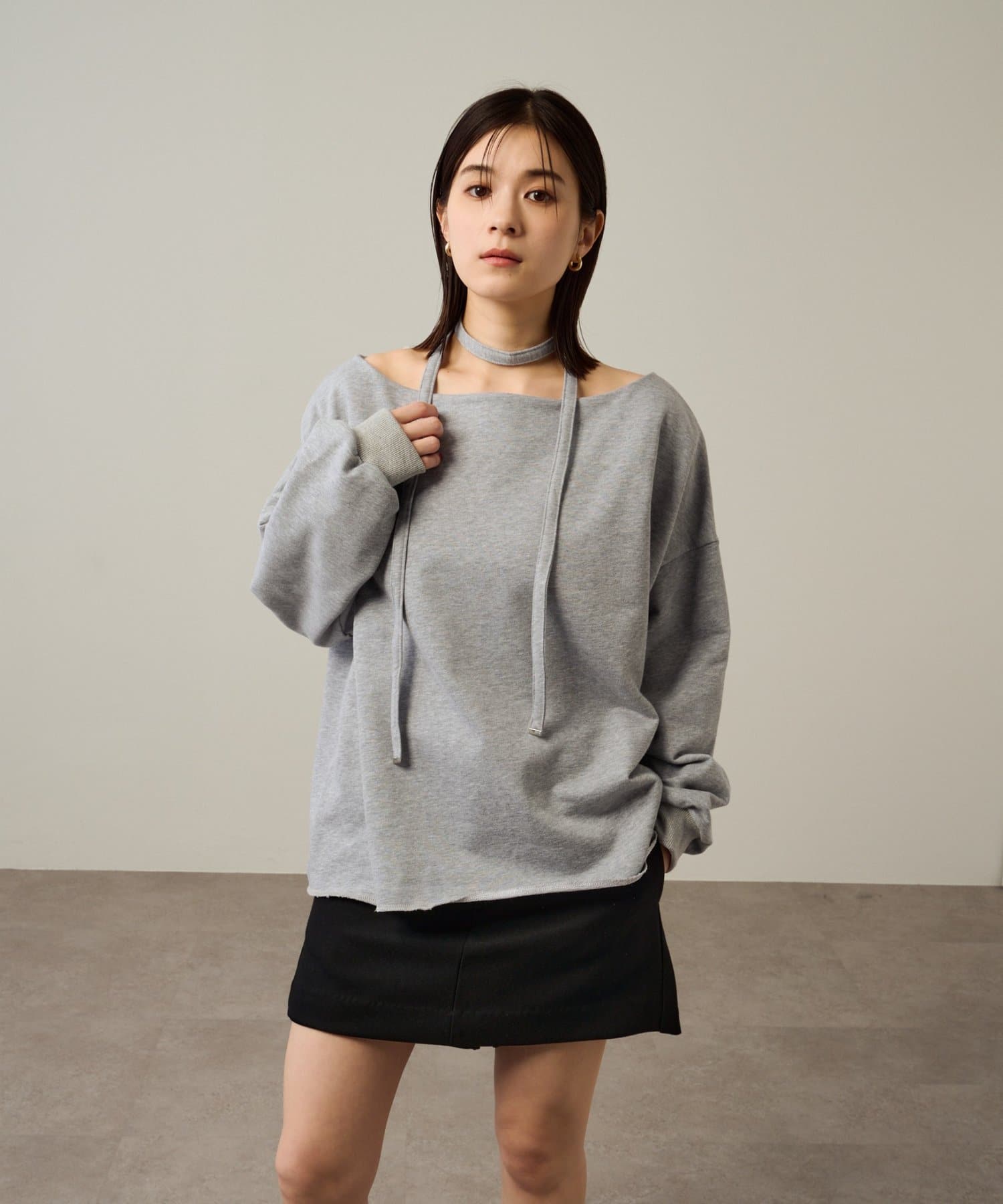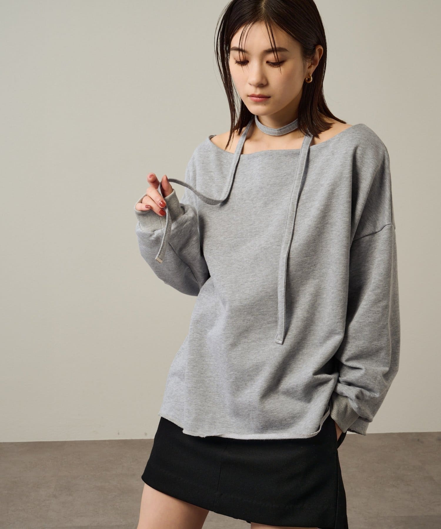 ・カジュアルなスウェットでありながら、オフショルデザインが女性らしさを演出してくれる一着。
