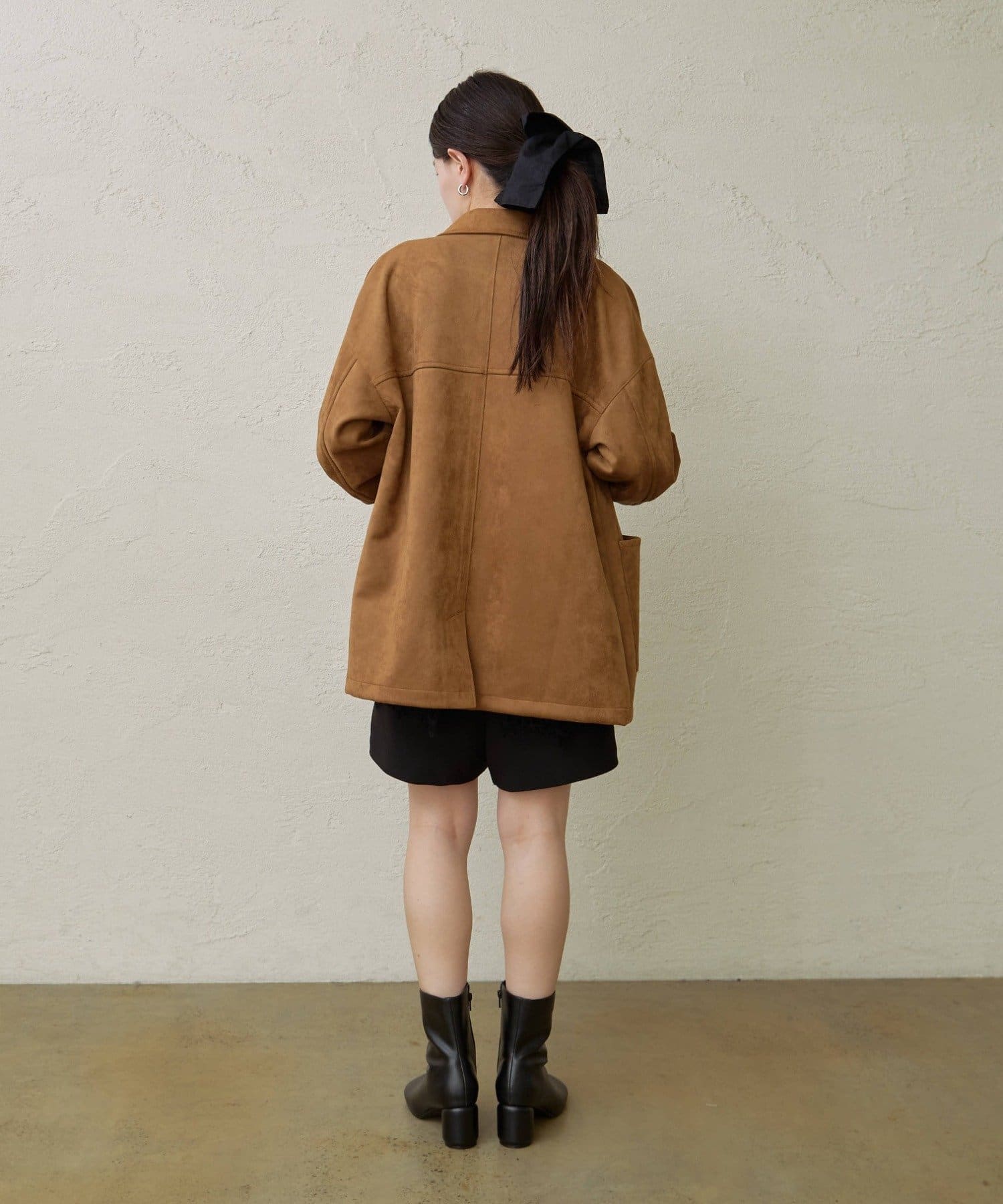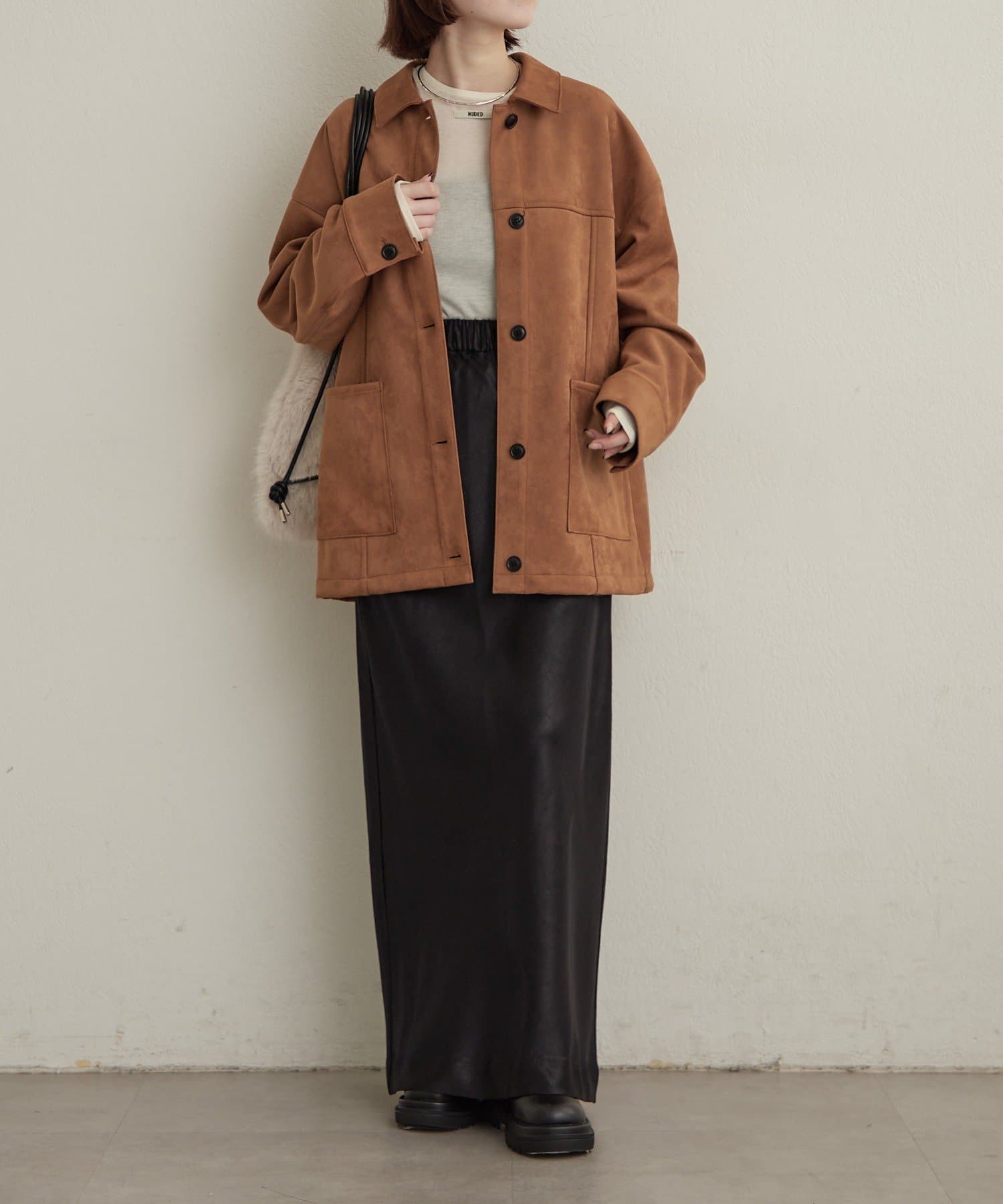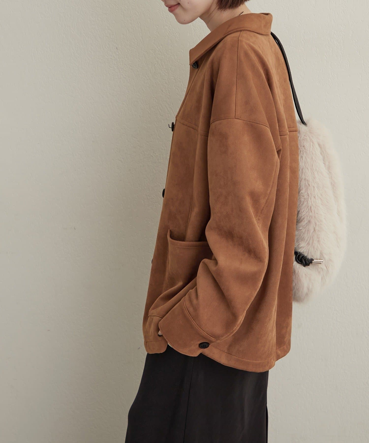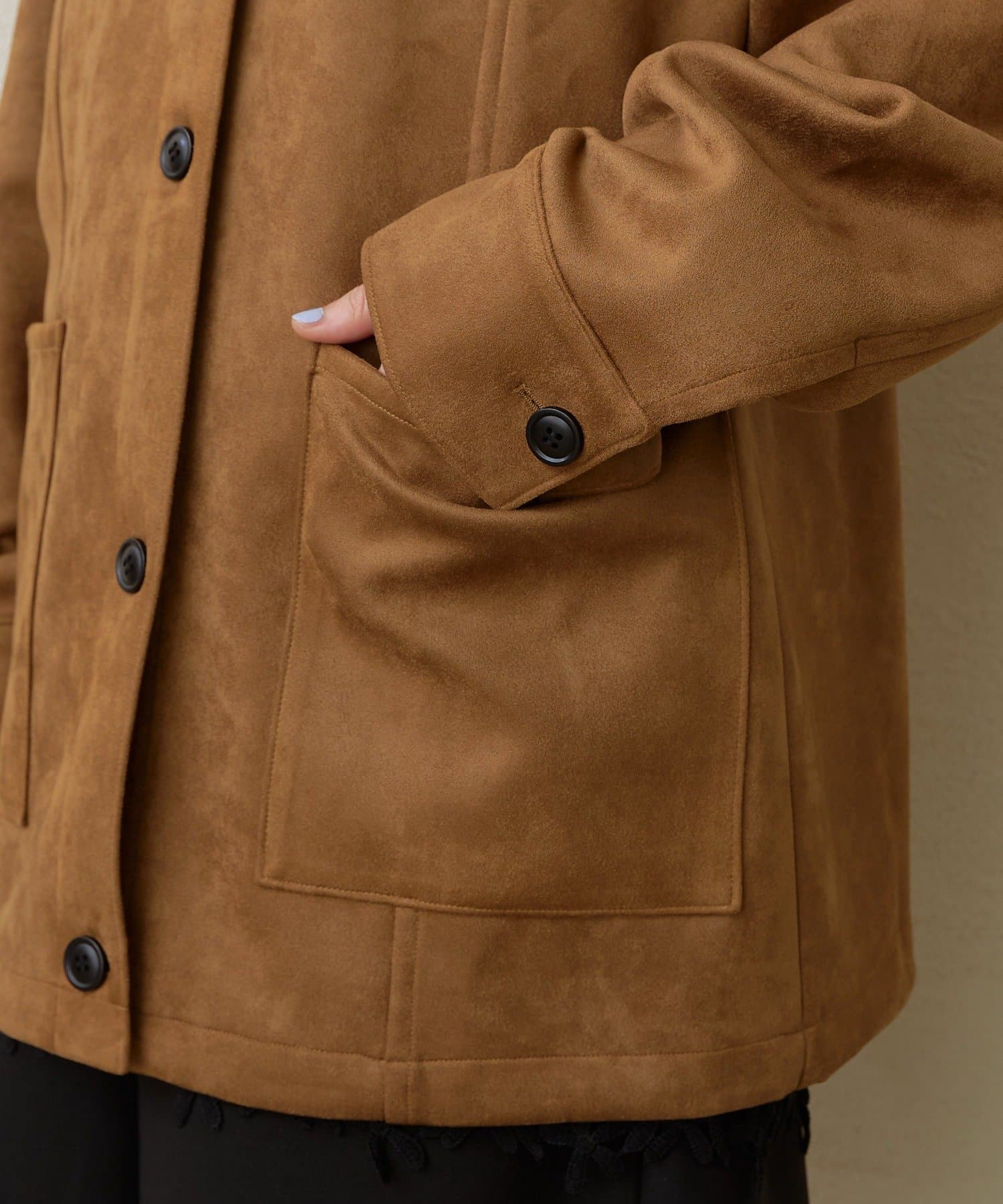 ・上質なフェイクスエードを使用しているため、軽くて暖かく、デイリーユースに活躍する一着です。