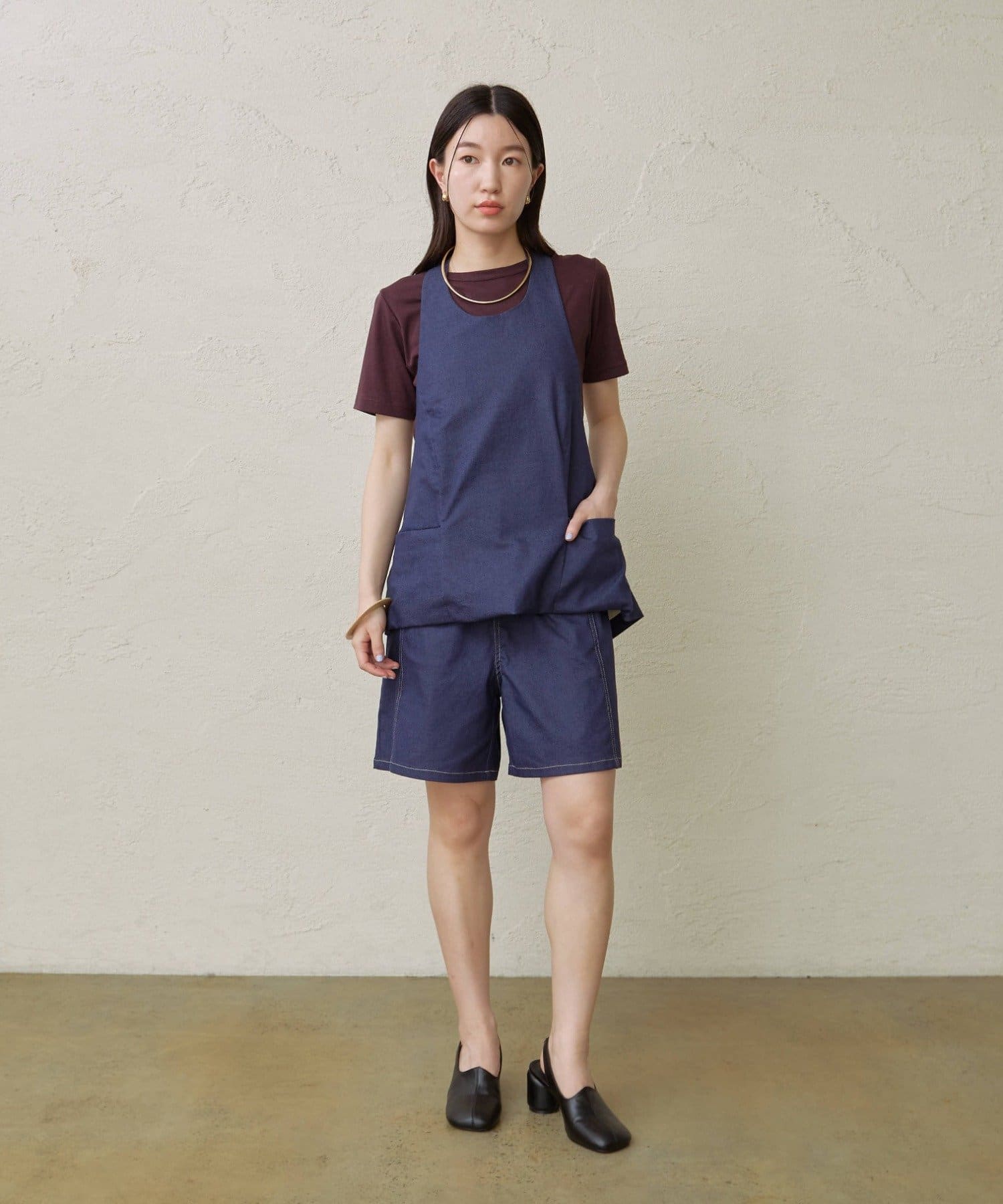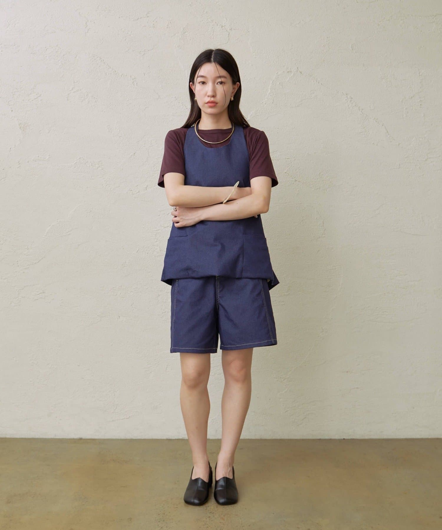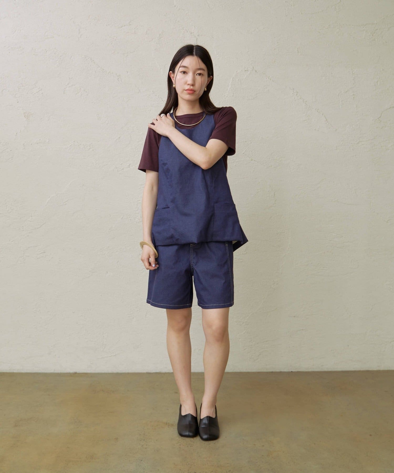 ・同素材のデニムライクショートパンツとセットアップで着用いただけます。