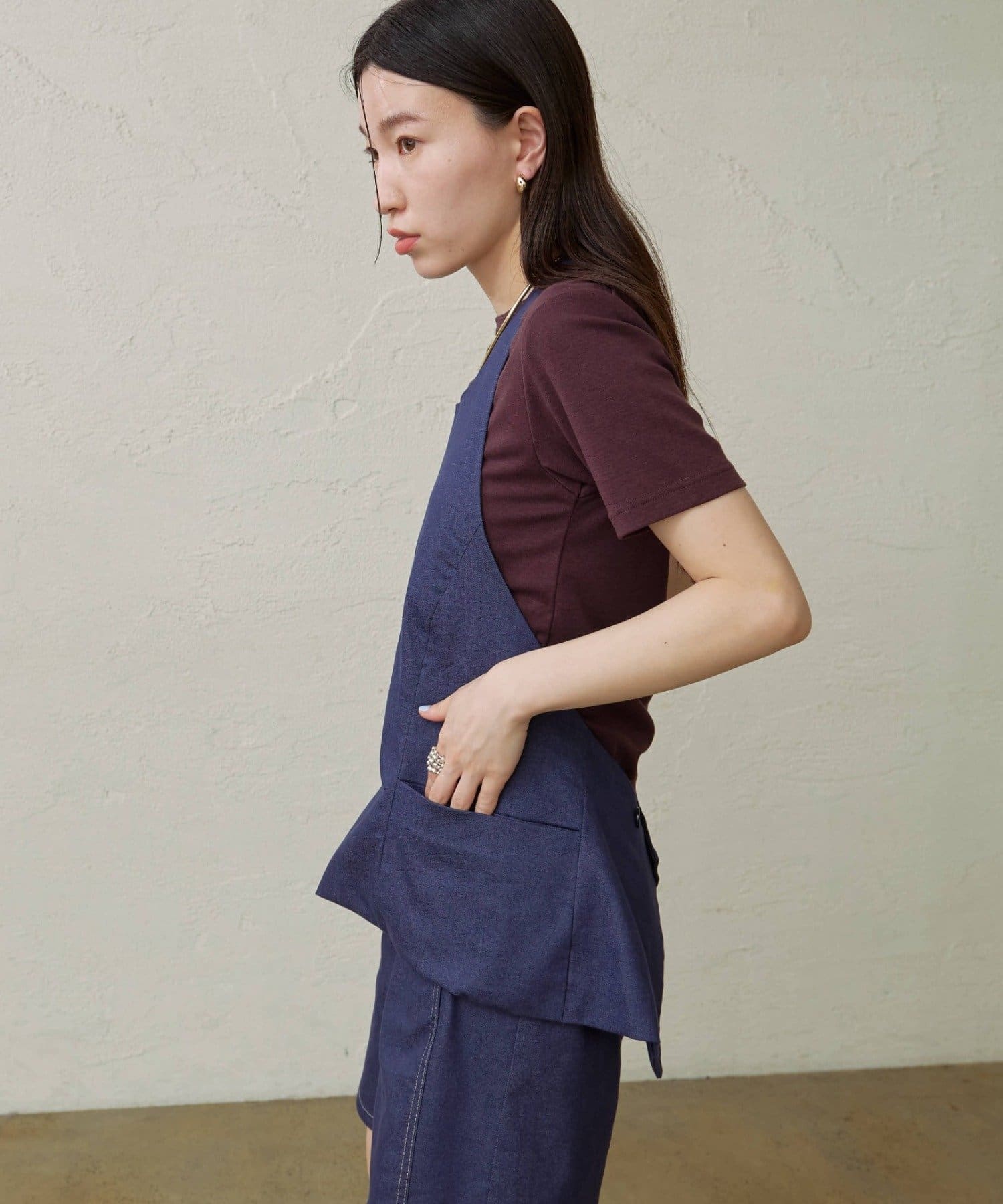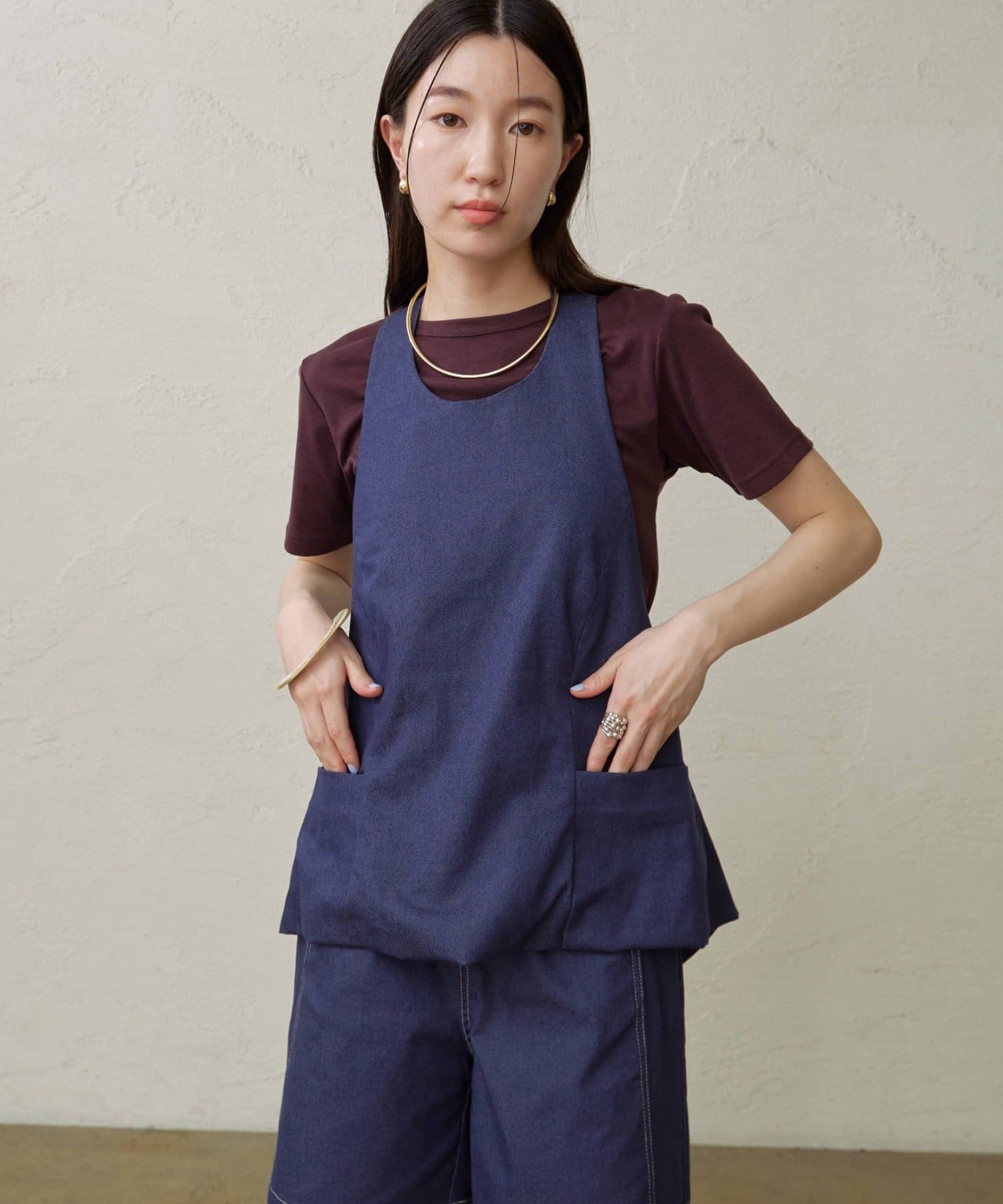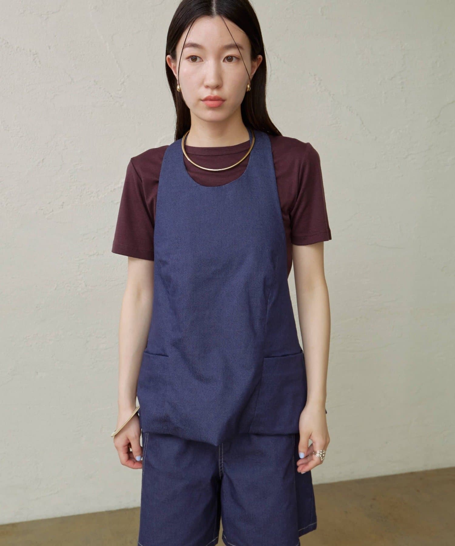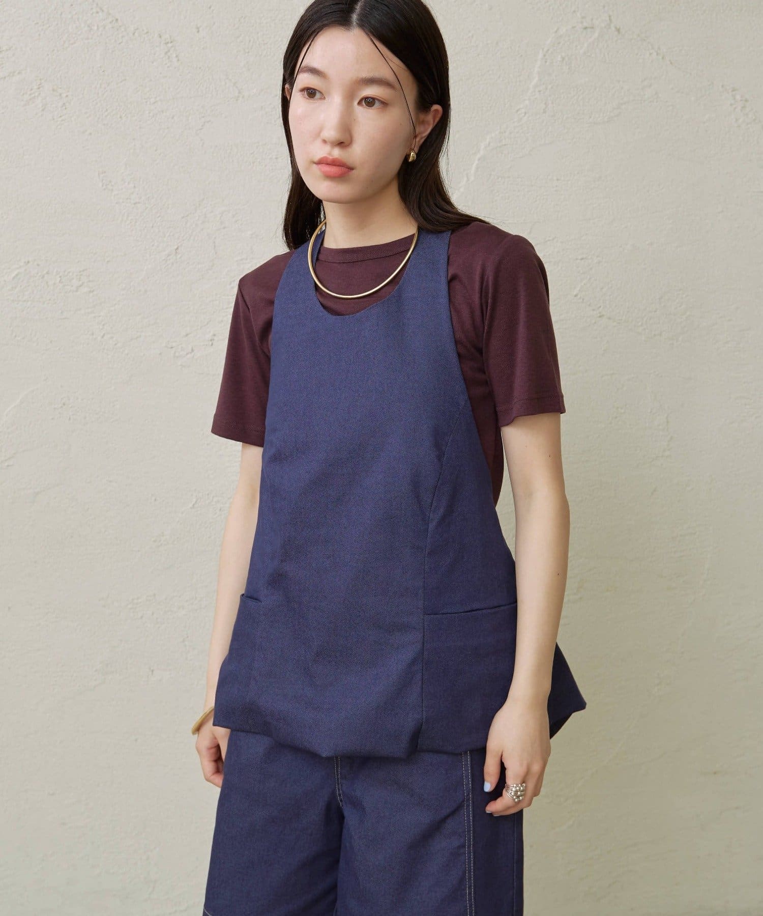 シンプルなスタイリングをアップデートしてくれるデニムライクビスチェ