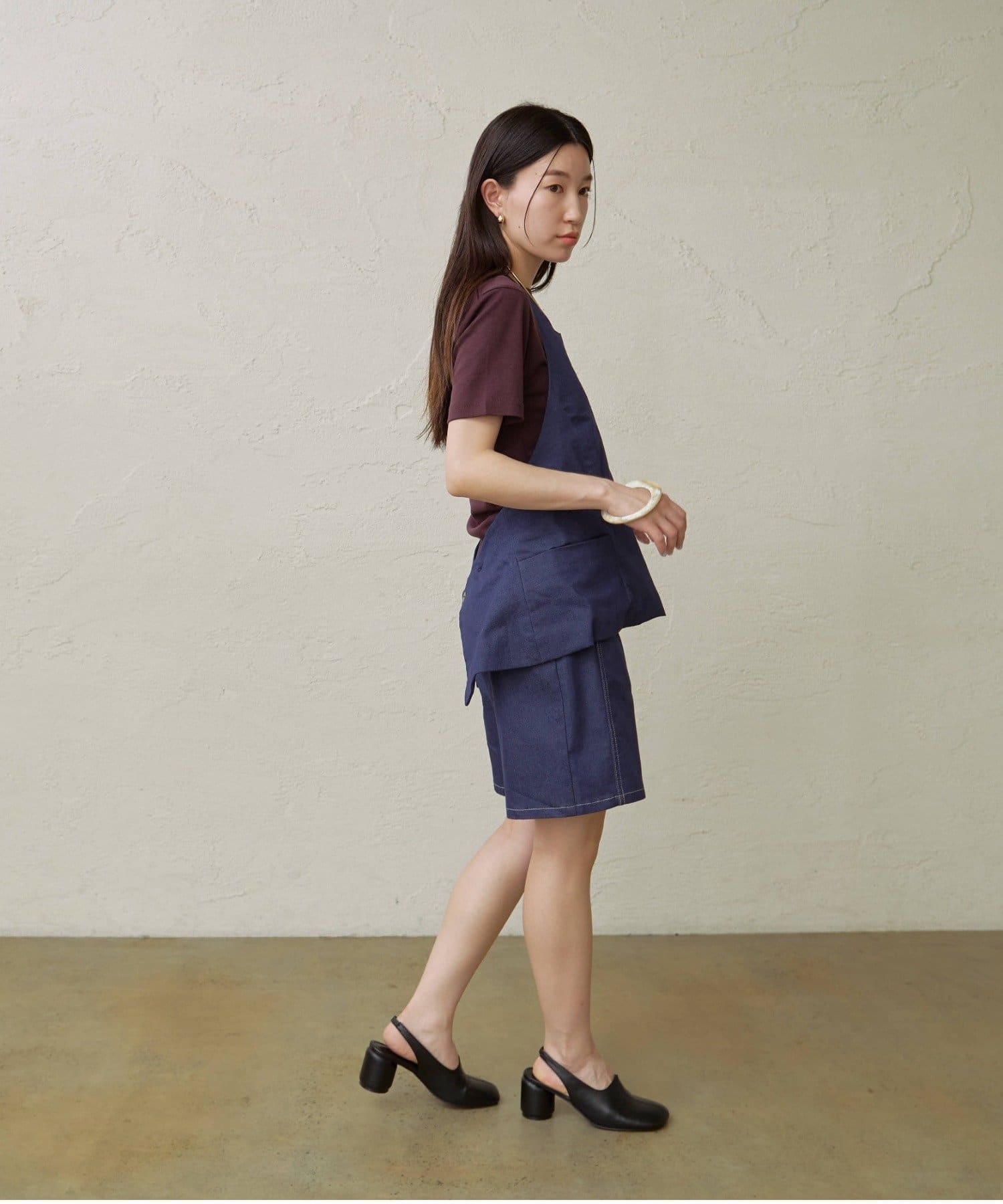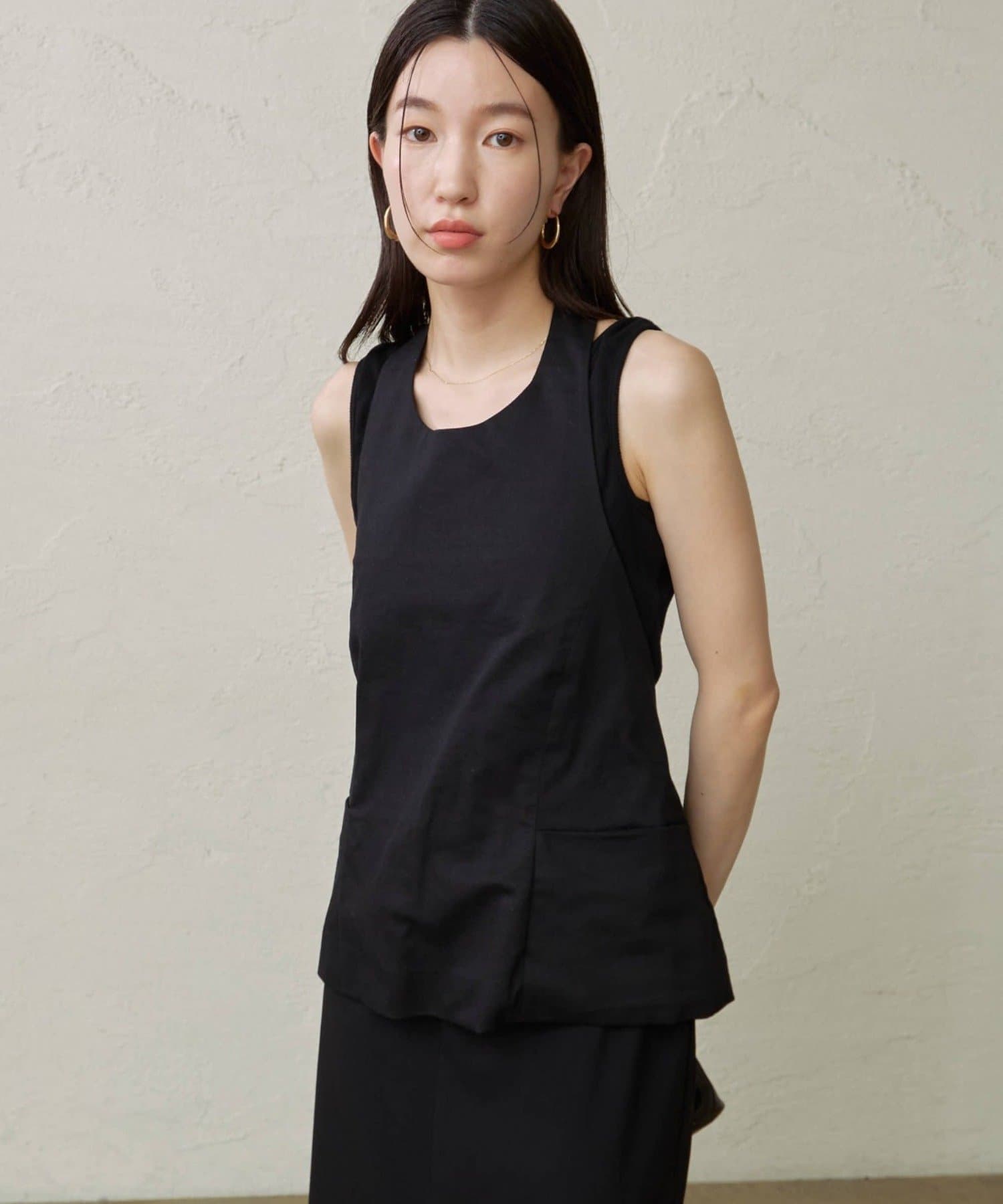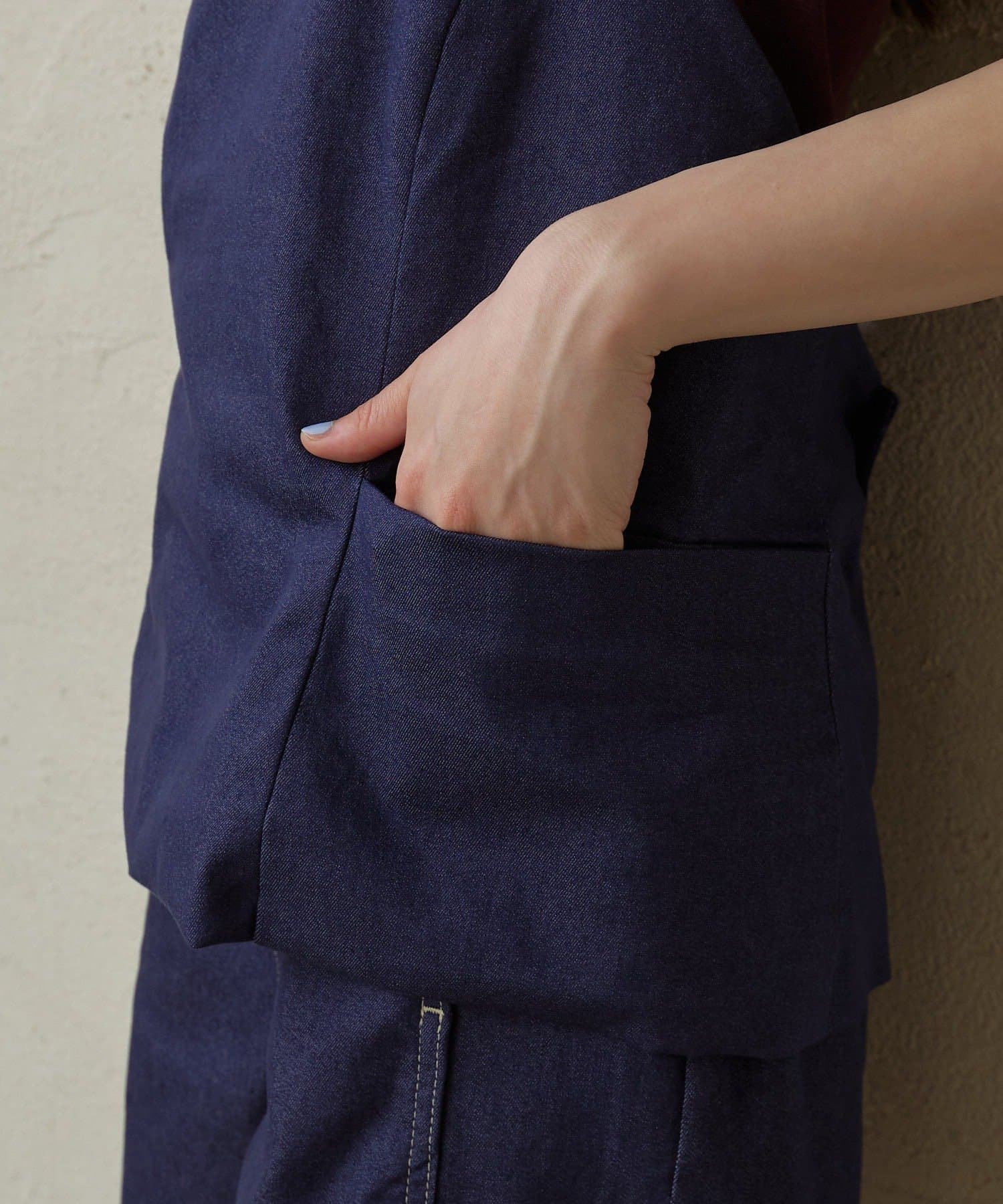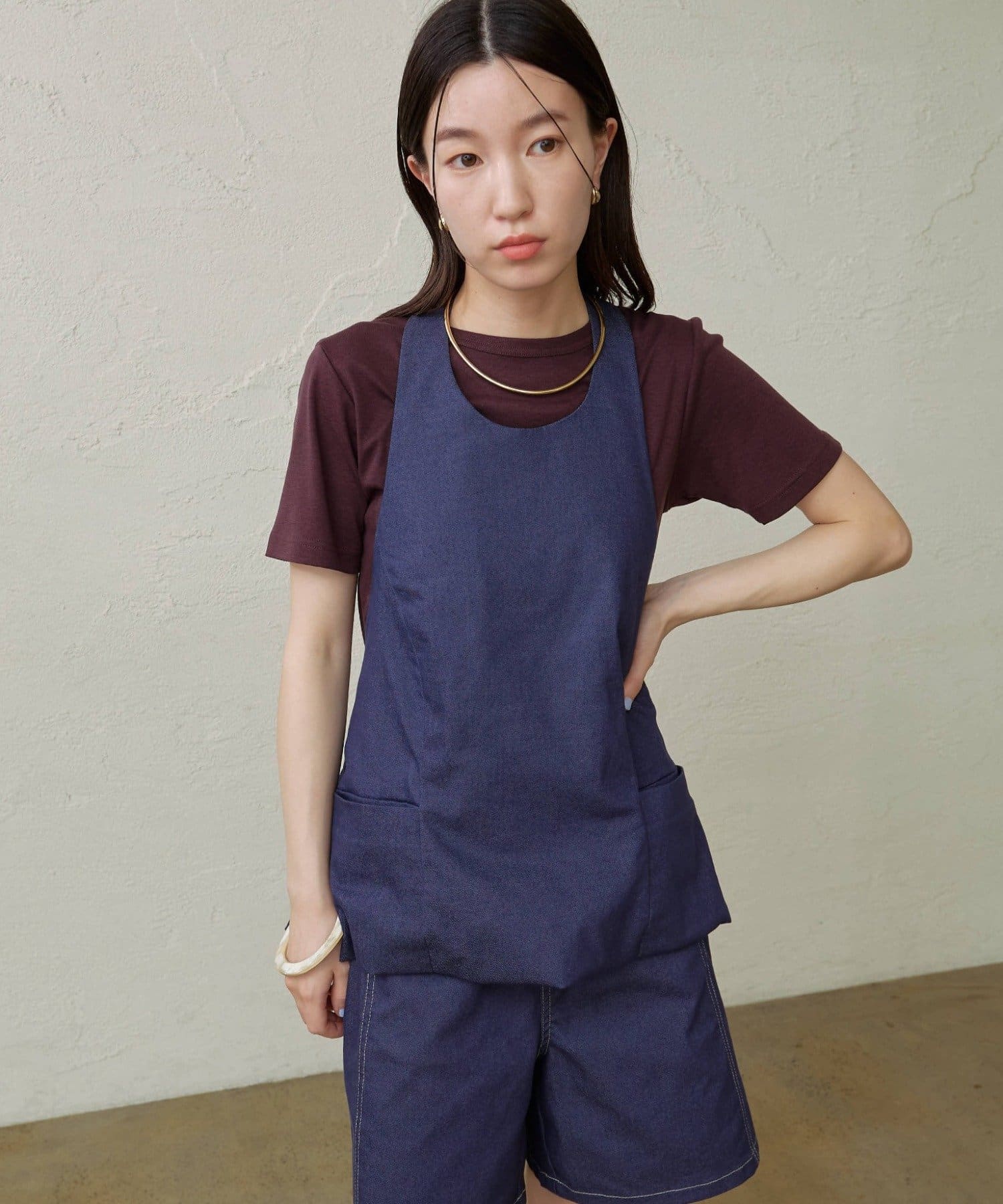 シンプルなスタイリングをアップデートしてくれるデニムライクビスチェ