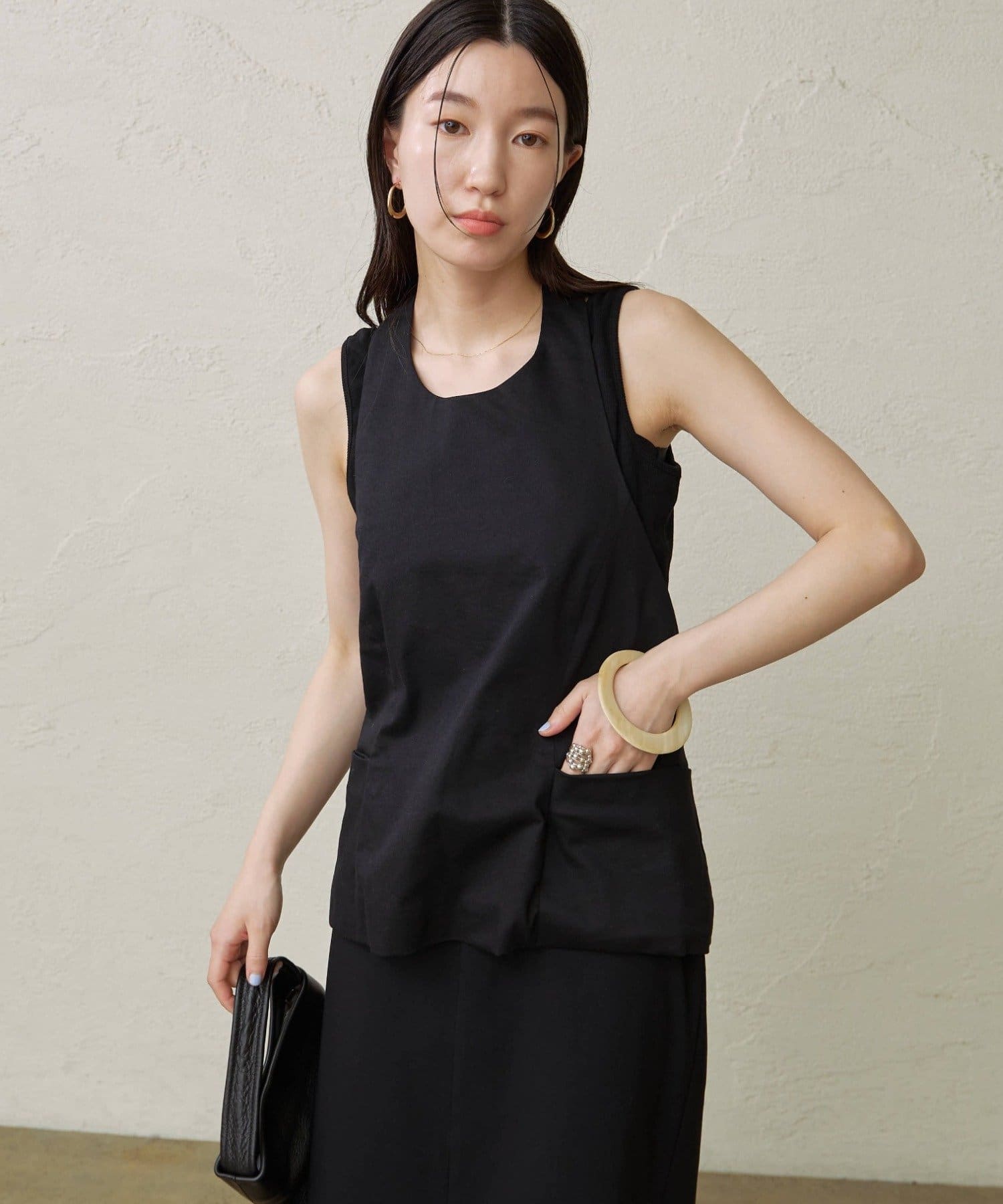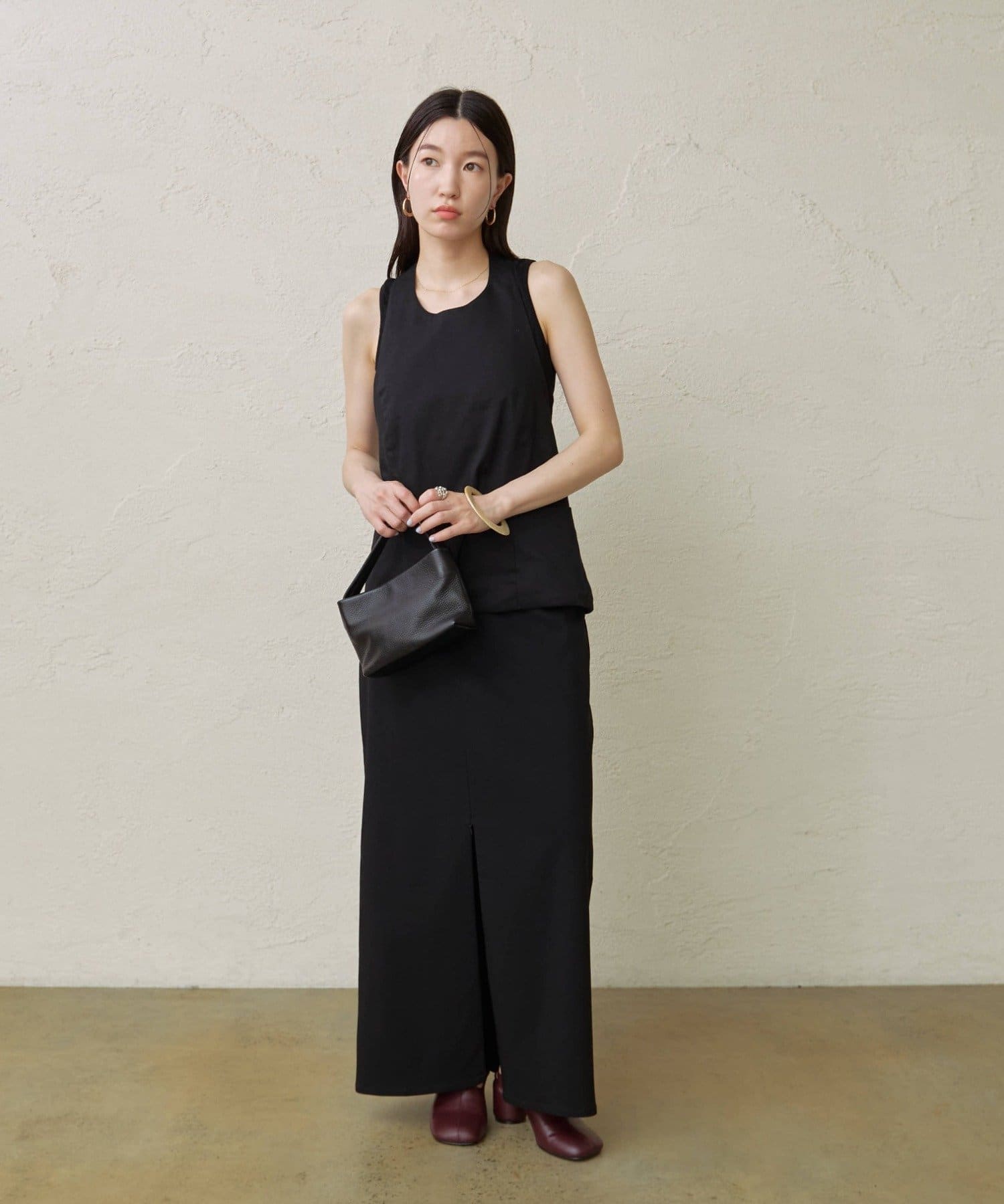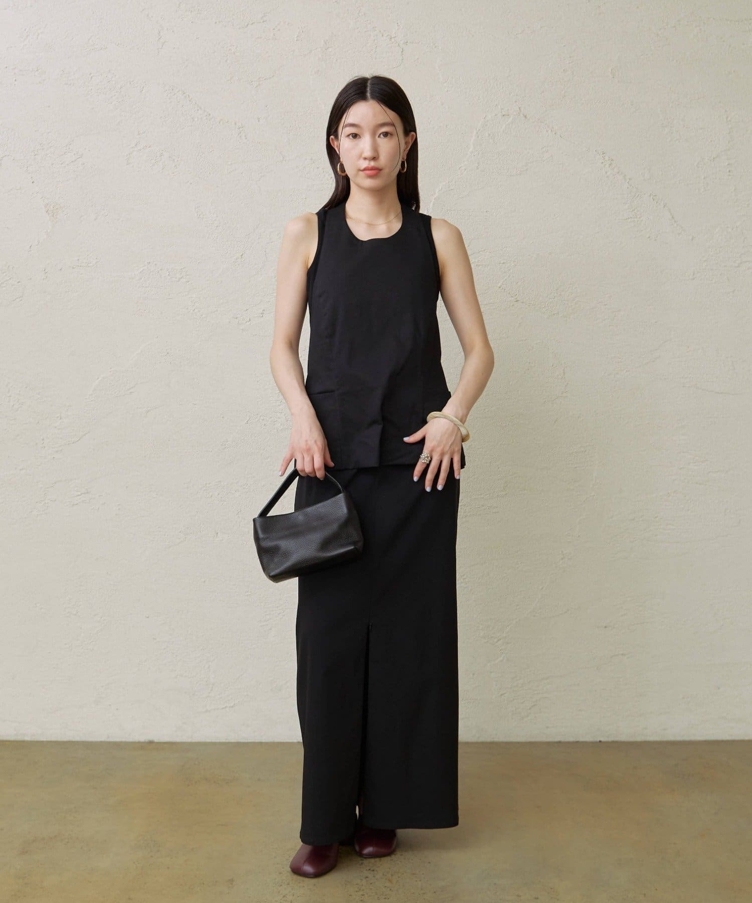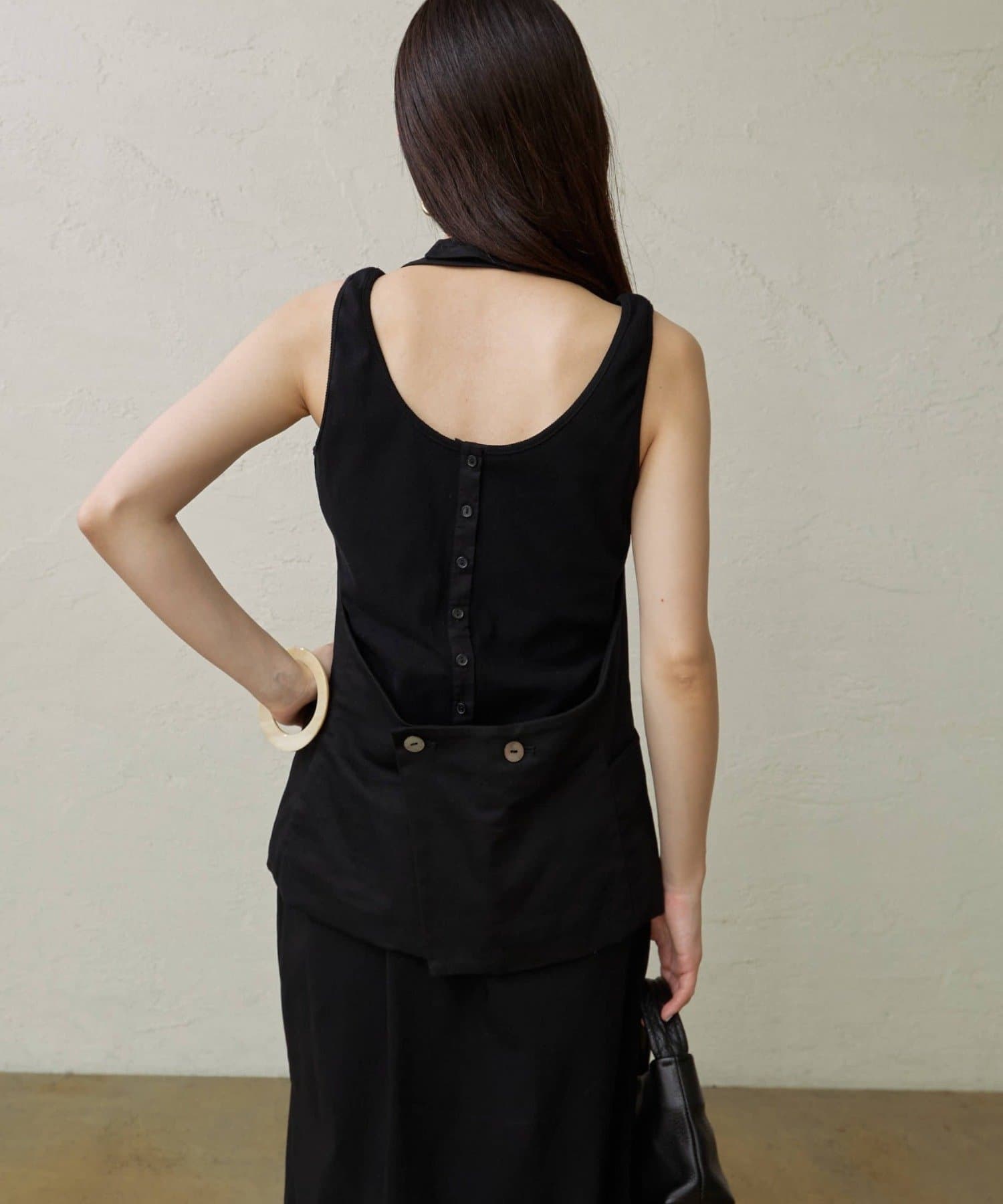シンプルなスタイリングをアップデートしてくれるデニムライクビスチェ