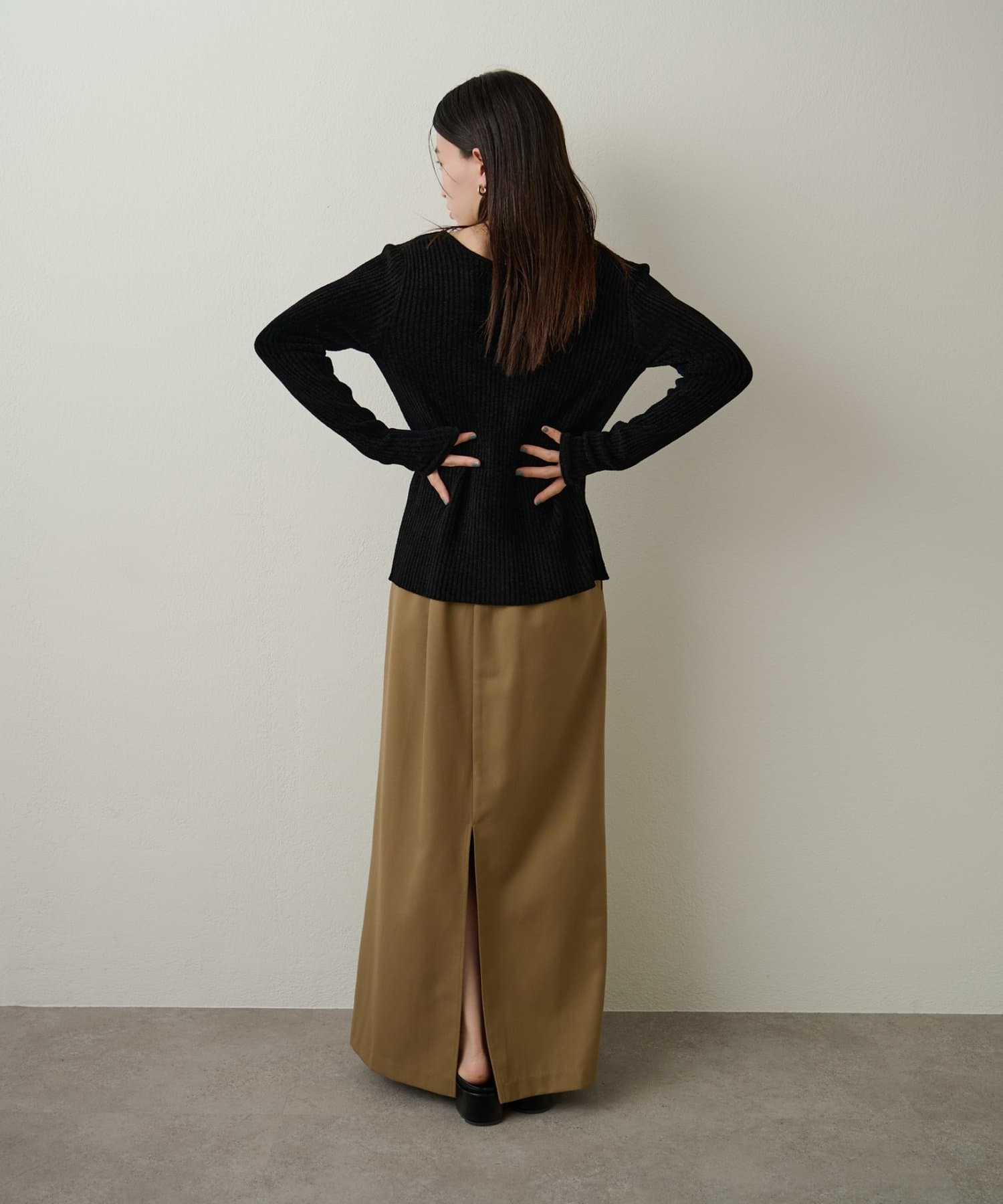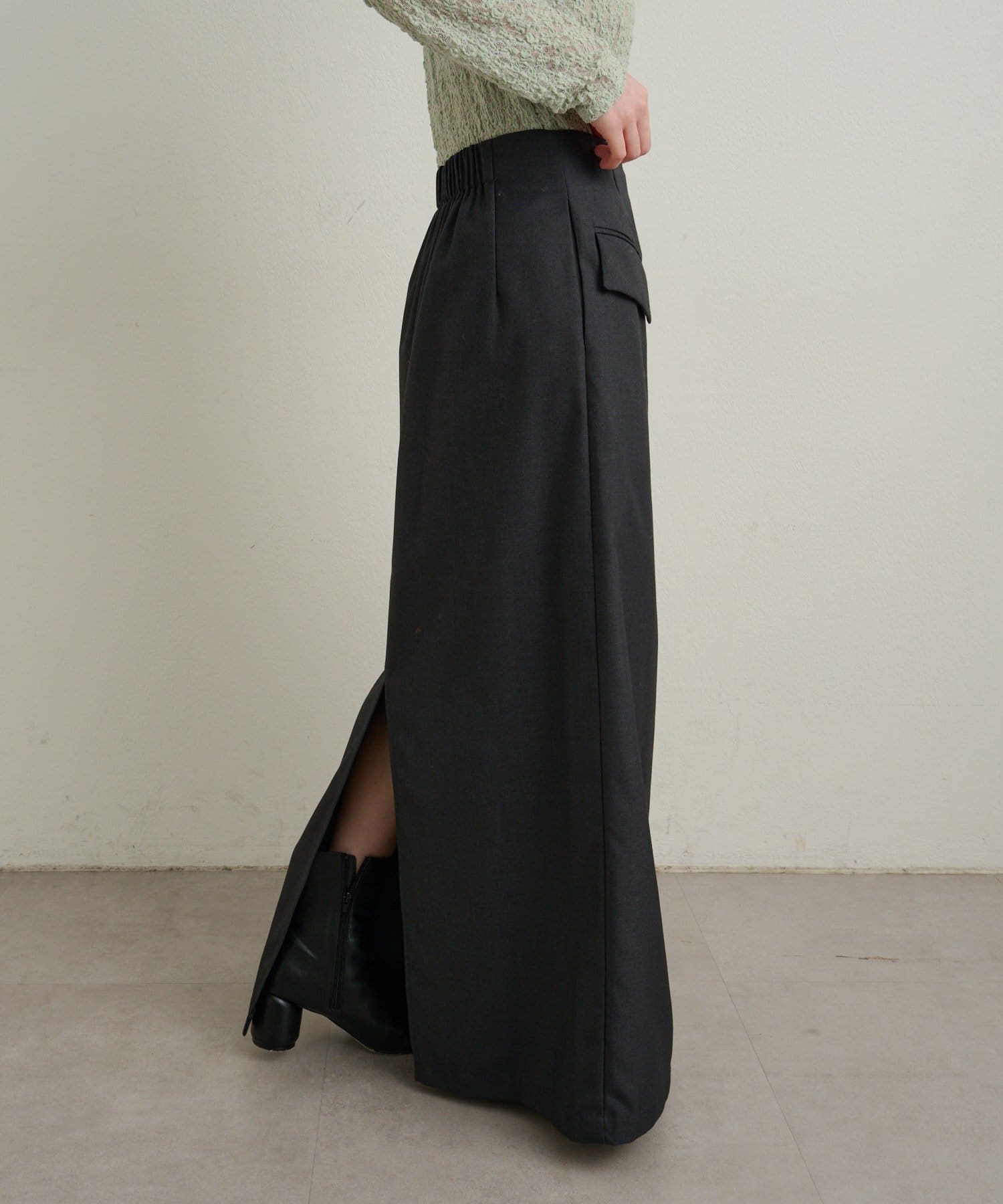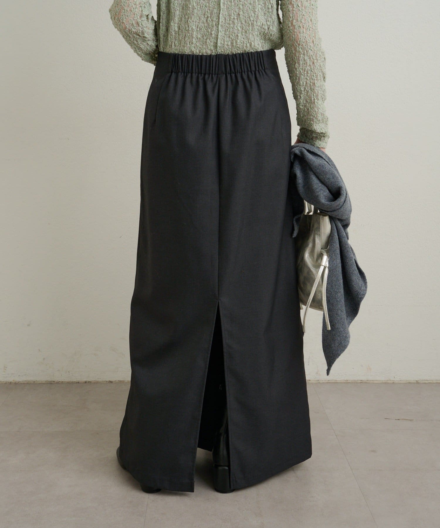 ・女性らしいIラインで、華奢見えするロングスカート。細身のシルエットながら後ろにスリットが入っているので脚捌きしやすく歩きやすさも◎