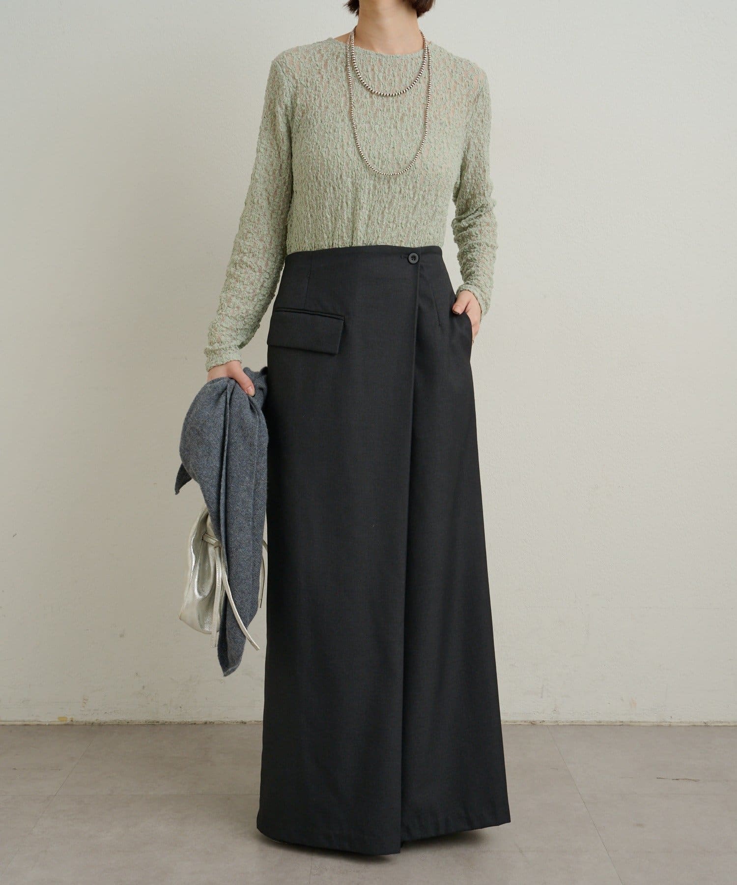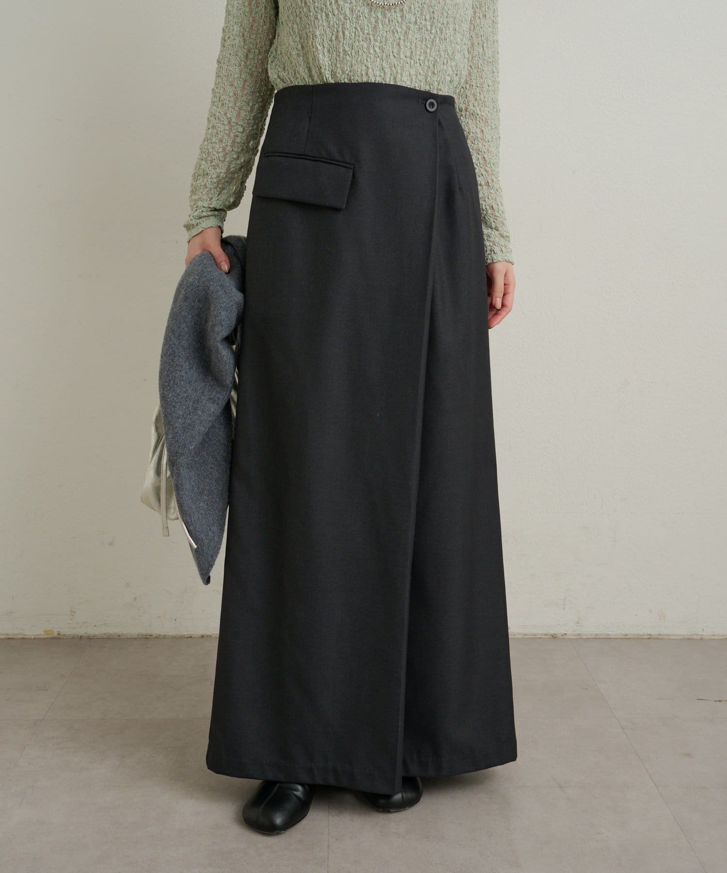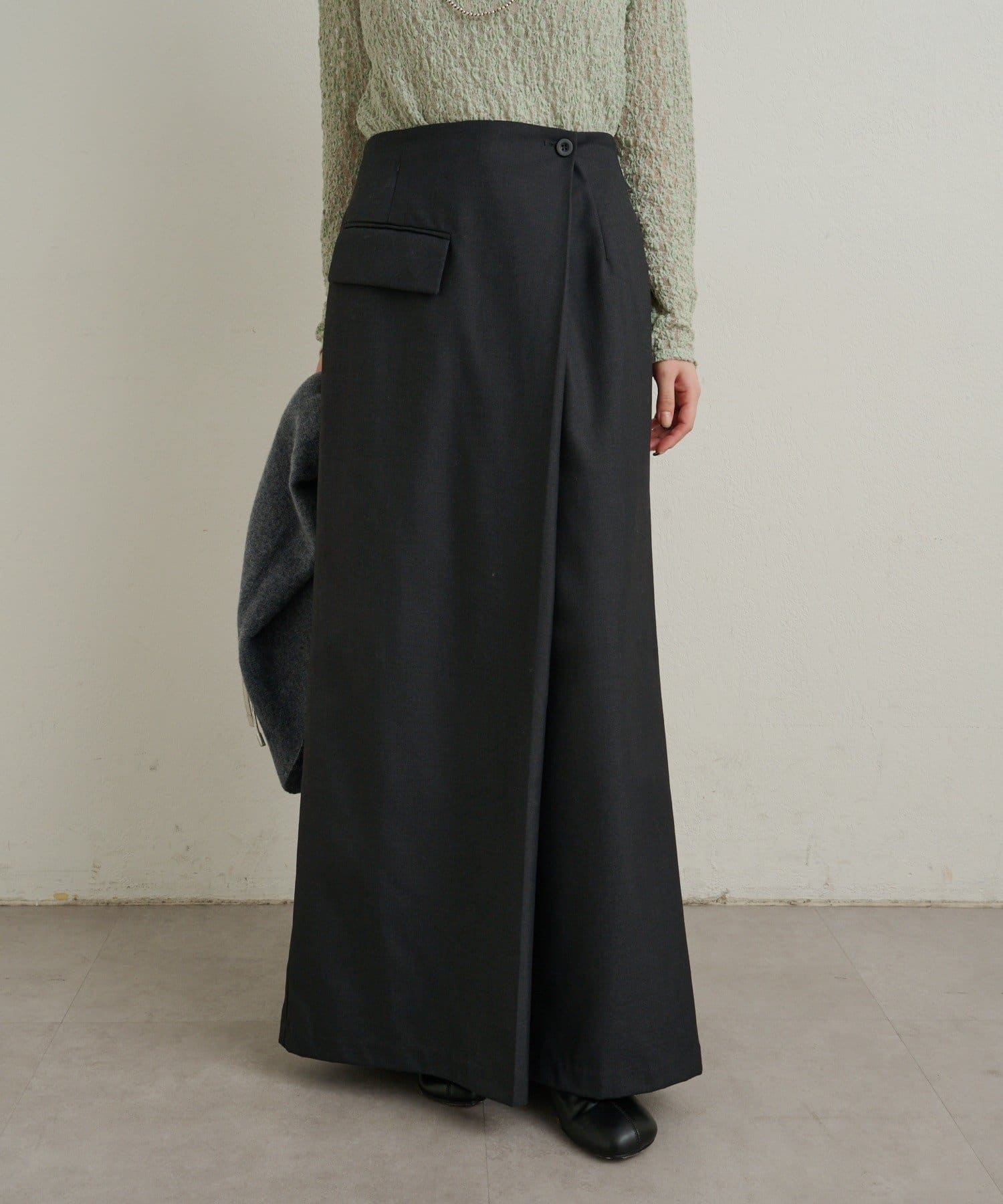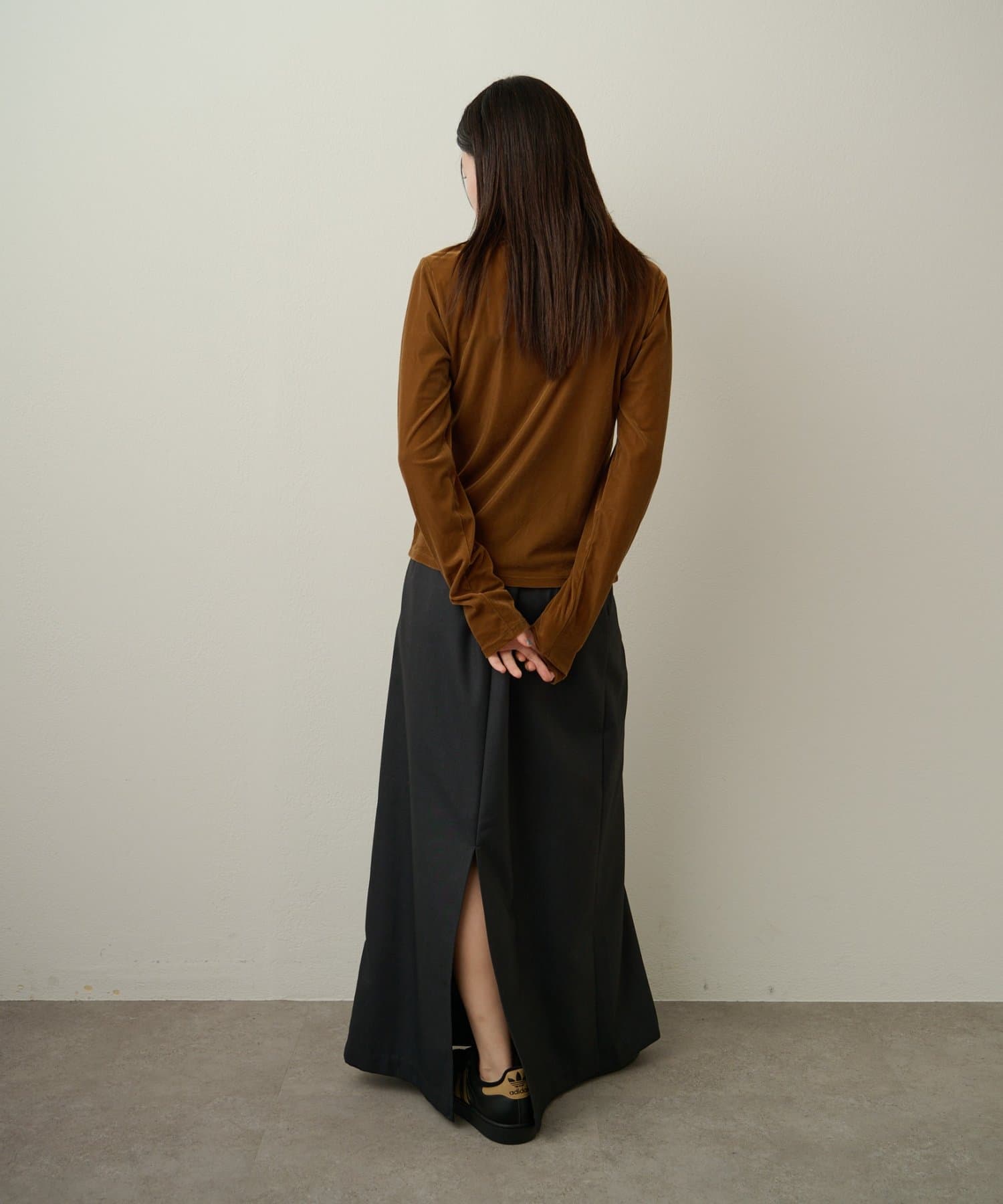 ・女性らしいIラインで、華奢見えするロングスカート。細身のシルエットながら後ろにスリットが入っているので脚捌きしやすく歩きやすさも◎
