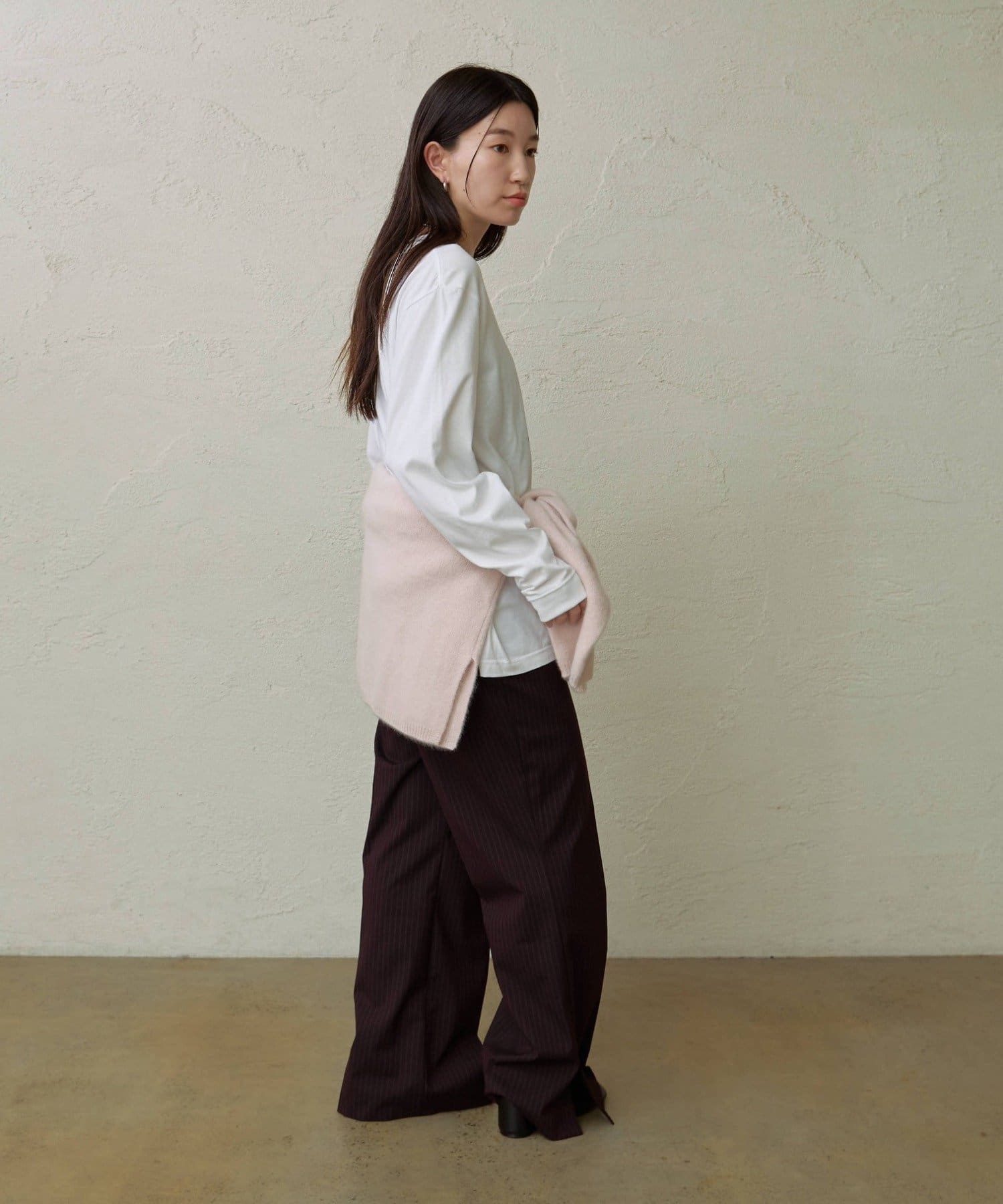 ・どんなスタイリングにも合わせやすいグレー、ネイビー、ボルドーの三色展開。