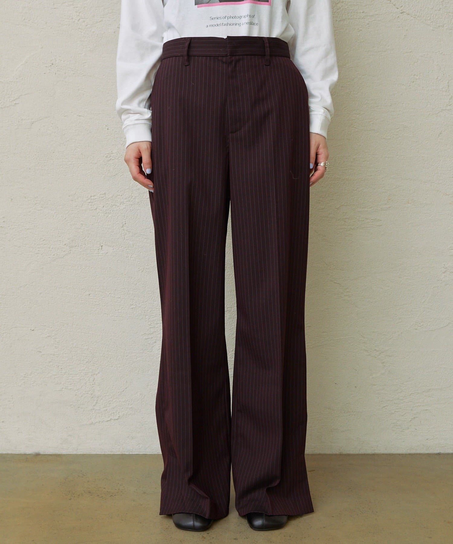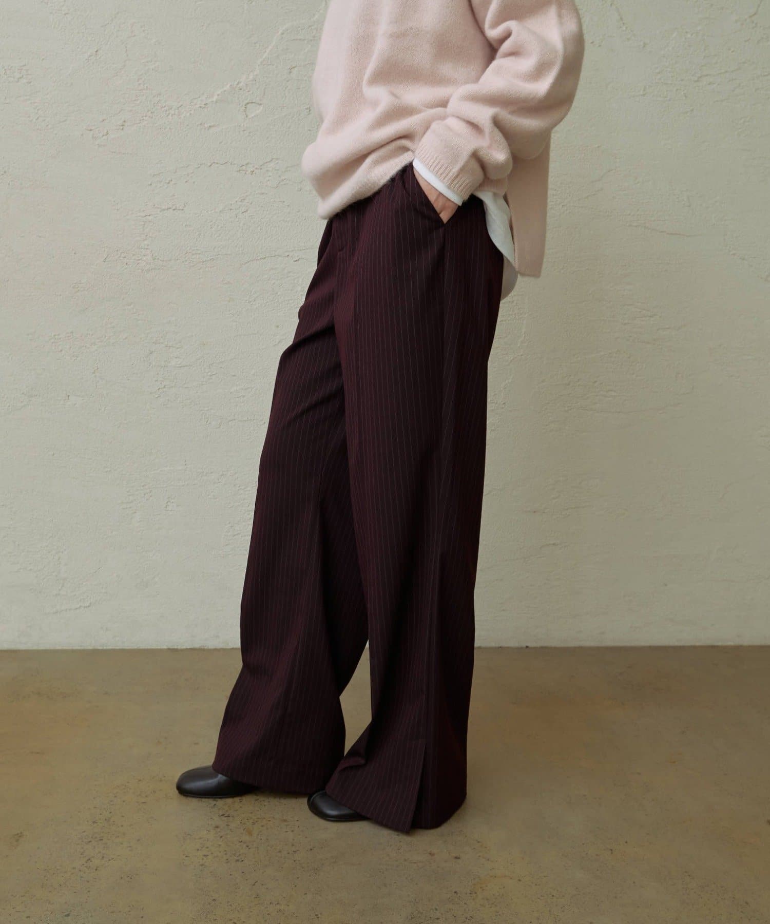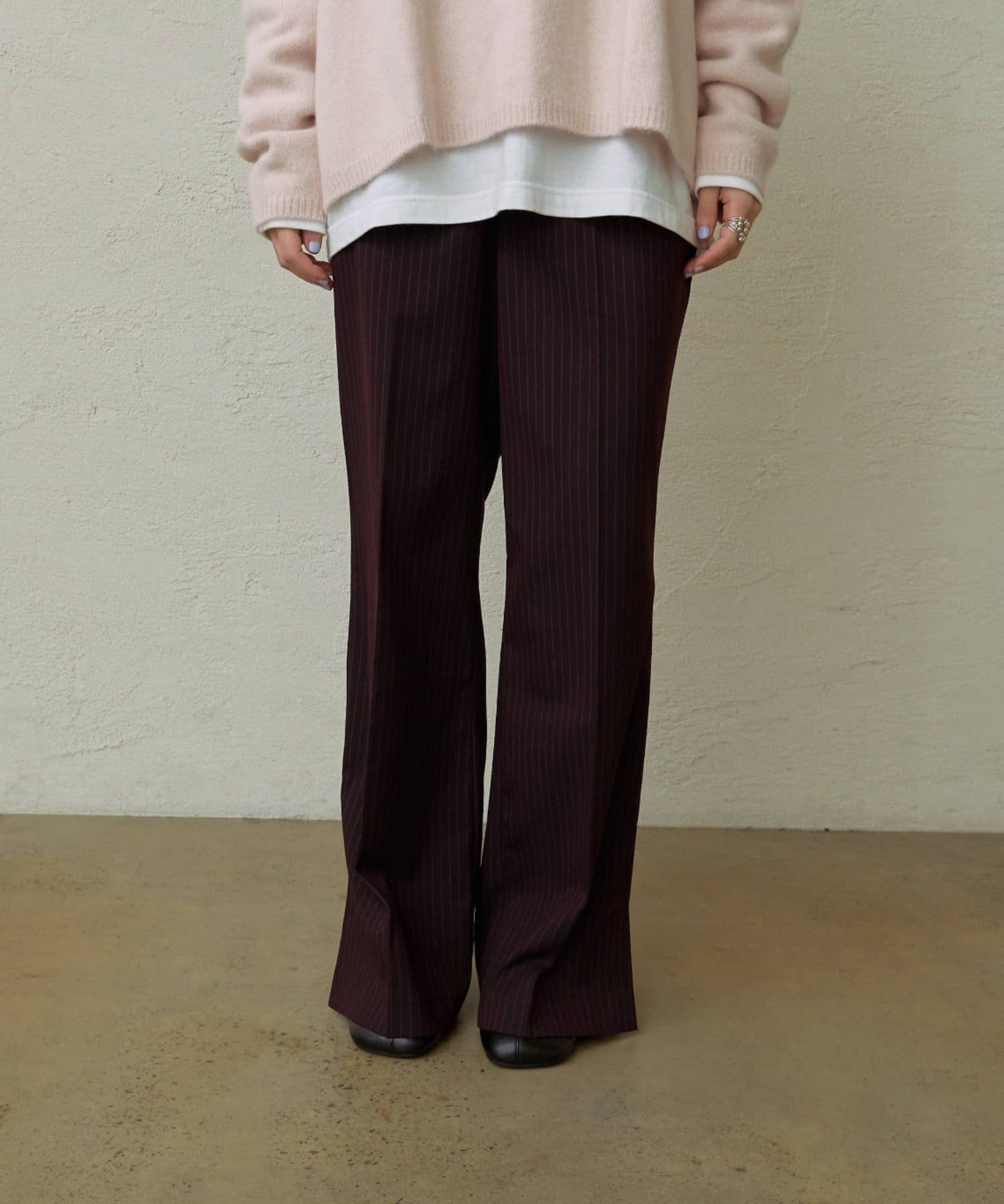 さりげないストライプ×フレアデザインがスタイルアップ効果抜群の新作パンツ