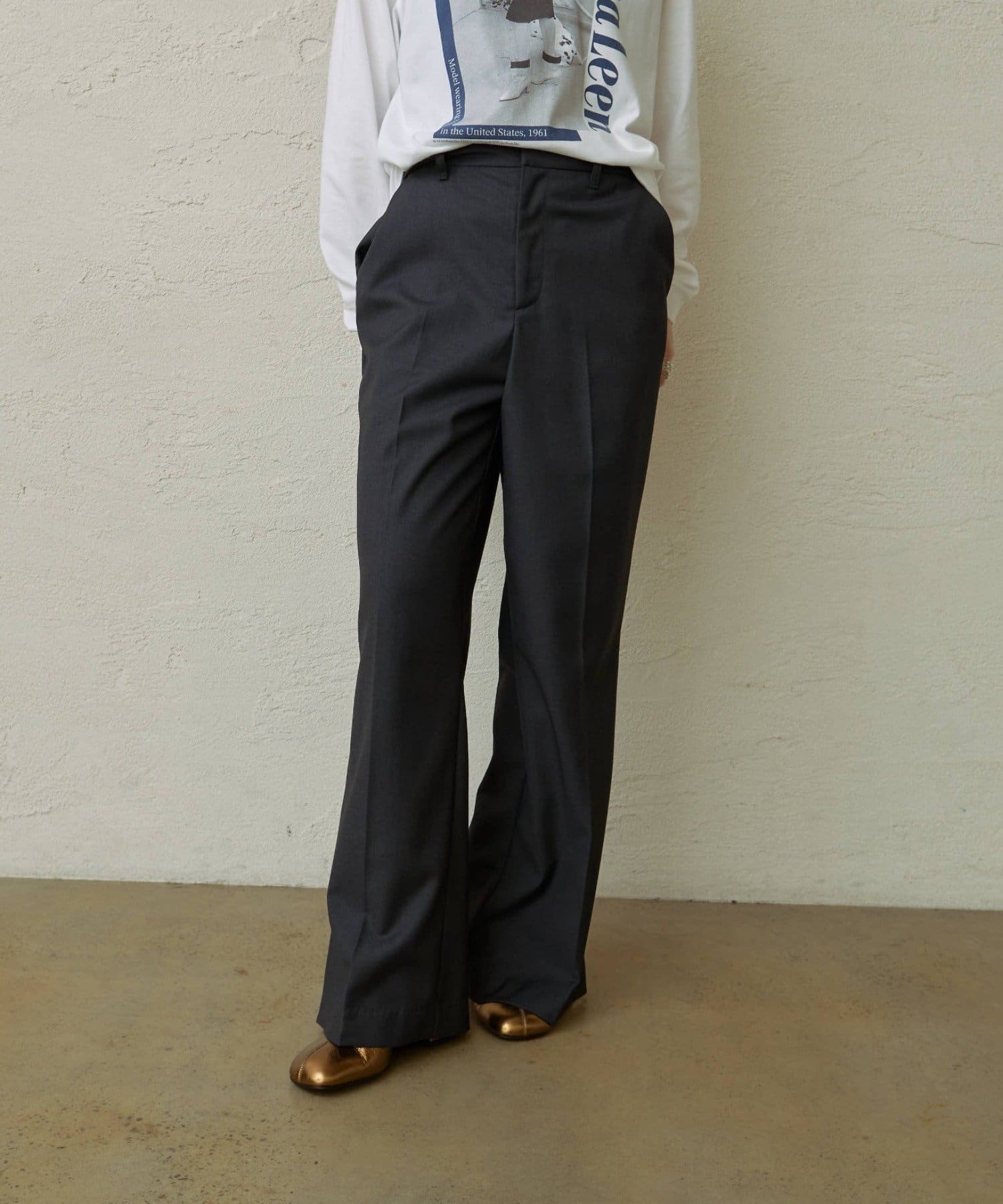 ・フォーマルチックでありながらも、フレアデザインが足を細見えさせてくれる一枚。
