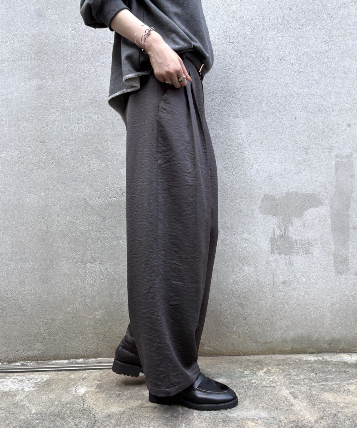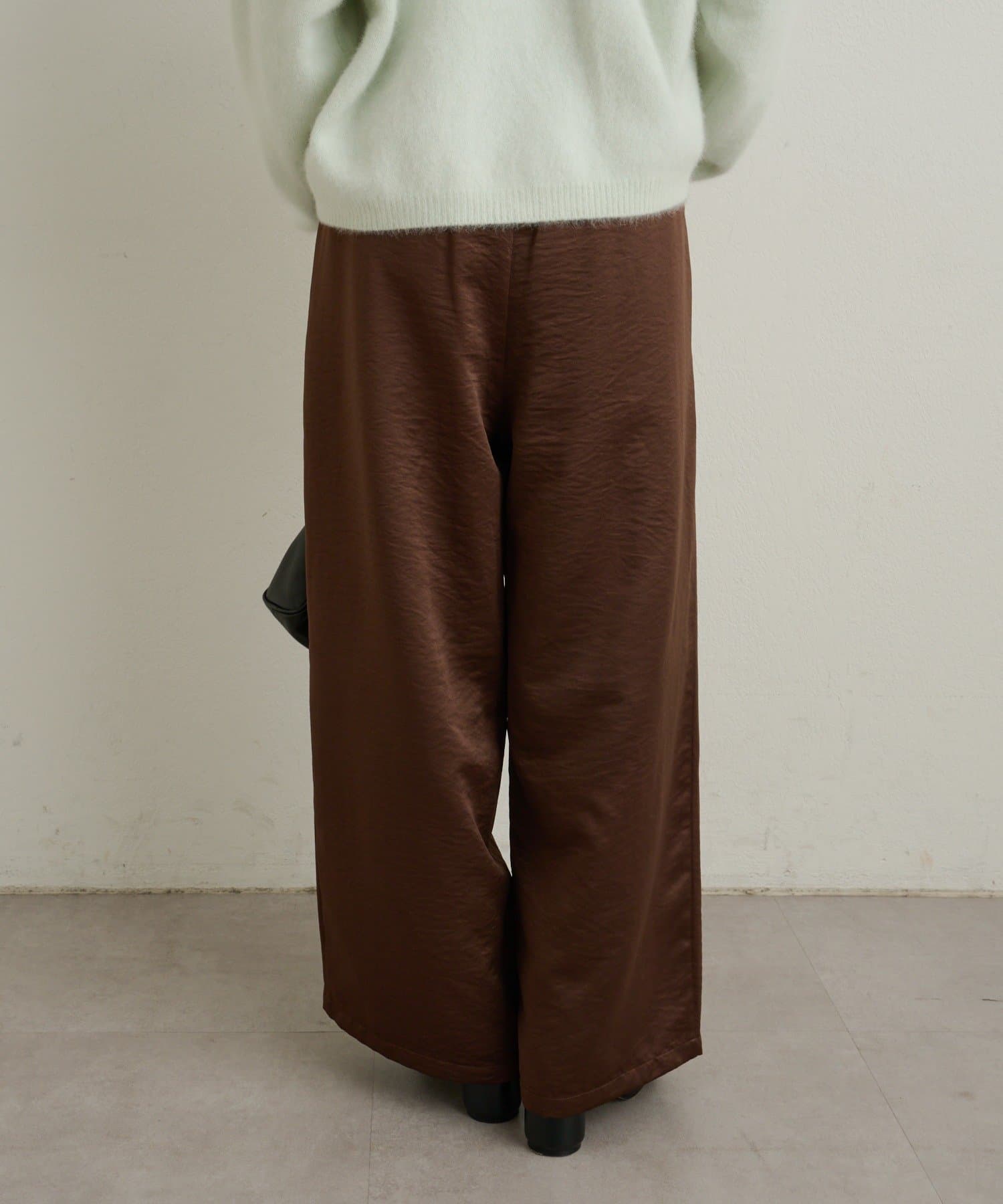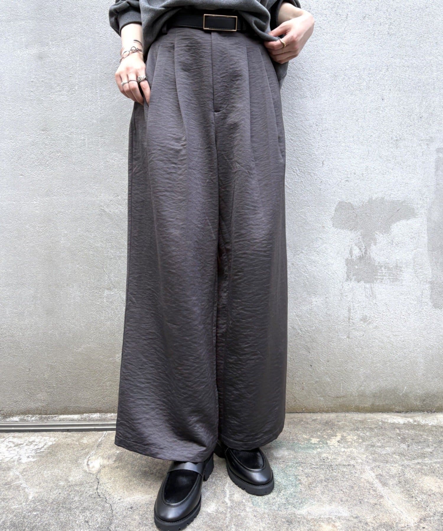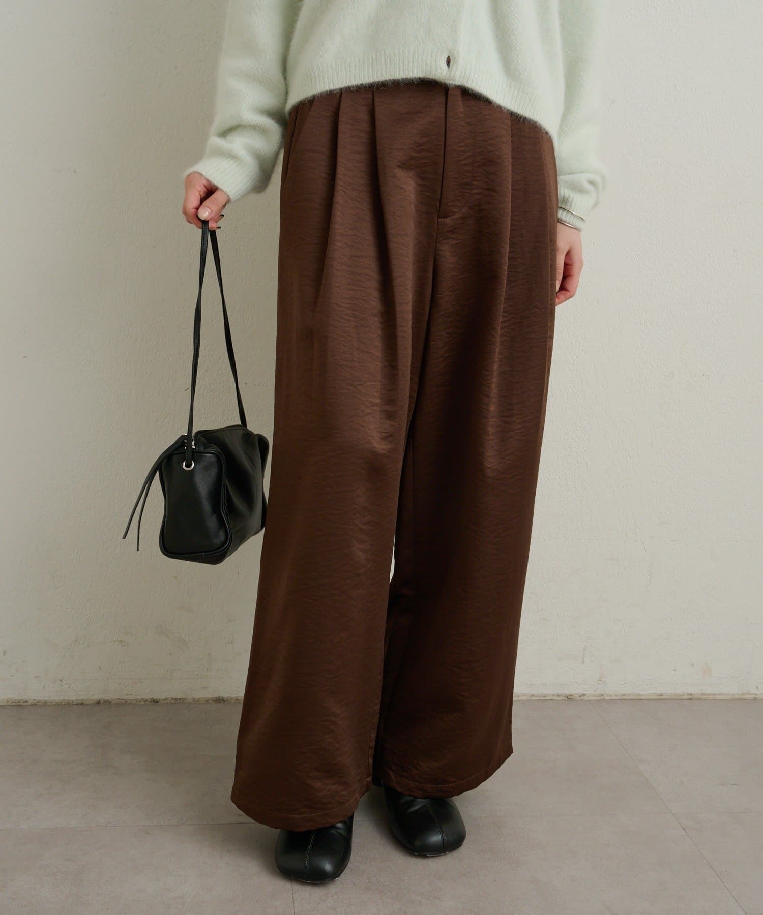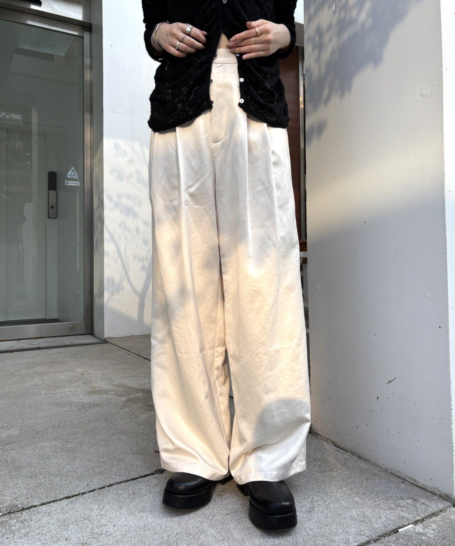 ・上品な光沢感がいつものコーディネートをワンランクアップさせてくれるサテンパンツ。