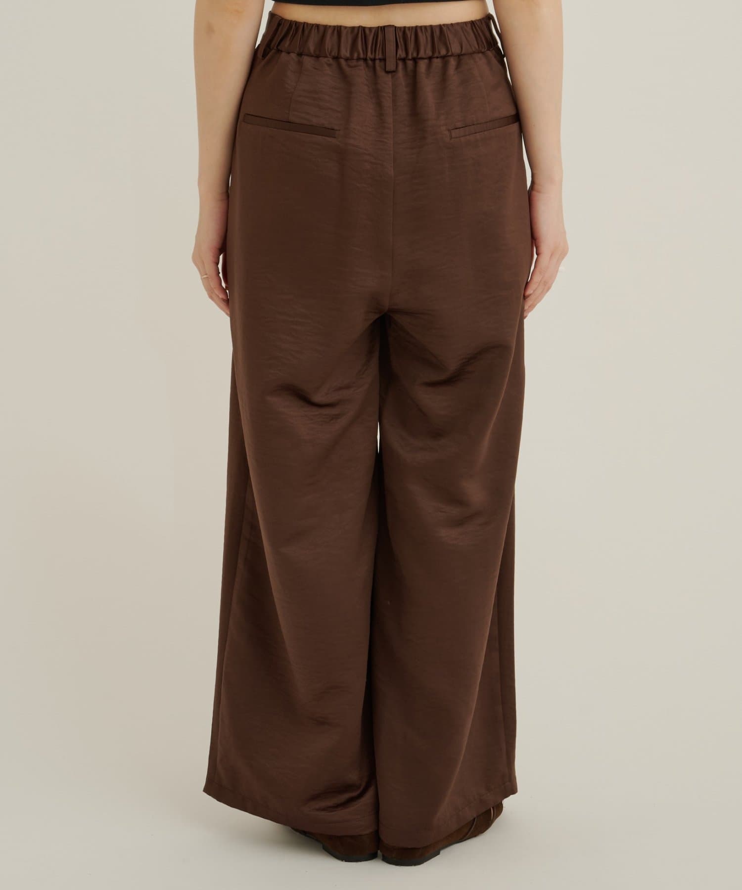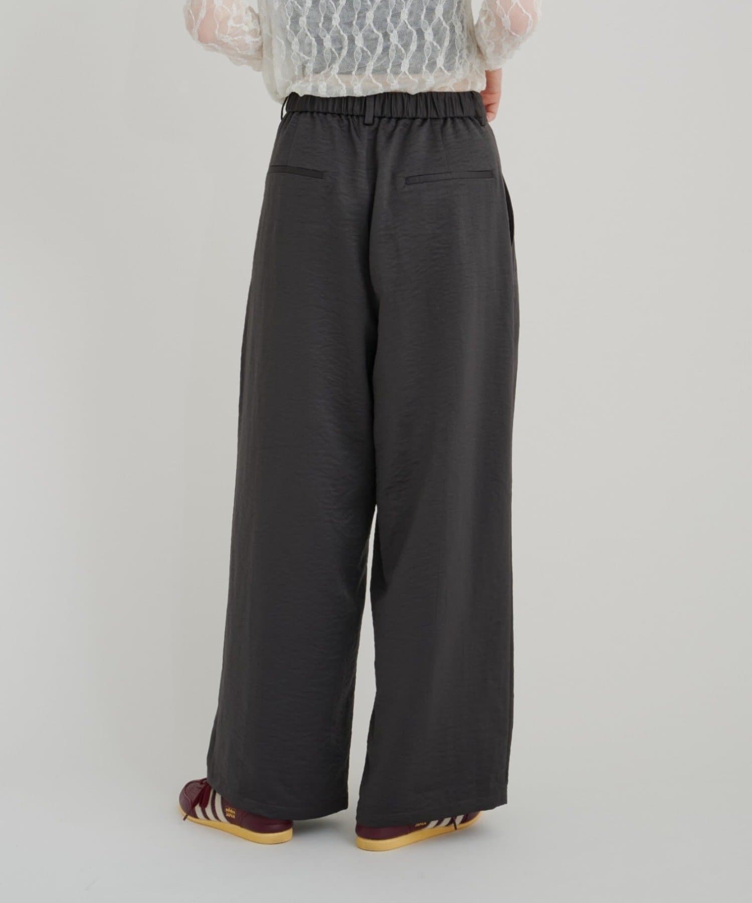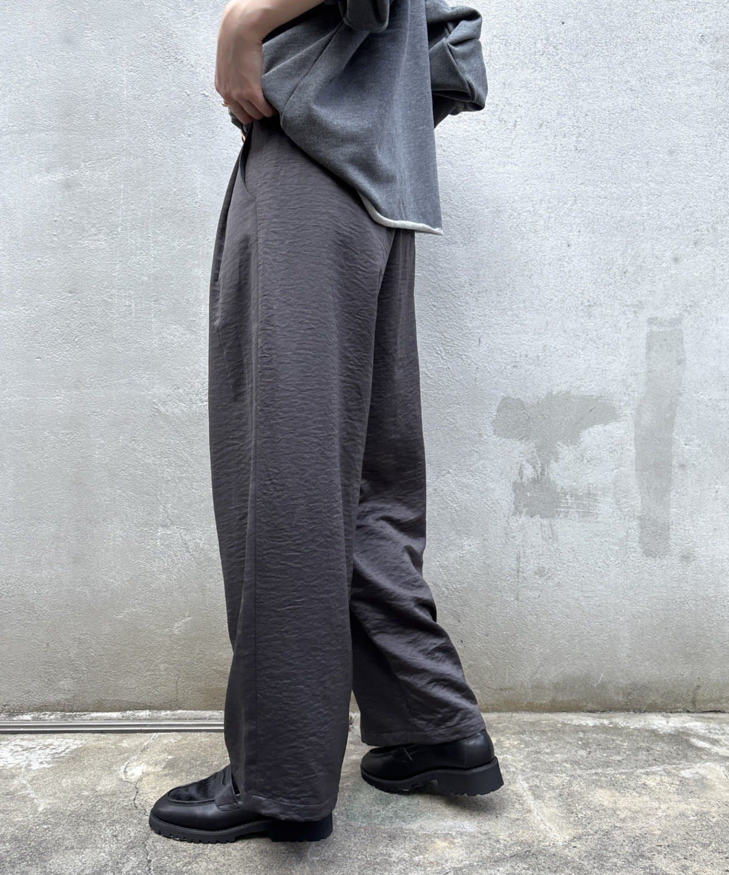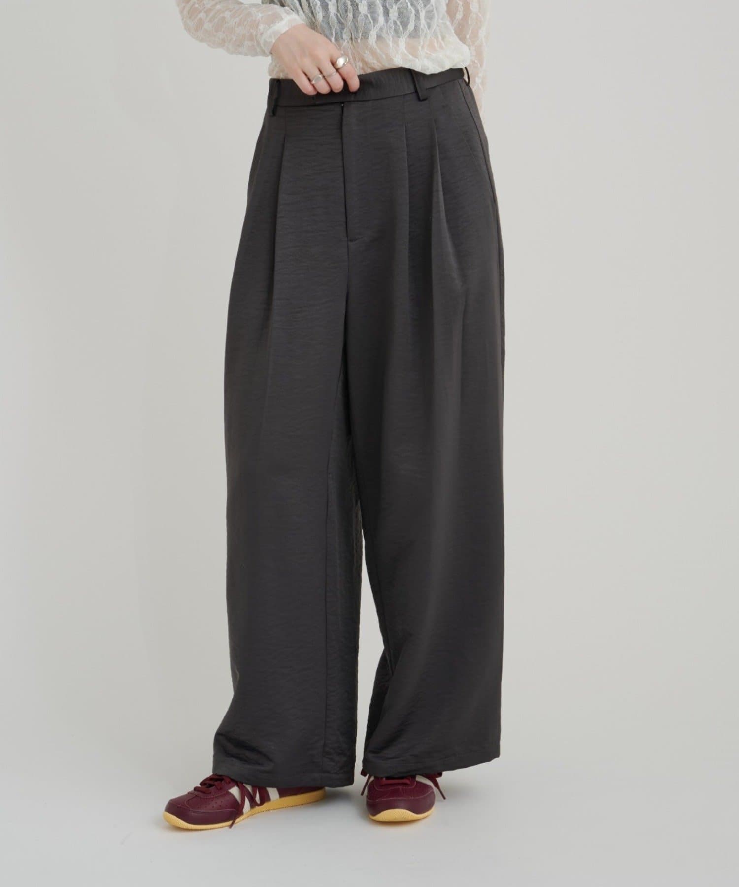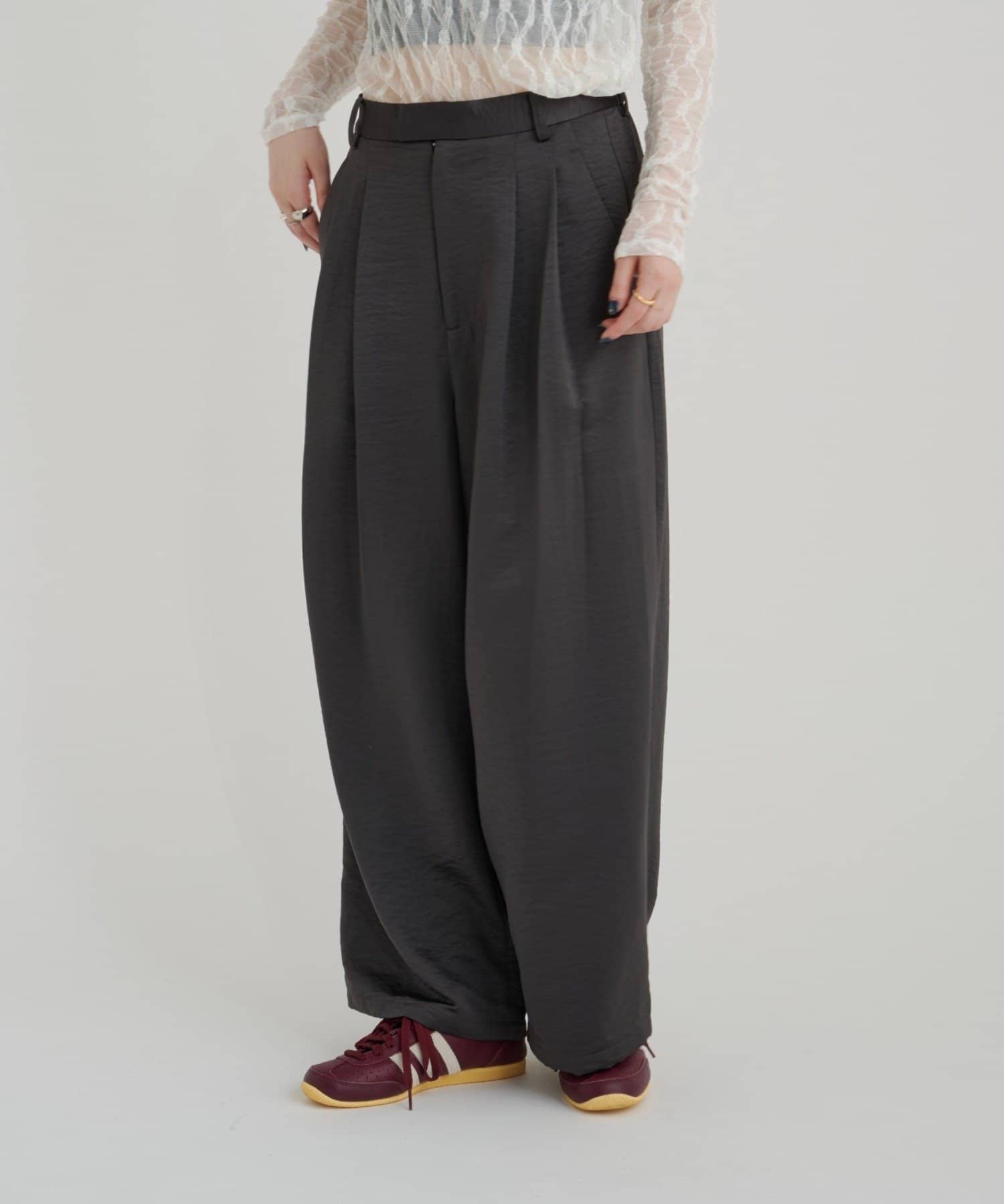 ・上品な光沢感がいつものコーディネートをワンランクアップさせてくれるサテンパンツ。